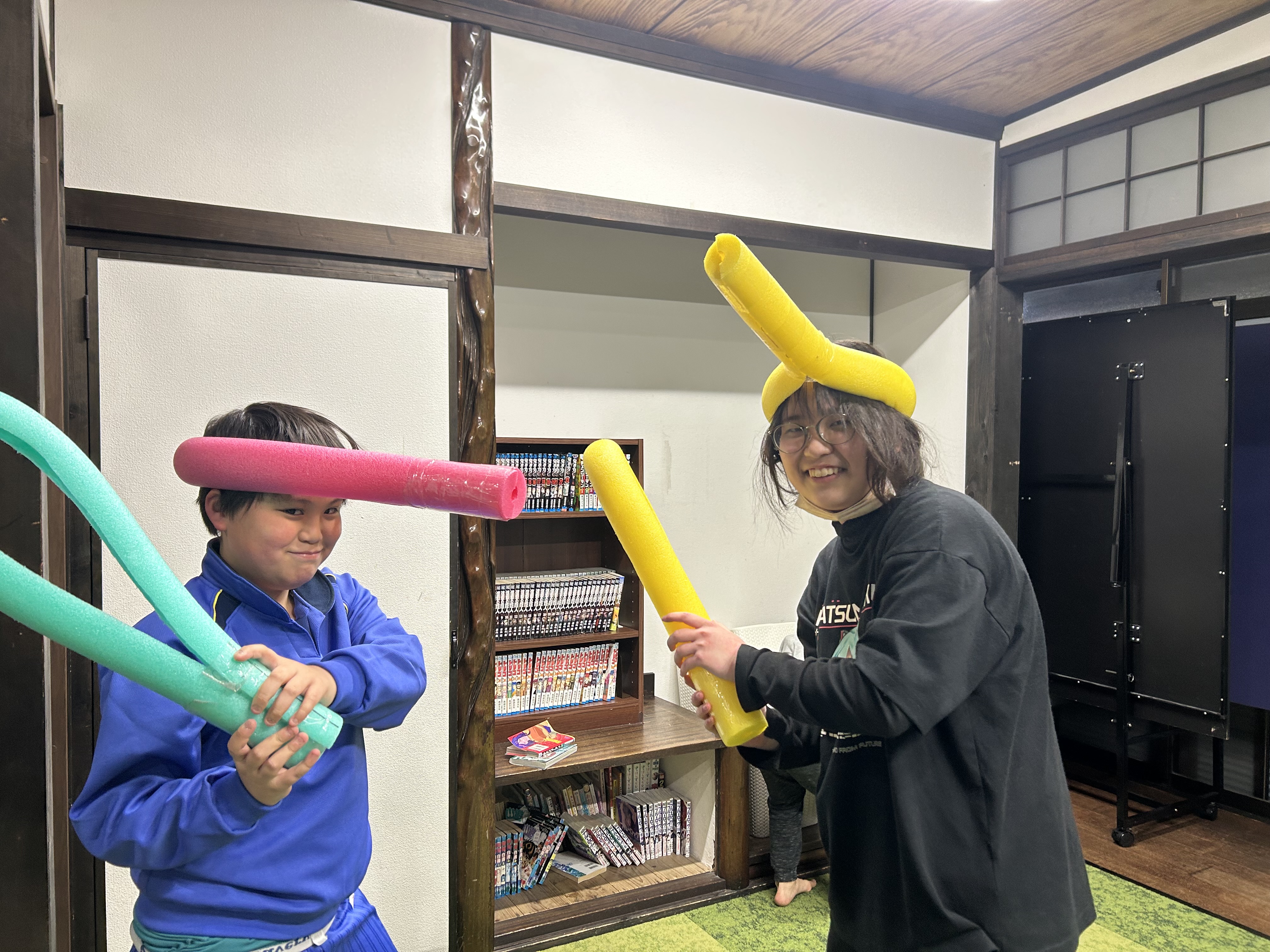 頭の上に被ってるのを、どちらが先に落とせるのか対決が繰り広げられていました✨