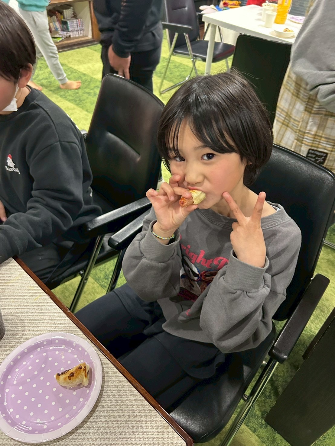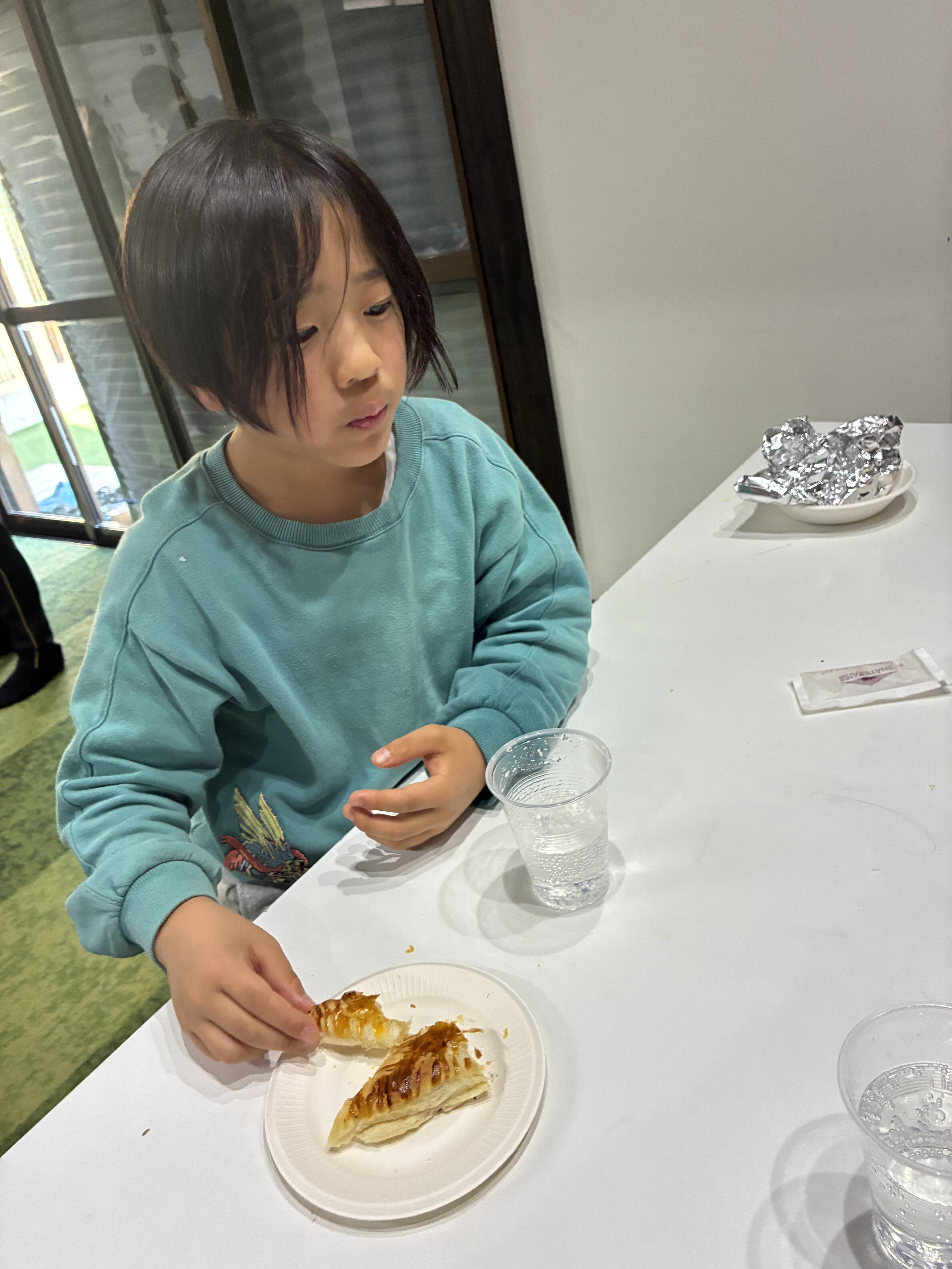 焼き上がったパイは、みんなで席に着いて一緒にいただきました🙏