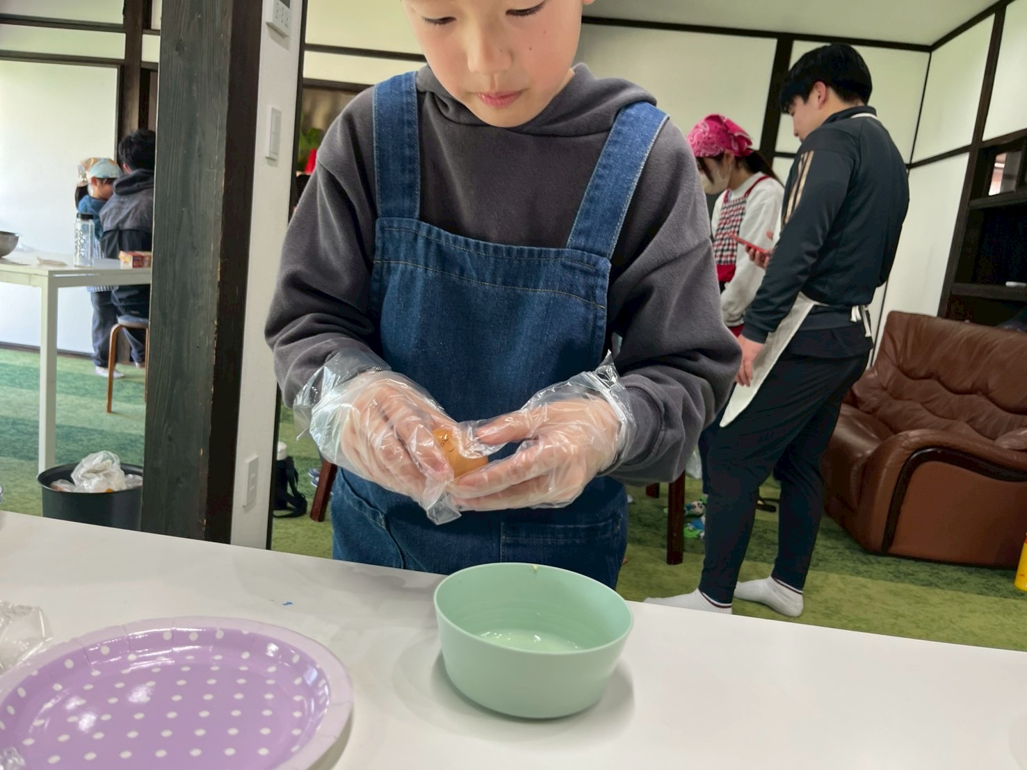 また、焼く前の準備として、卵を割って卵黄と卵白を分けたり、パイの表面に卵を塗ったり、パイシートを切ったりと、それぞれが役割を持って活動しました🥰