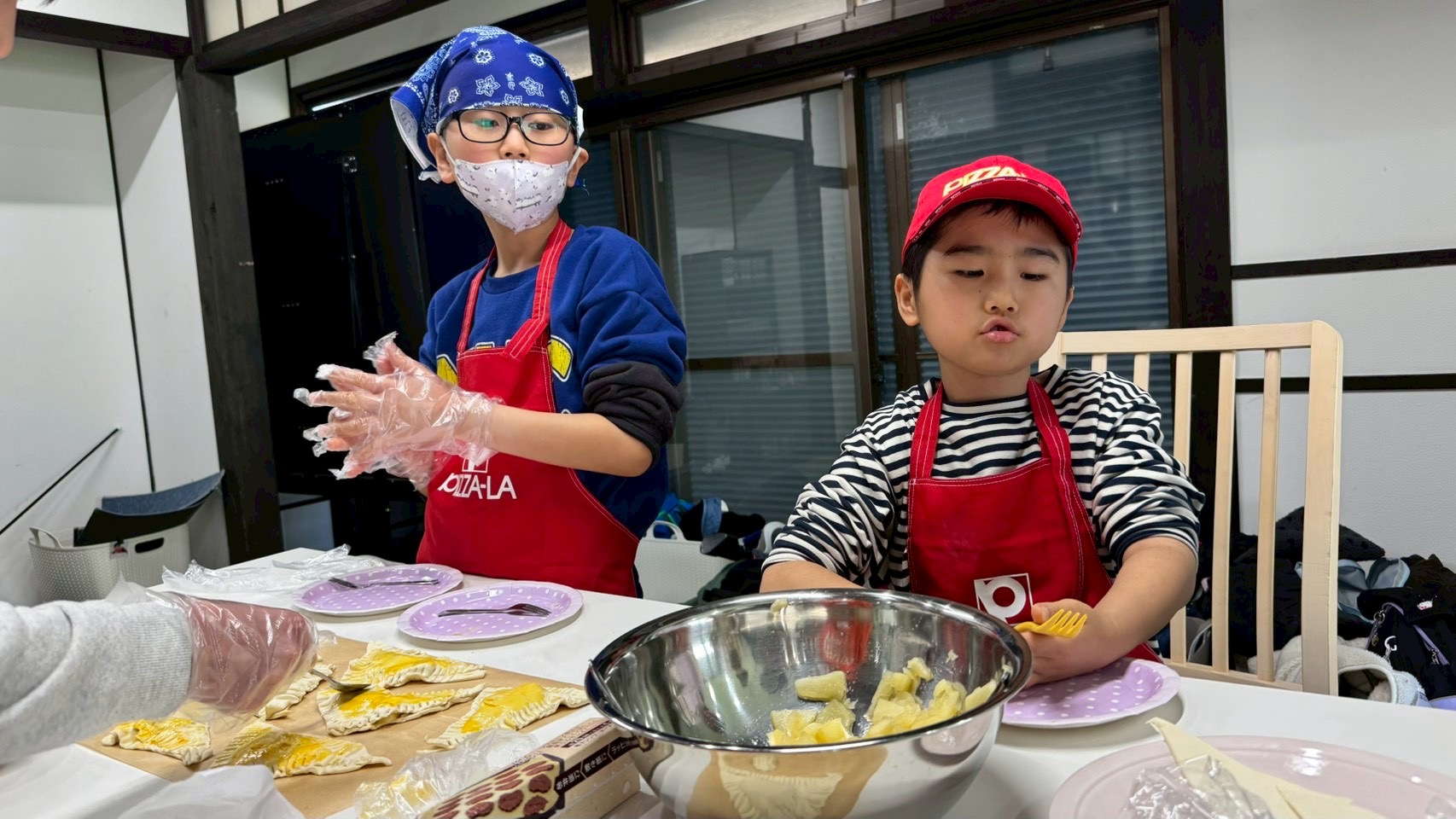 手先を使う細かな作業も多くありましたが、「シート切れたよ」「パイシート巻けたよー」「次はどうするの?」と、子どもたち同士で声を掛け合いながら進める様子が印象的でした😎