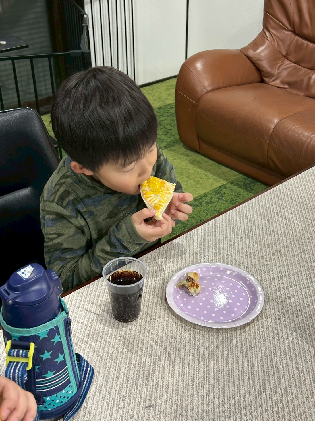 また、ジュースもそれぞれが好きなものを選び、パイと一緒に楽しみながら、和やかな雰囲気の中でおやつの時間を過ごしました!!!
