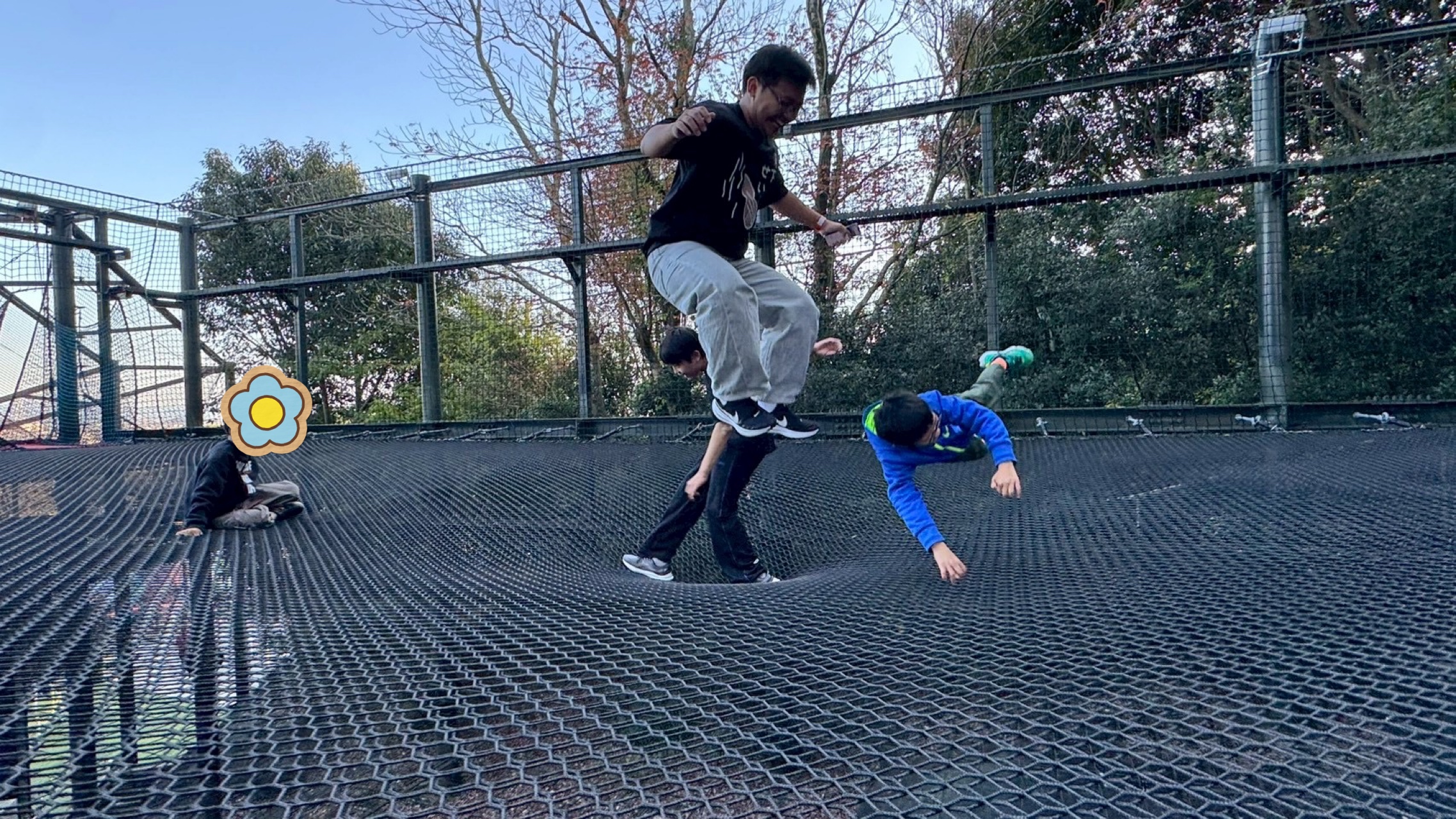 そして、大きなネットの上を駆け回ったり、ジャンプしたり、バランスを取りながら進んだりと、子どもたちは終始ニコニコ😊✨