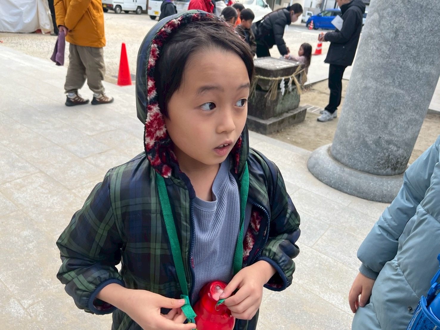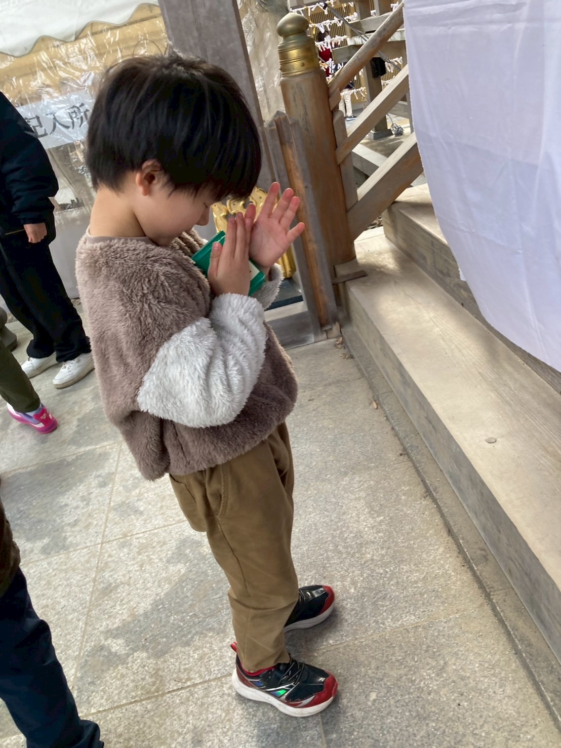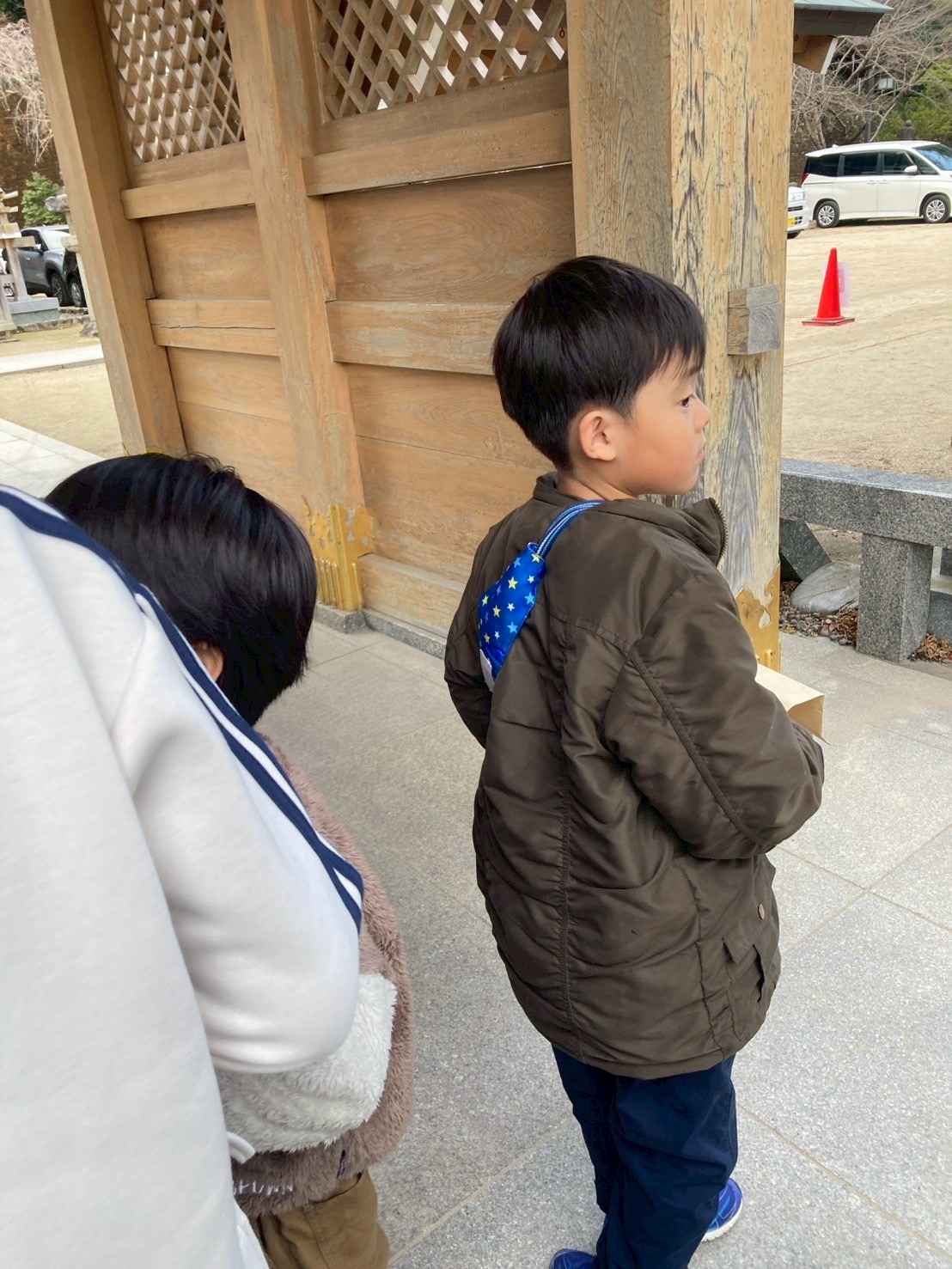 神社の雰囲気に少し緊張しながらも、職員と一緒に順番を守って参拝する姿や、周囲に気を配りながら歩く姿に、新年のスタートらしい成長を感じました✨