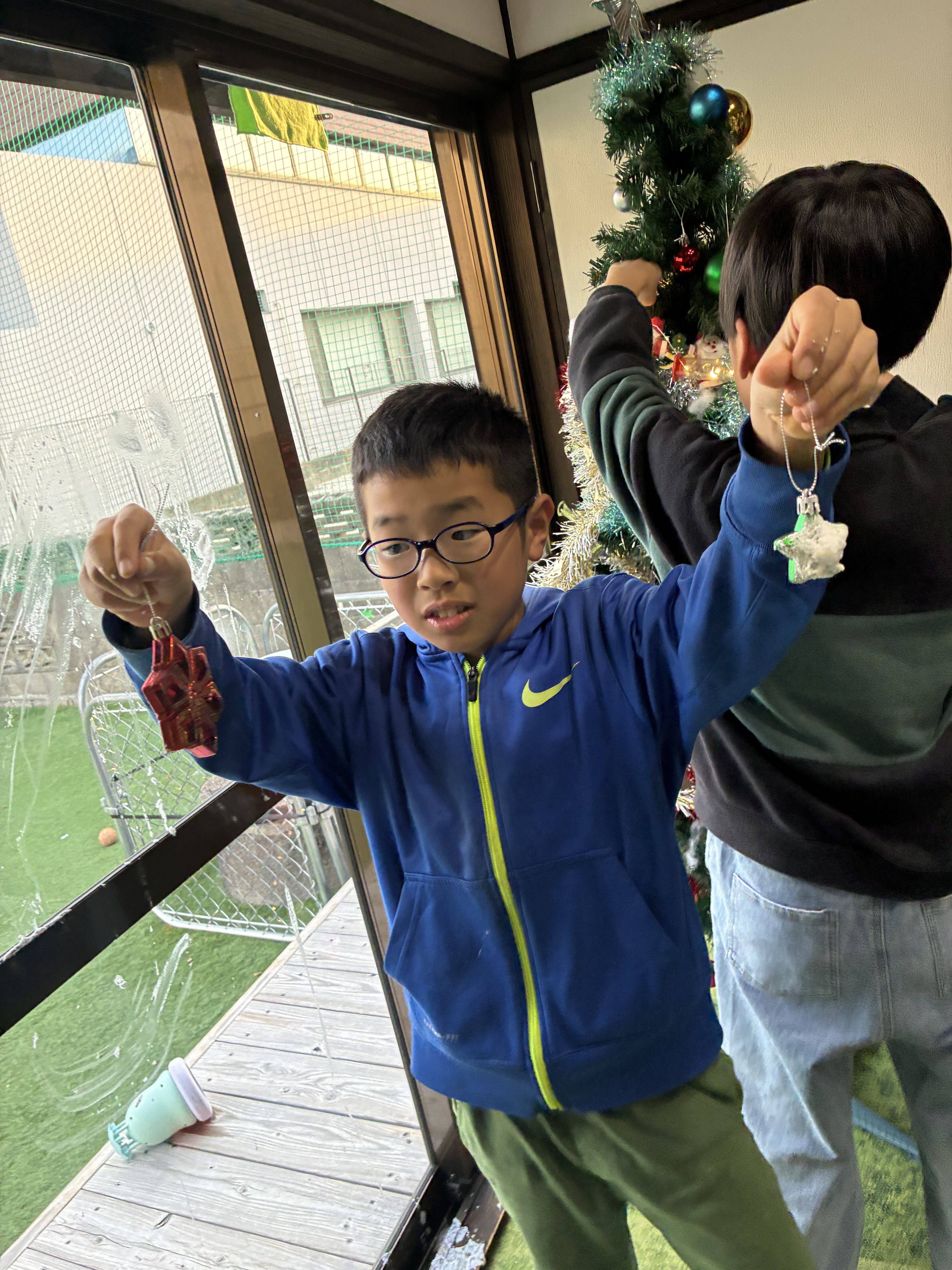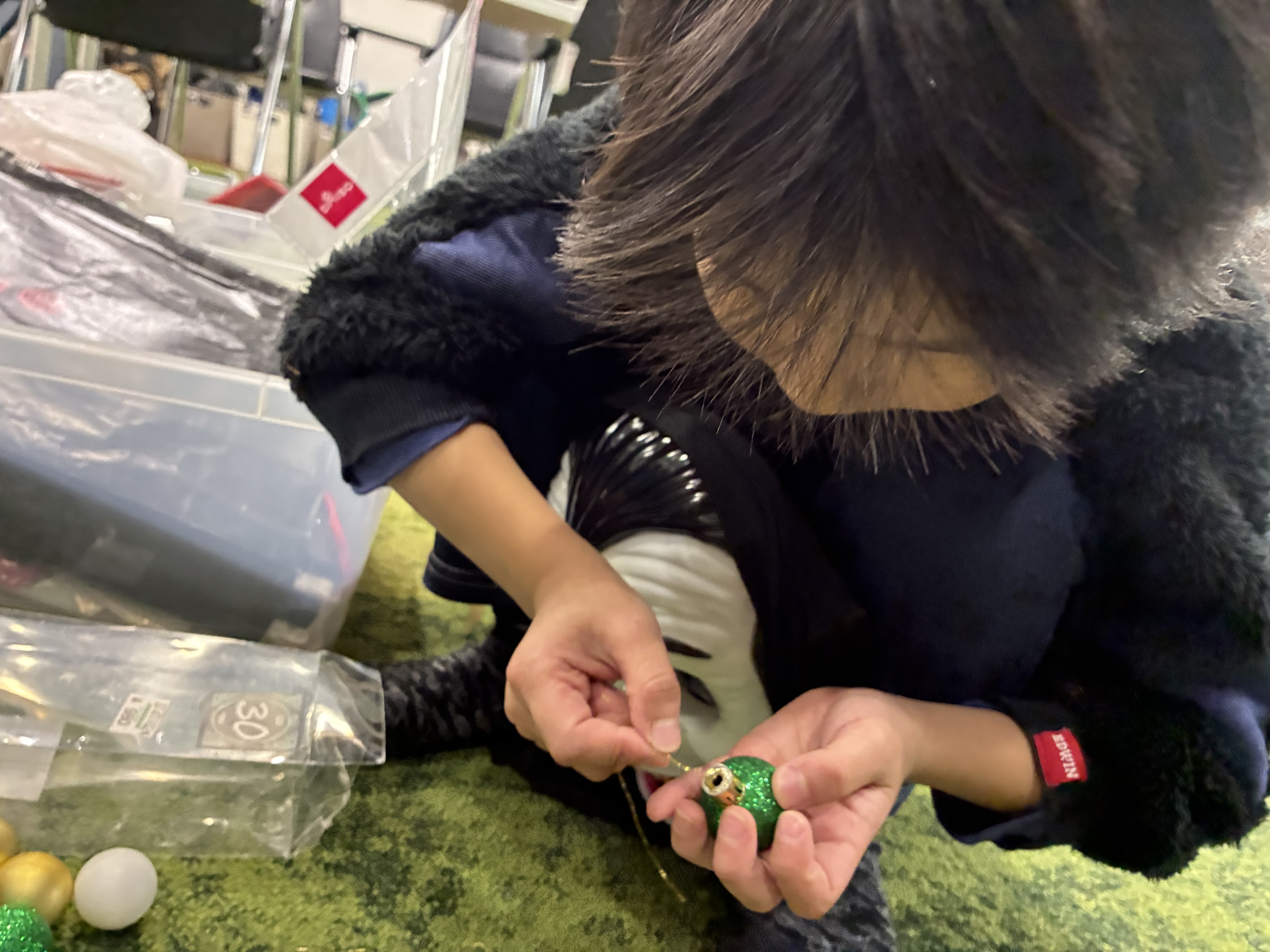 オーナメントやスノースプレーをみてどんな風にしようかワクワクが行動に溢れ出ておりました😊🌼