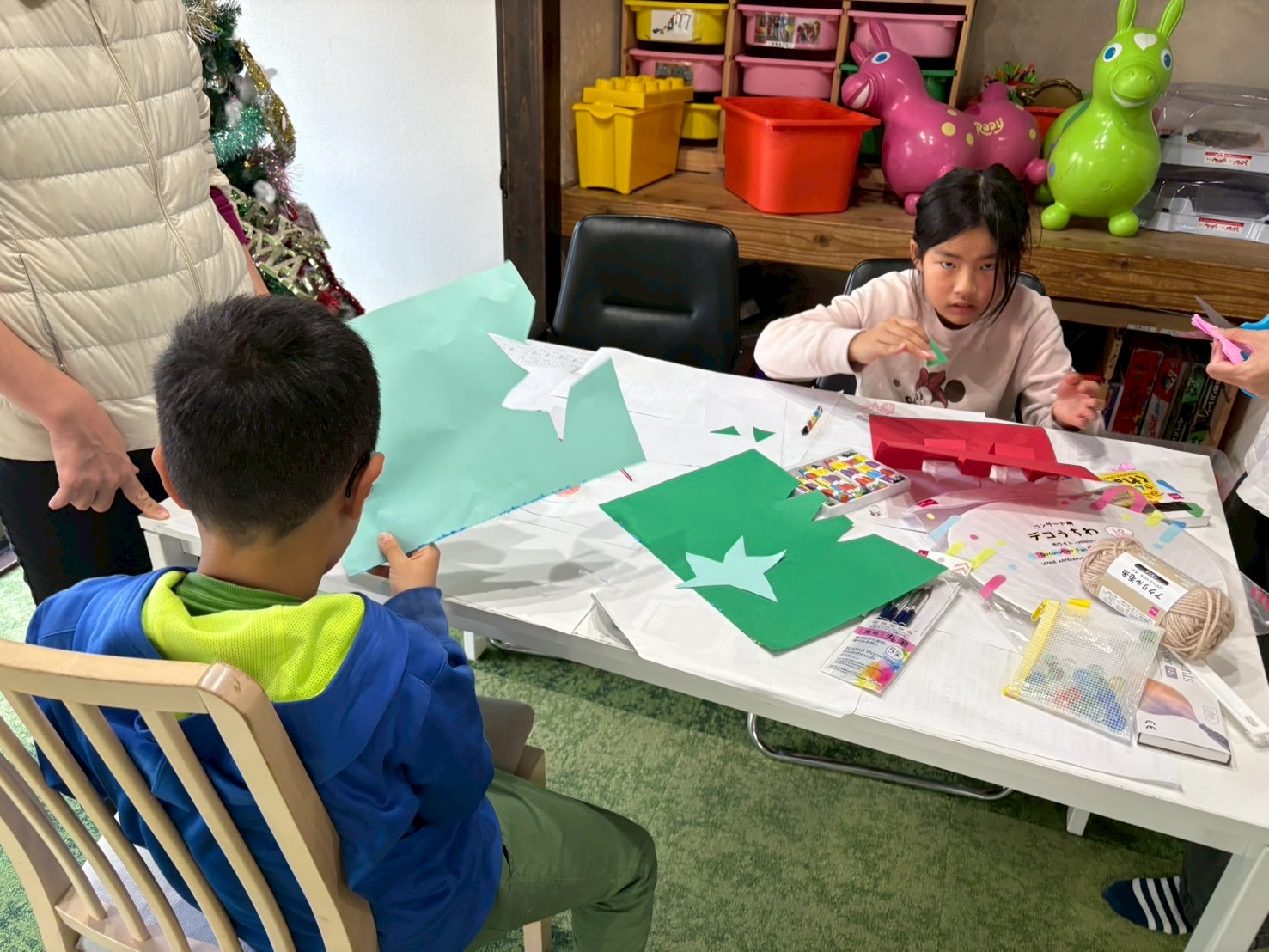 それぞれが選んだ材料で、好きな形や色を組み合わせ、その子らしさを尊重しながら、来るクリスマスに向けてお部屋を彩りました🌻🎄