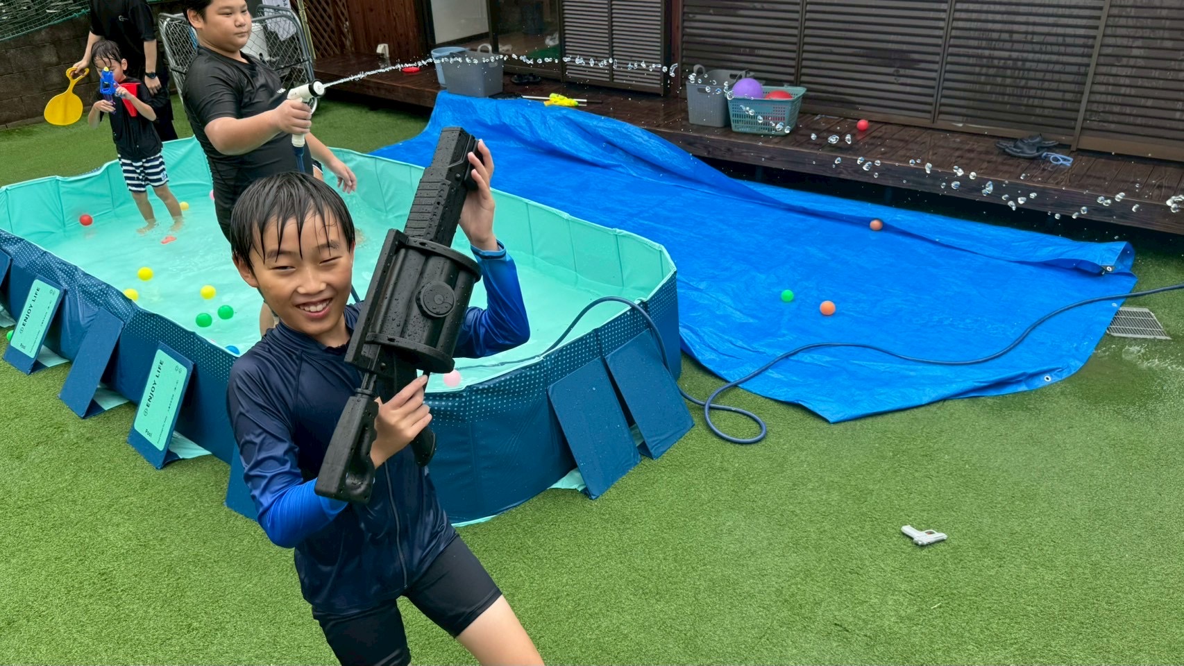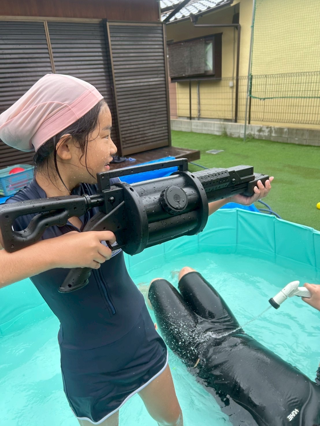 バケツに🪣水鉄砲🔫にシャワー🚿に…