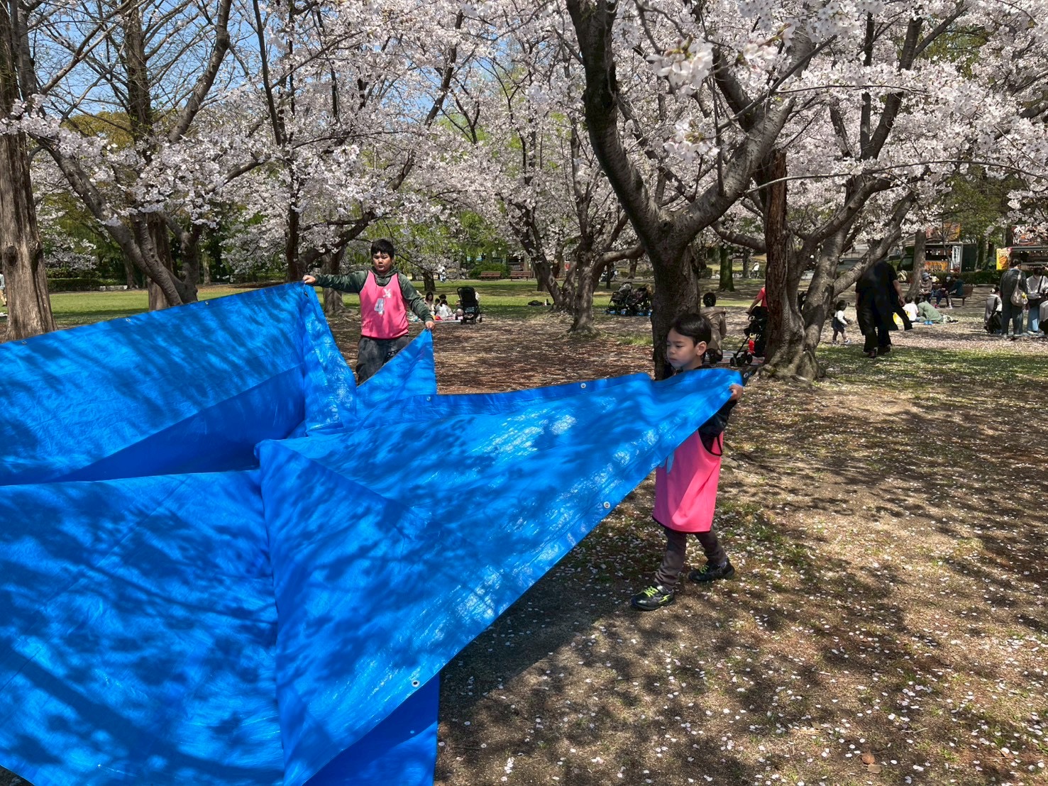 大きな桜の木の下🌸ベストポジション✨✨ブルーシートの準備ありがとう☺️
