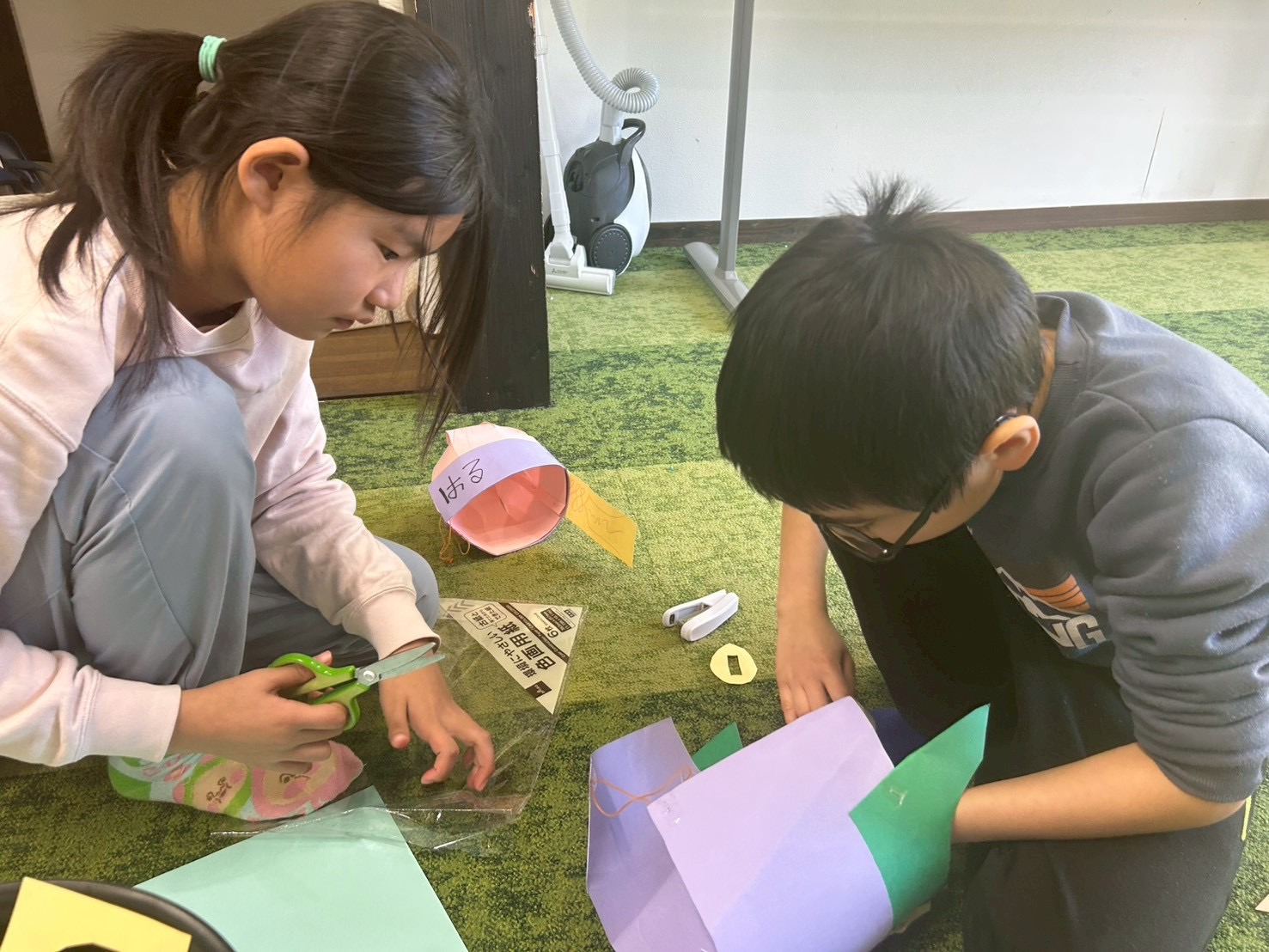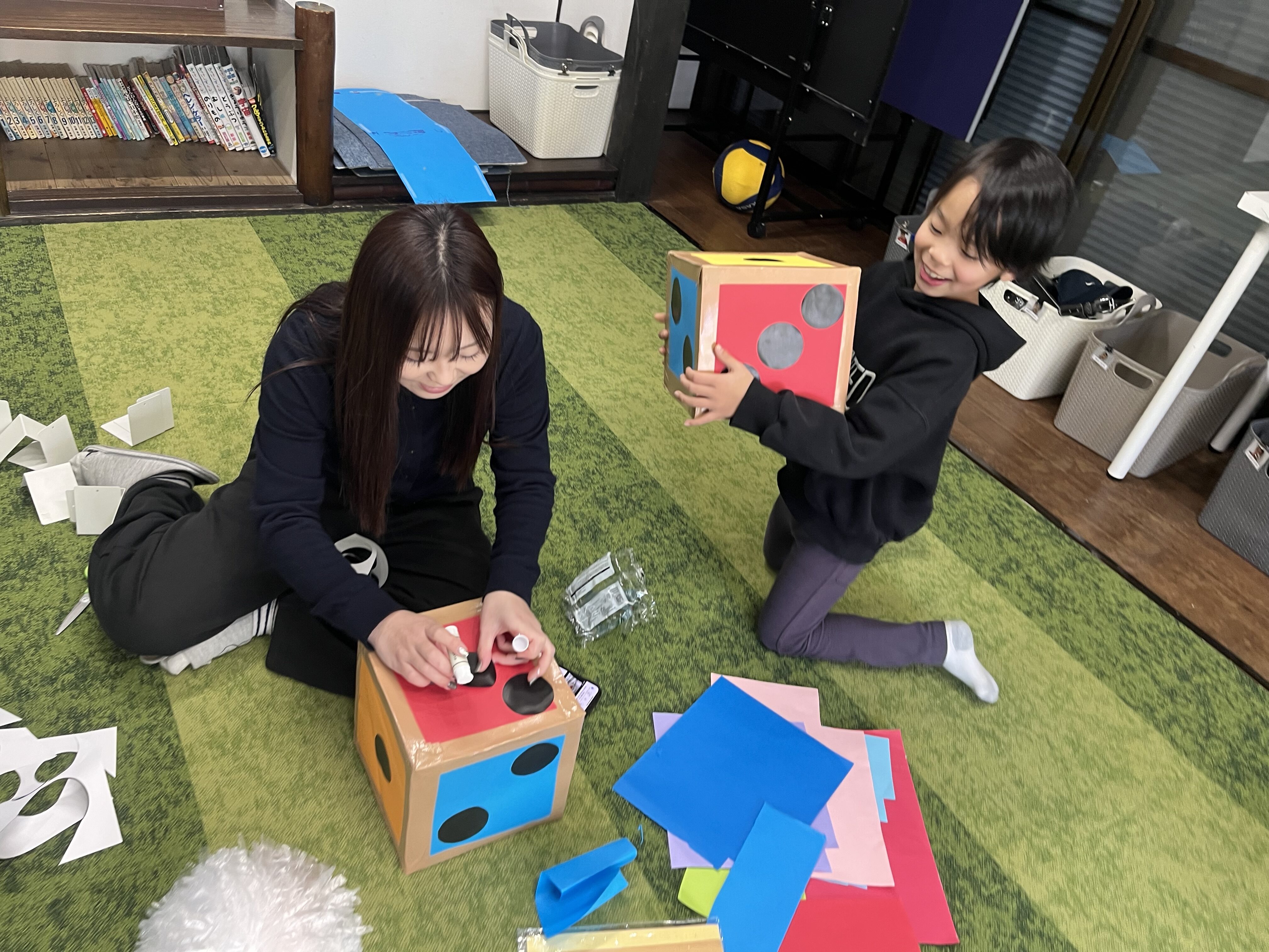 こちらは何やら先生とともに何か製作中の様子。。。一体何が出来るのでしょうか🎩
