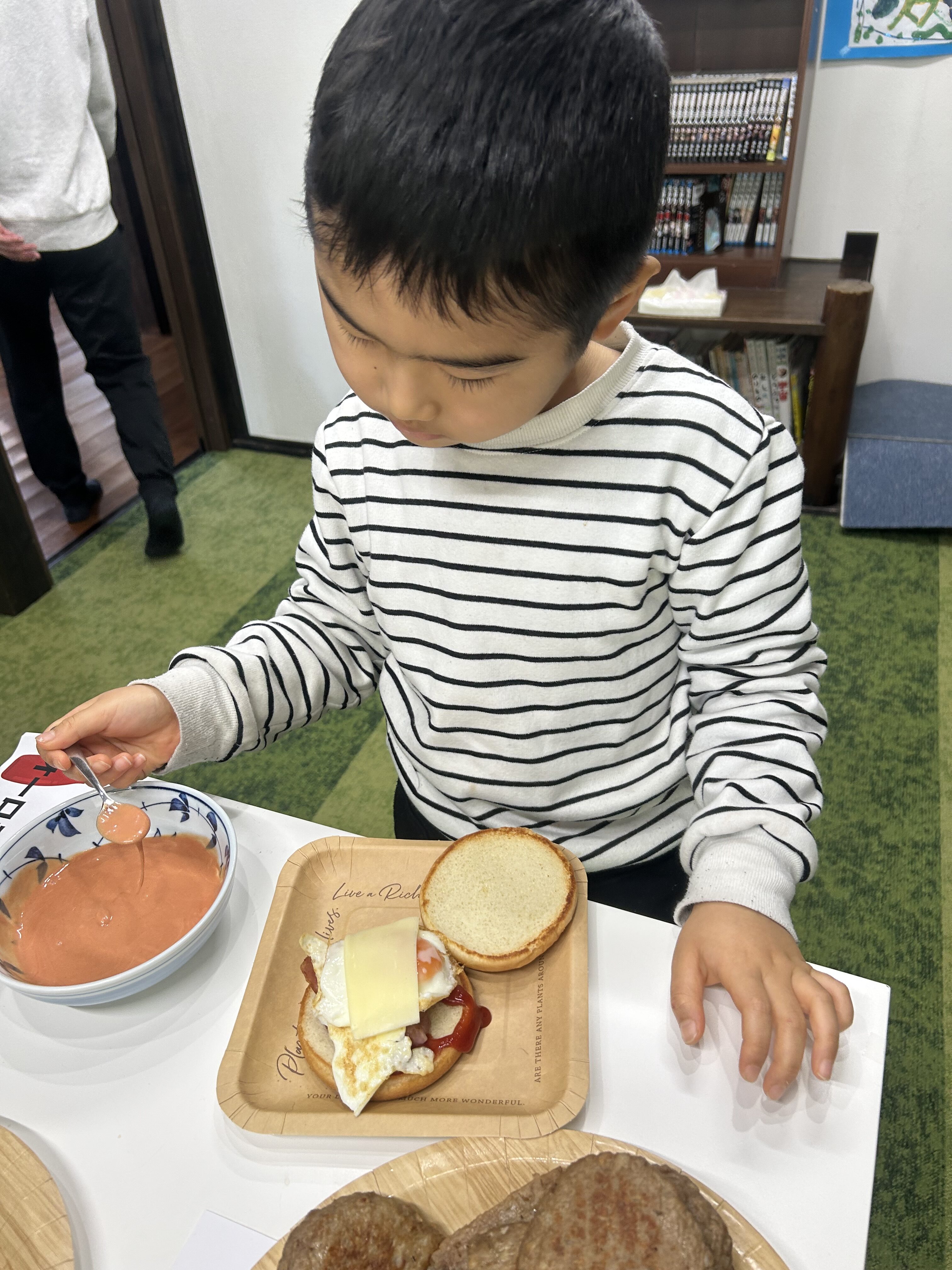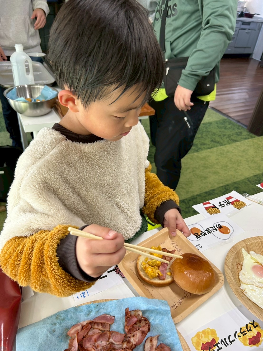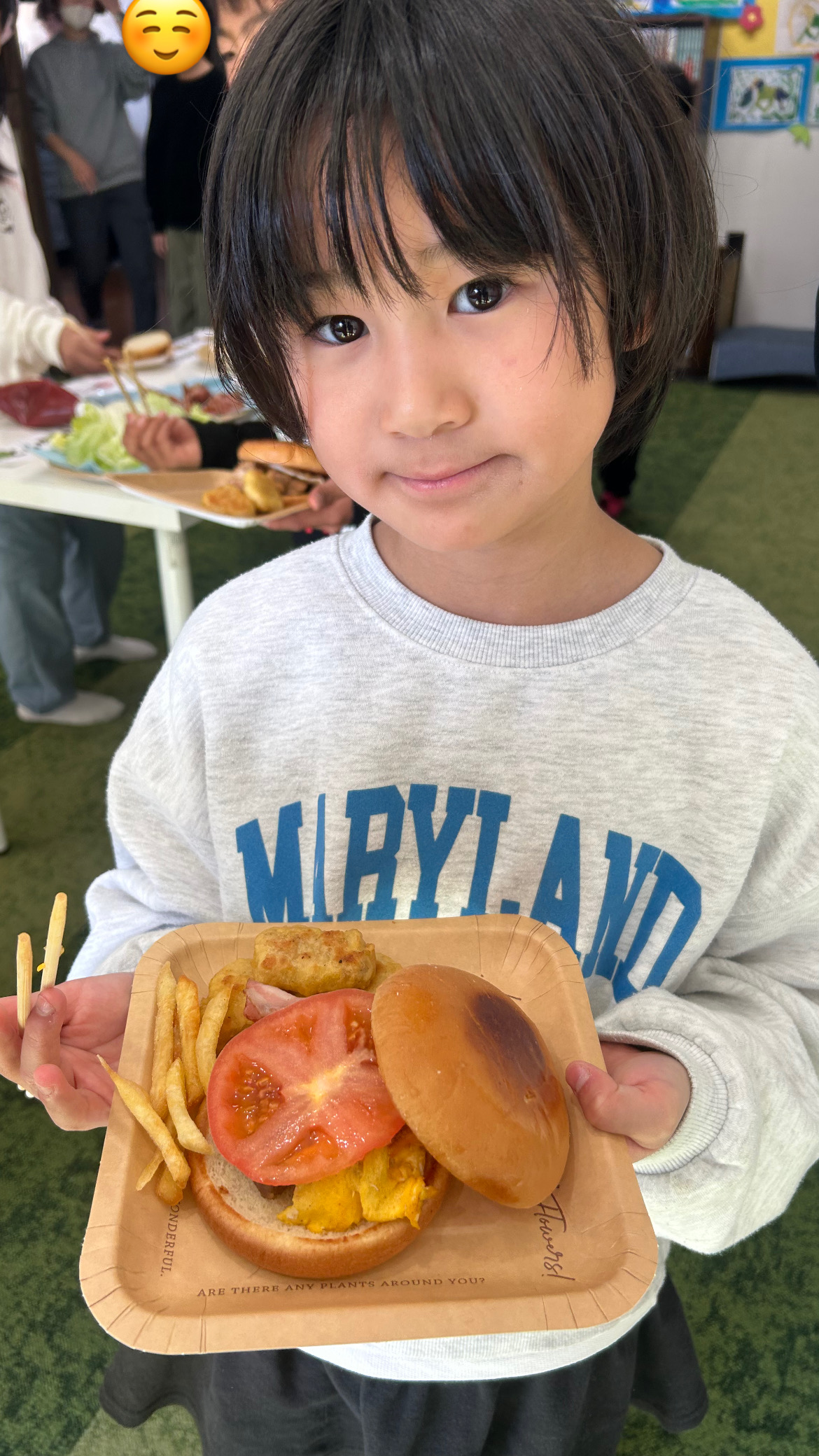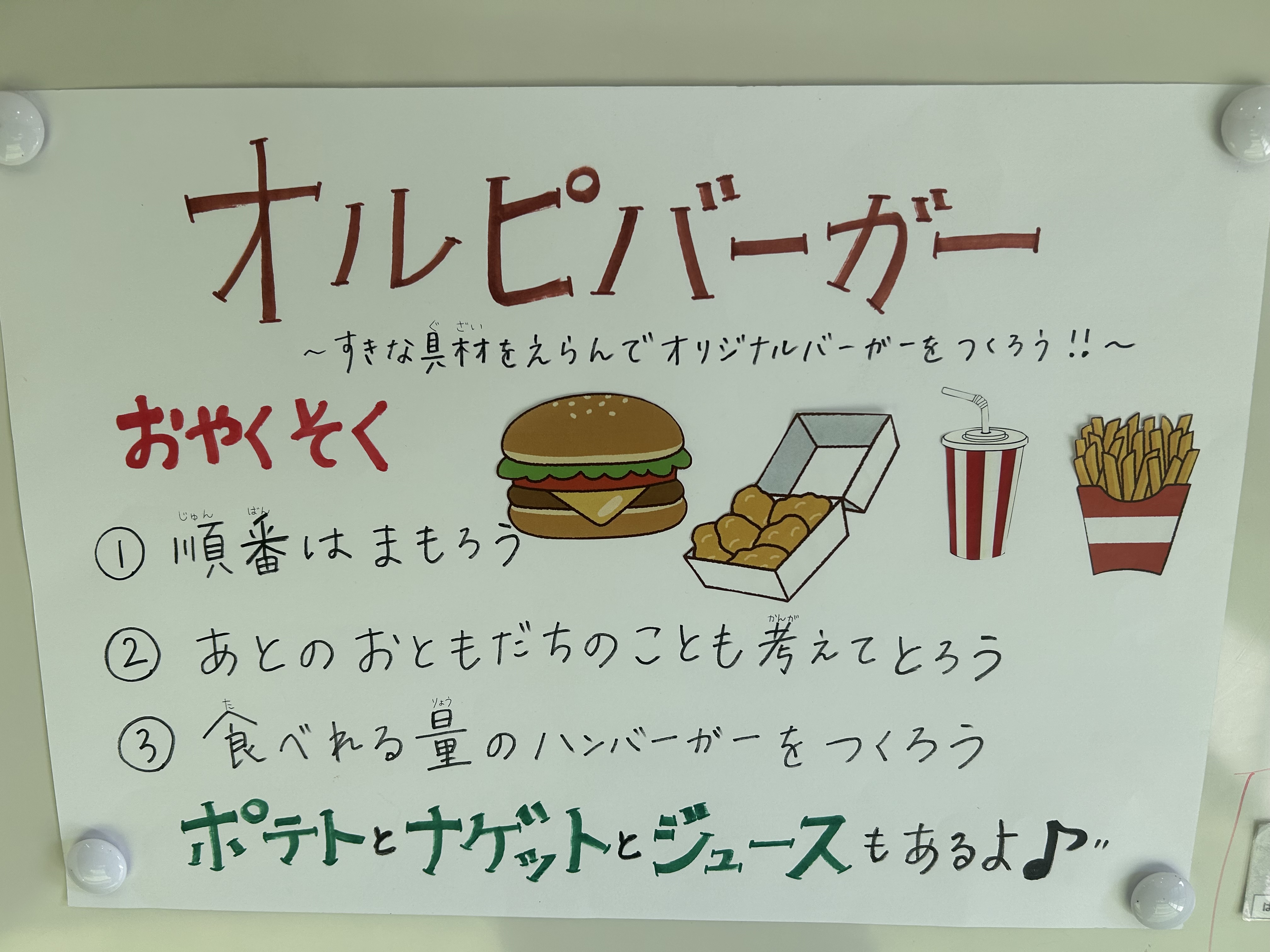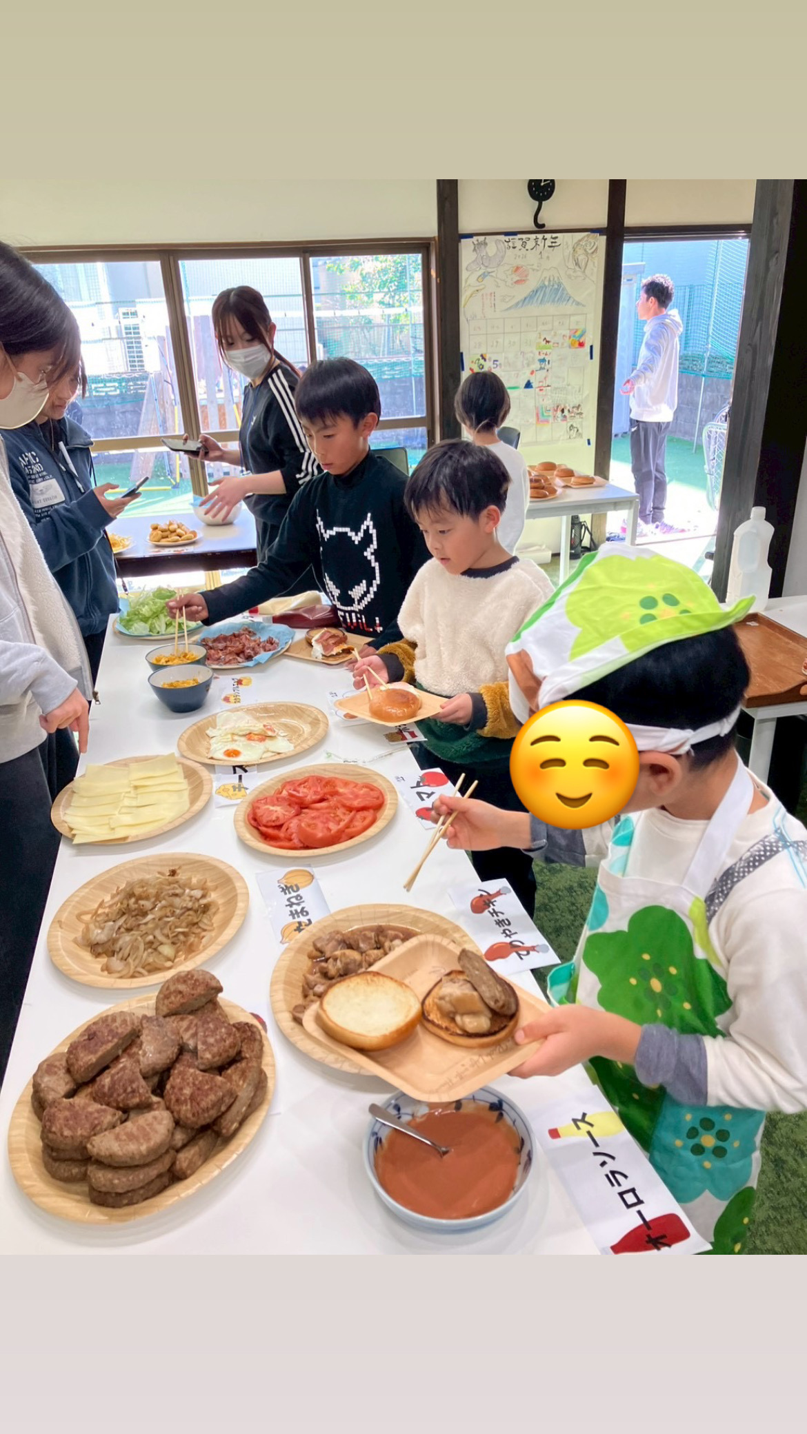 計画を立てている時から、「土曜日ハンバーガー作りするらしいよ!」と噂が広まり、楽しみにしている様子が沢山伺えたので、みんながどんなハンバーガーを作ってくれるんだろう〜!と、私自身もとっても楽しみでした😆🎶