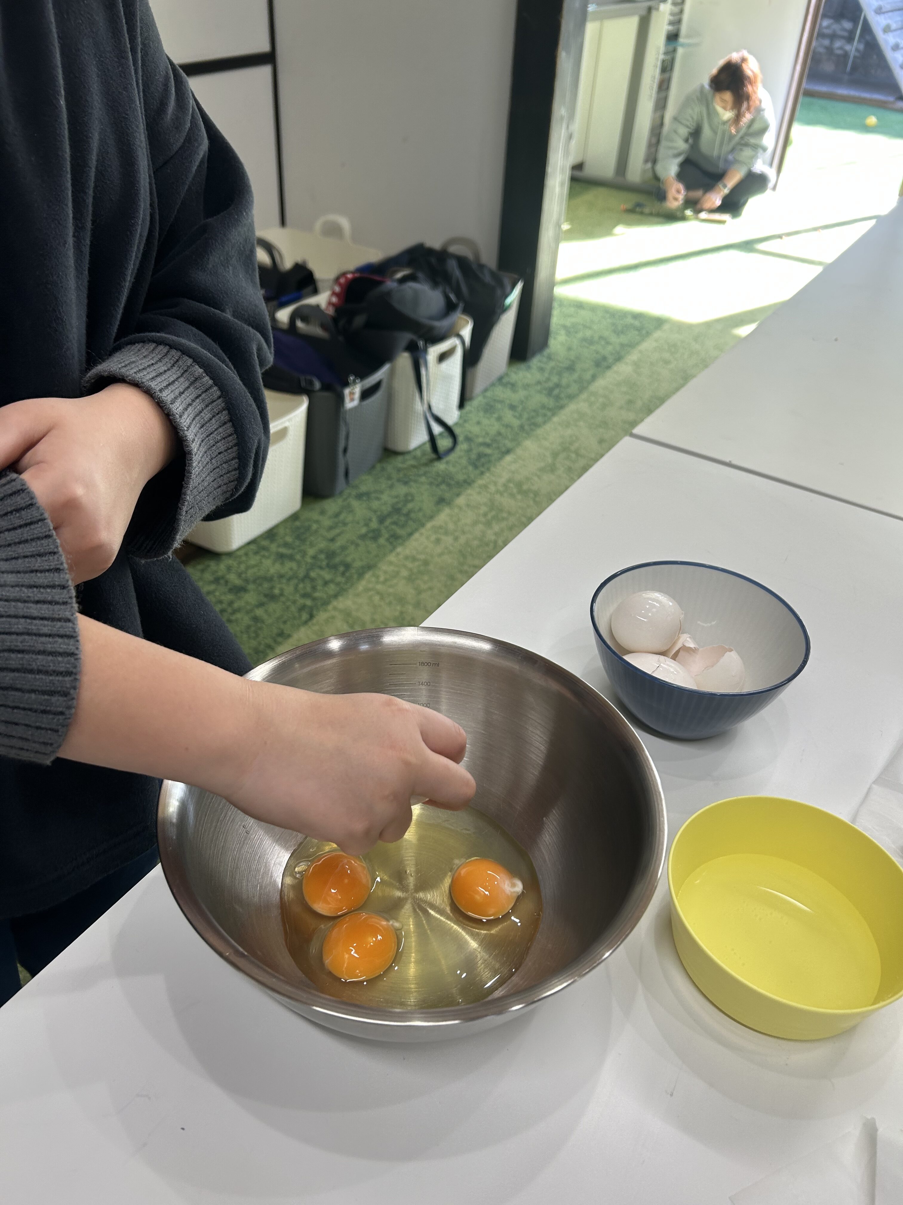 スクランブルエッグ用の卵🥚片手できれ〜いに割れててさすがだったね👍✨