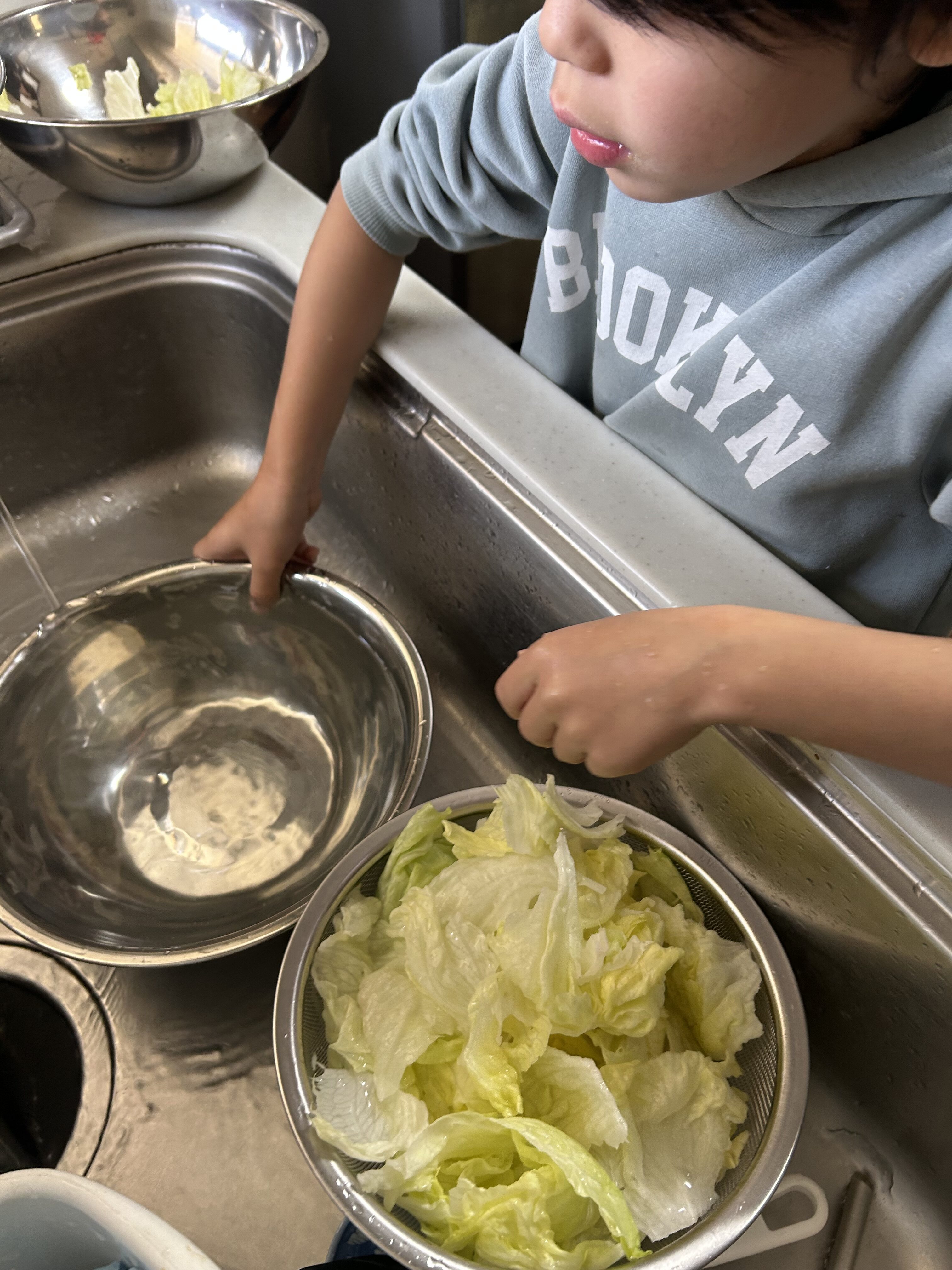 トマト🍅・玉ねぎ🧅・チーズ🧀を切って、レタス🥬を洗って、丁寧にありがとう😊