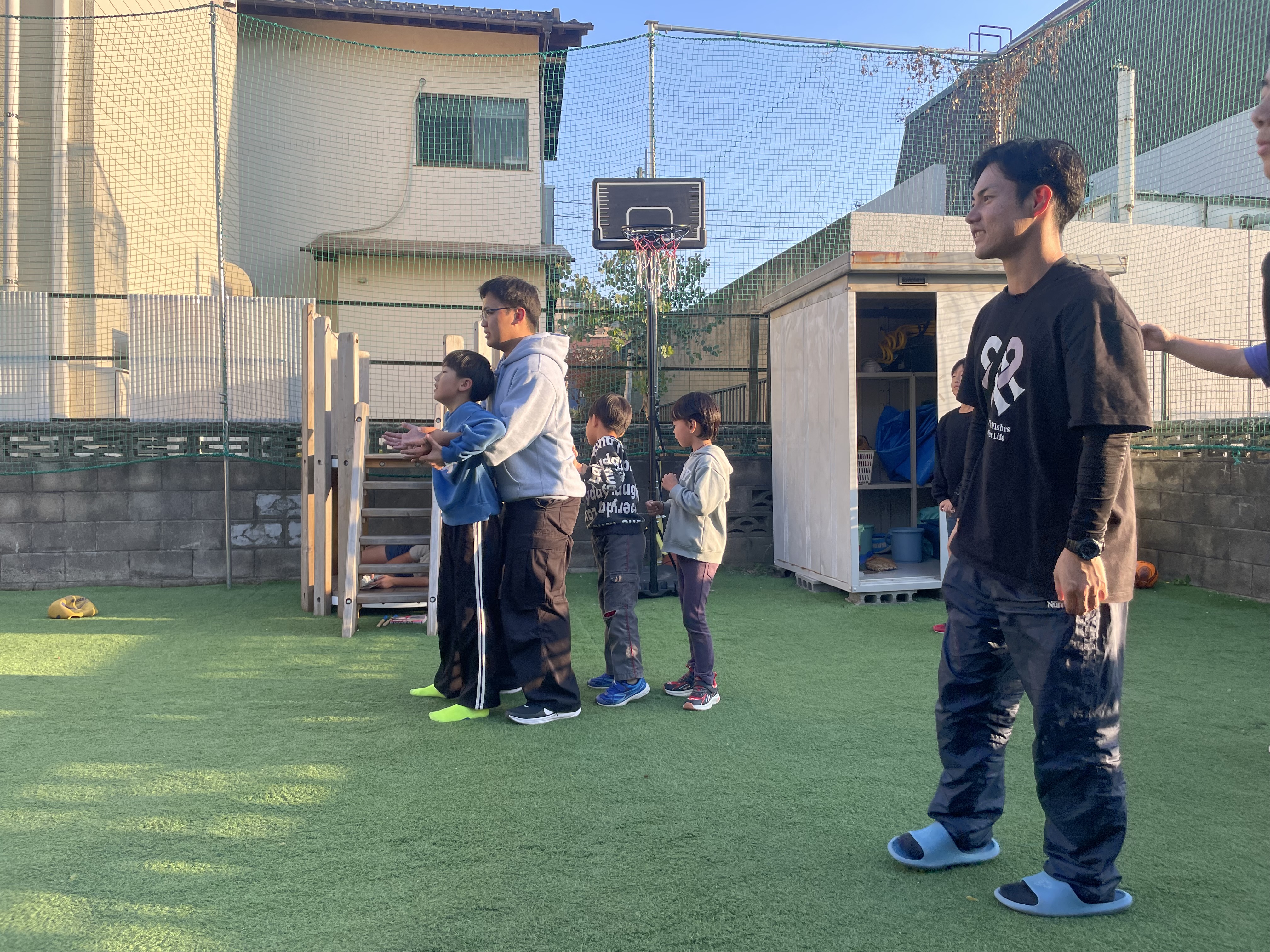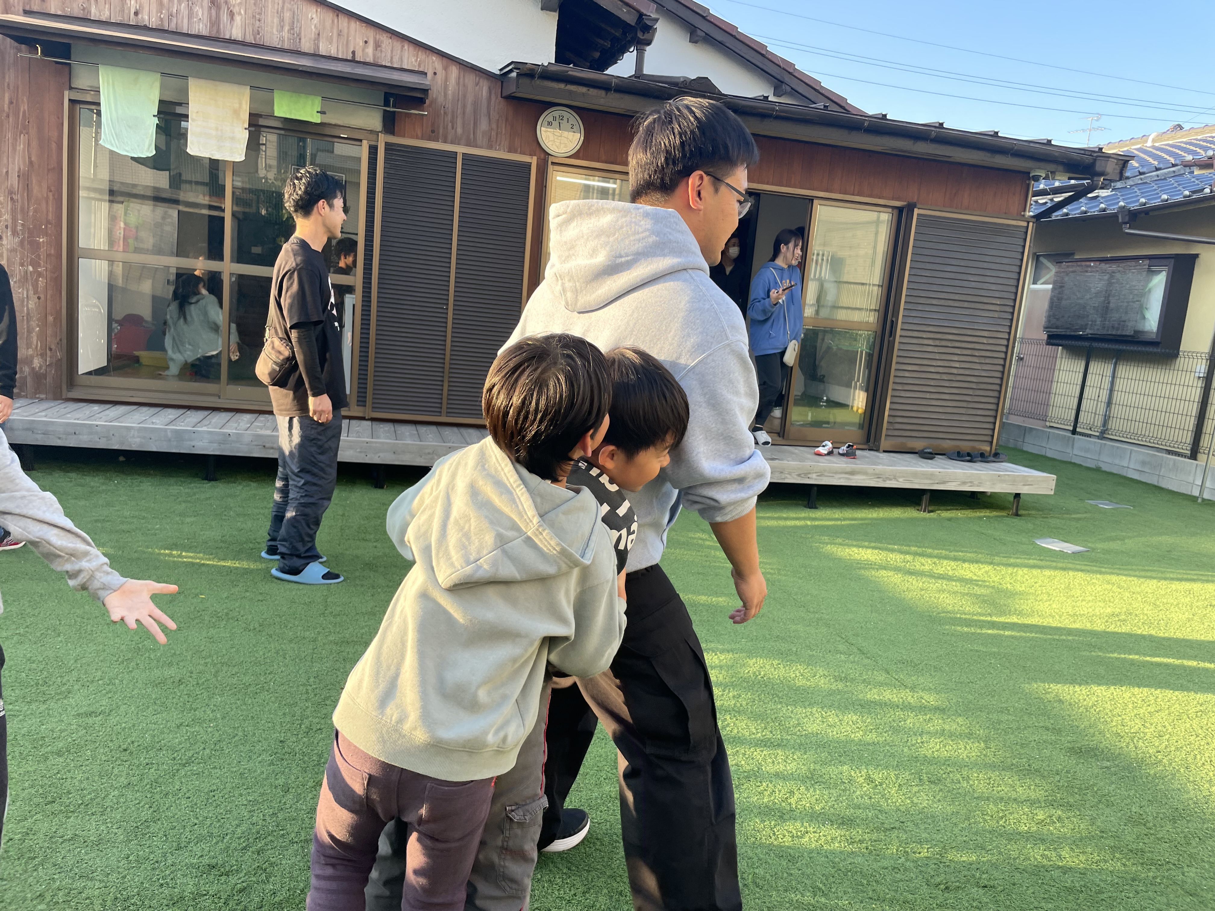 昨日に引き続き本日も遠方からお友達が来所してくださり、一緒に映画鑑賞をしたり、ラグビー応援から帰宅したお友達と合流し、中庭遊びをして楽しく過ごしました☺️