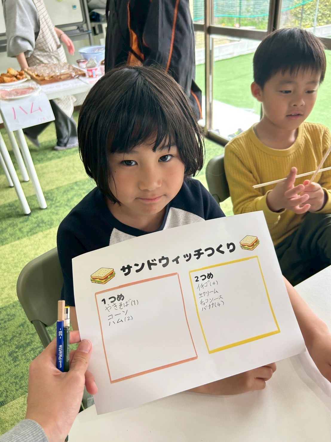 ①沢山のメニューの中から迷わないように、まずはサンドしたい食べ物を↓の紙に書き出します!