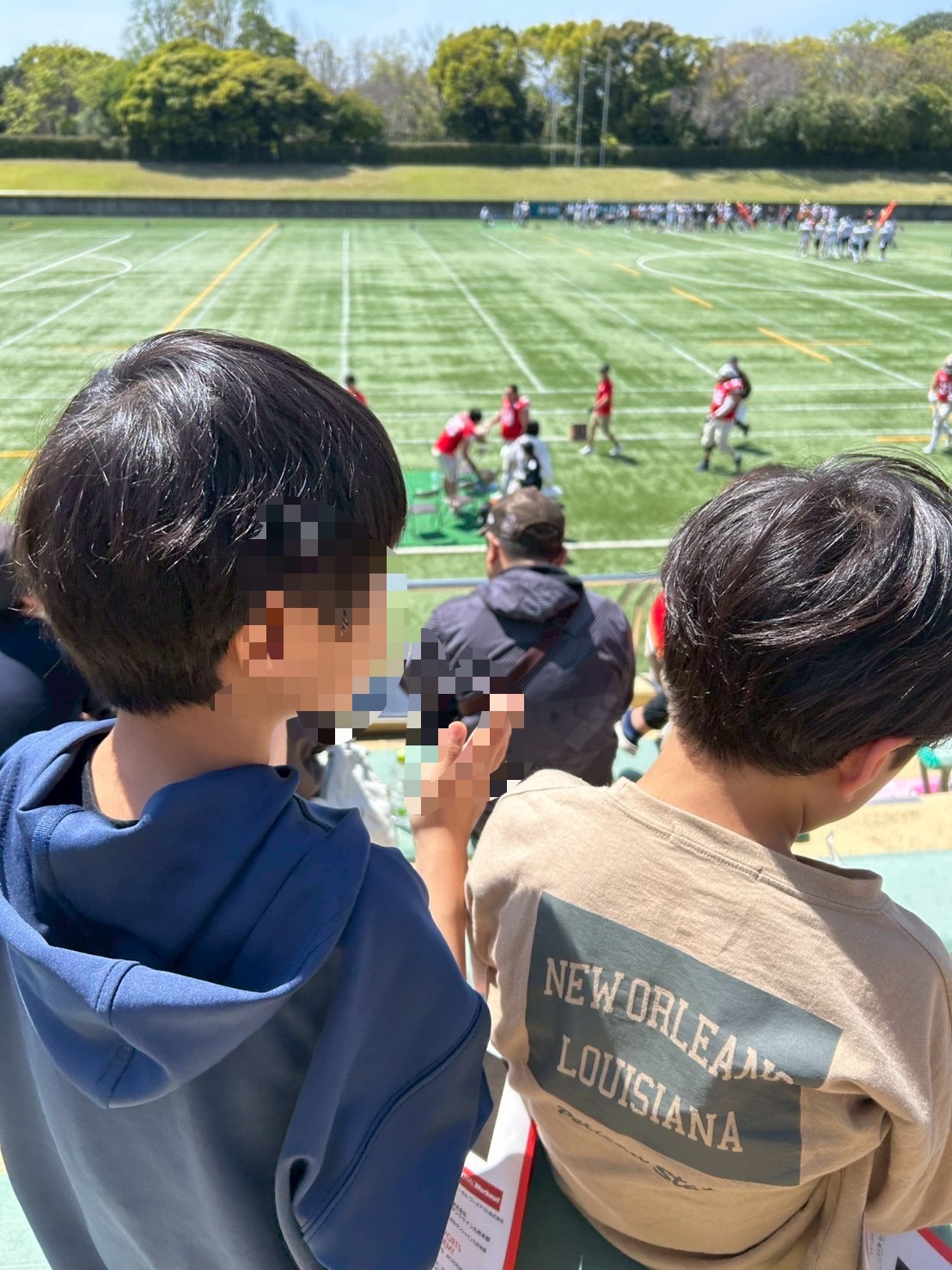 お昼過ぎには行きたい子限定で近くの公園にアメフトチームが試合を行うという事で試合観戦🏟️📣