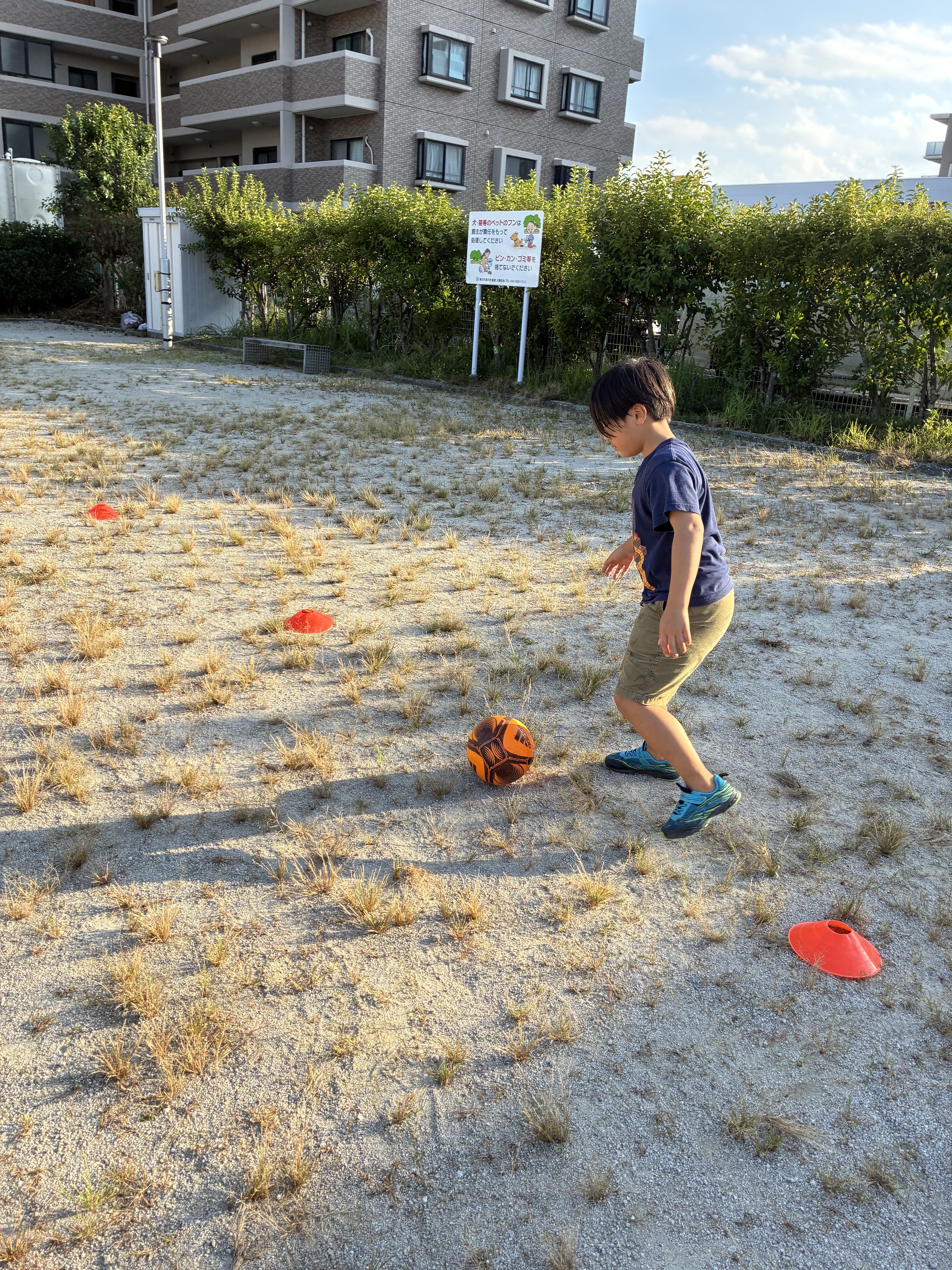 さらにボールを蹴りながら、ジグザグに走ることで体のバランスや反応の速さを育てます🍀