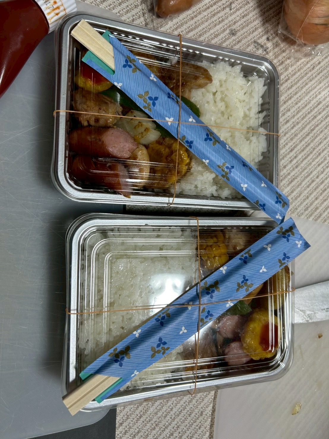 バーベキューをしていると間に合わない為先に焼いた焼肉弁当を持ちいざGO!