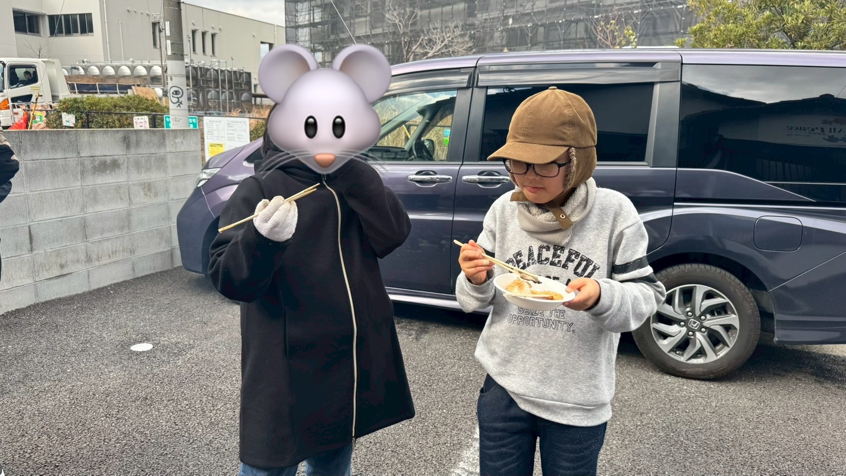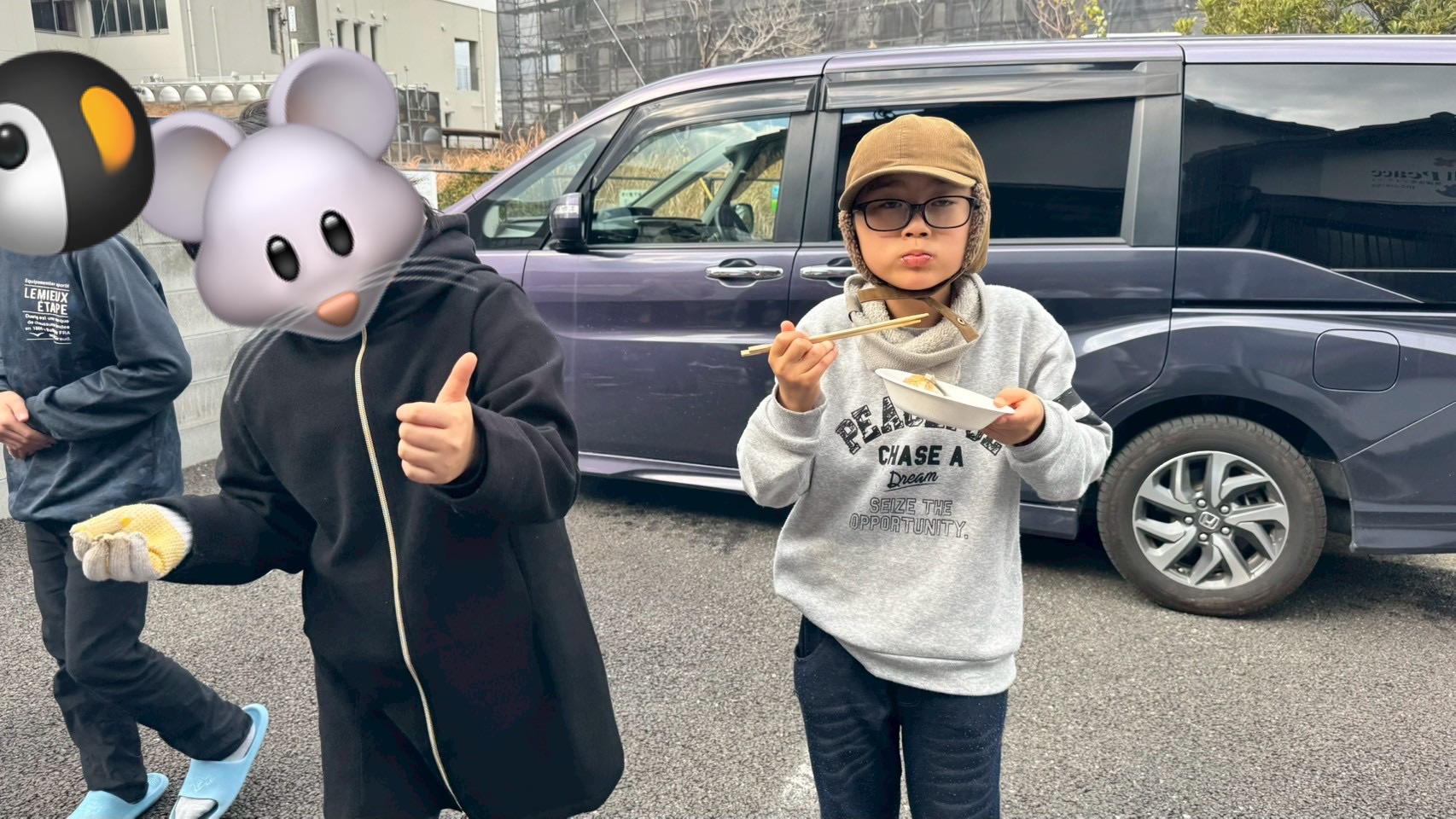 車でエネルギーチャージした後出陣🏁