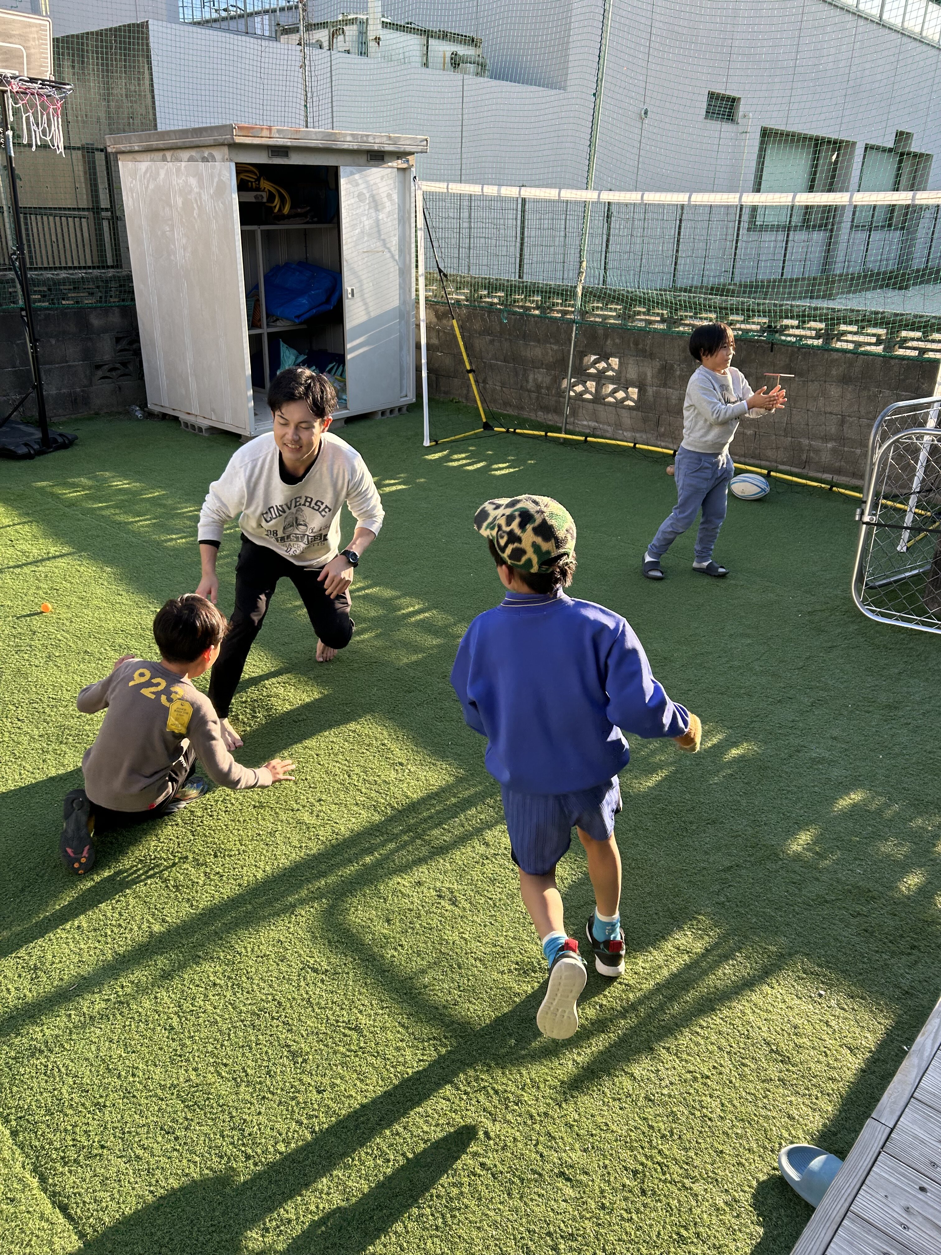 また、説明ボードをあえて作成せずに、説明を聞かないといけない状況をつくり、人の話を聞くことの大切さや、順番を守り、待っている間は座って他の人の応援することの大切さをみんなには伝えました!