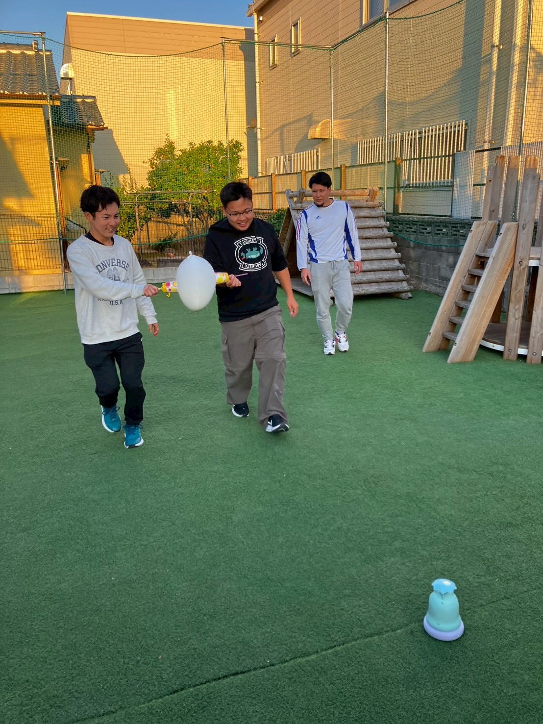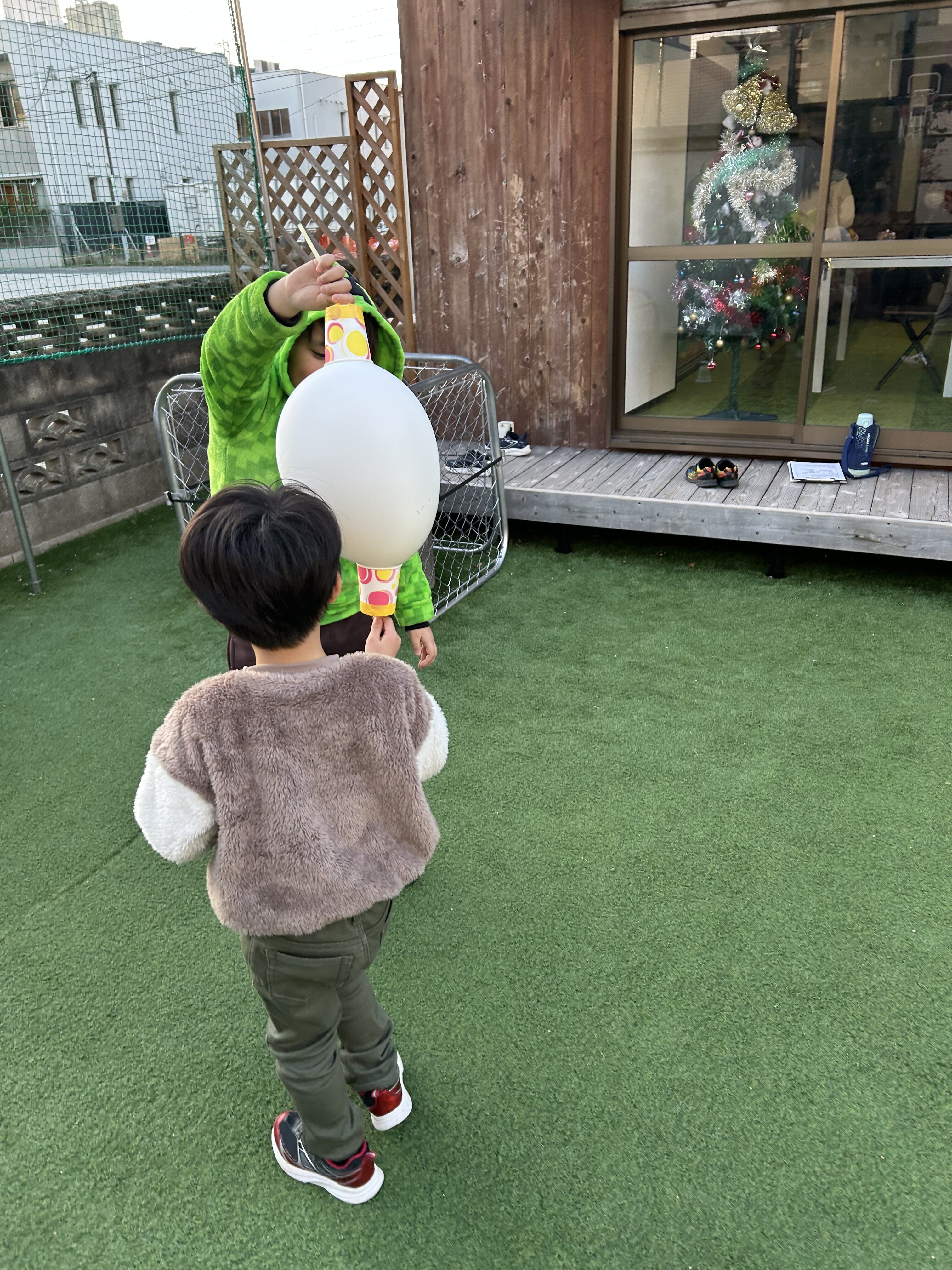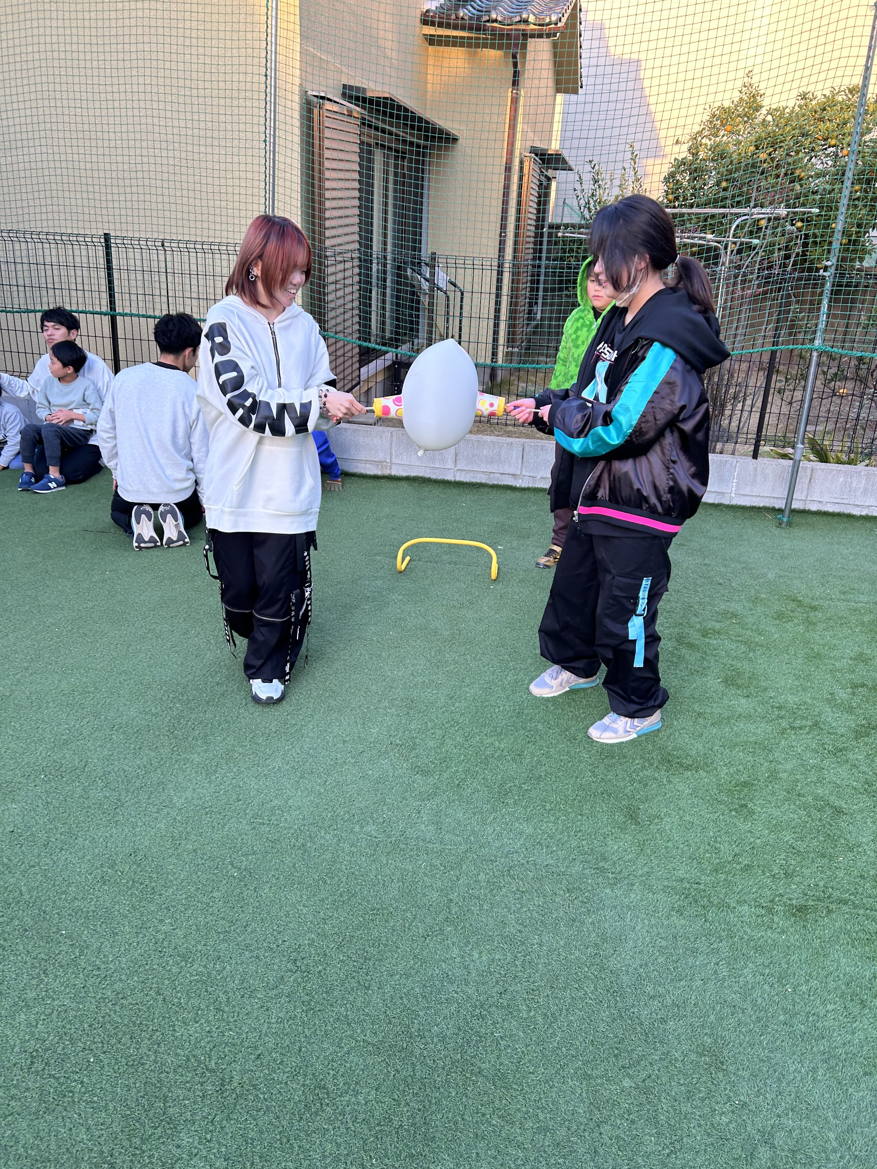 『もっと力緩めて!』『この辺を風船に当てたらいいんやない?』『こっちに動いて!』等々、コミュニケーションを取りながら、協力しなければ出来ない状況にしました!