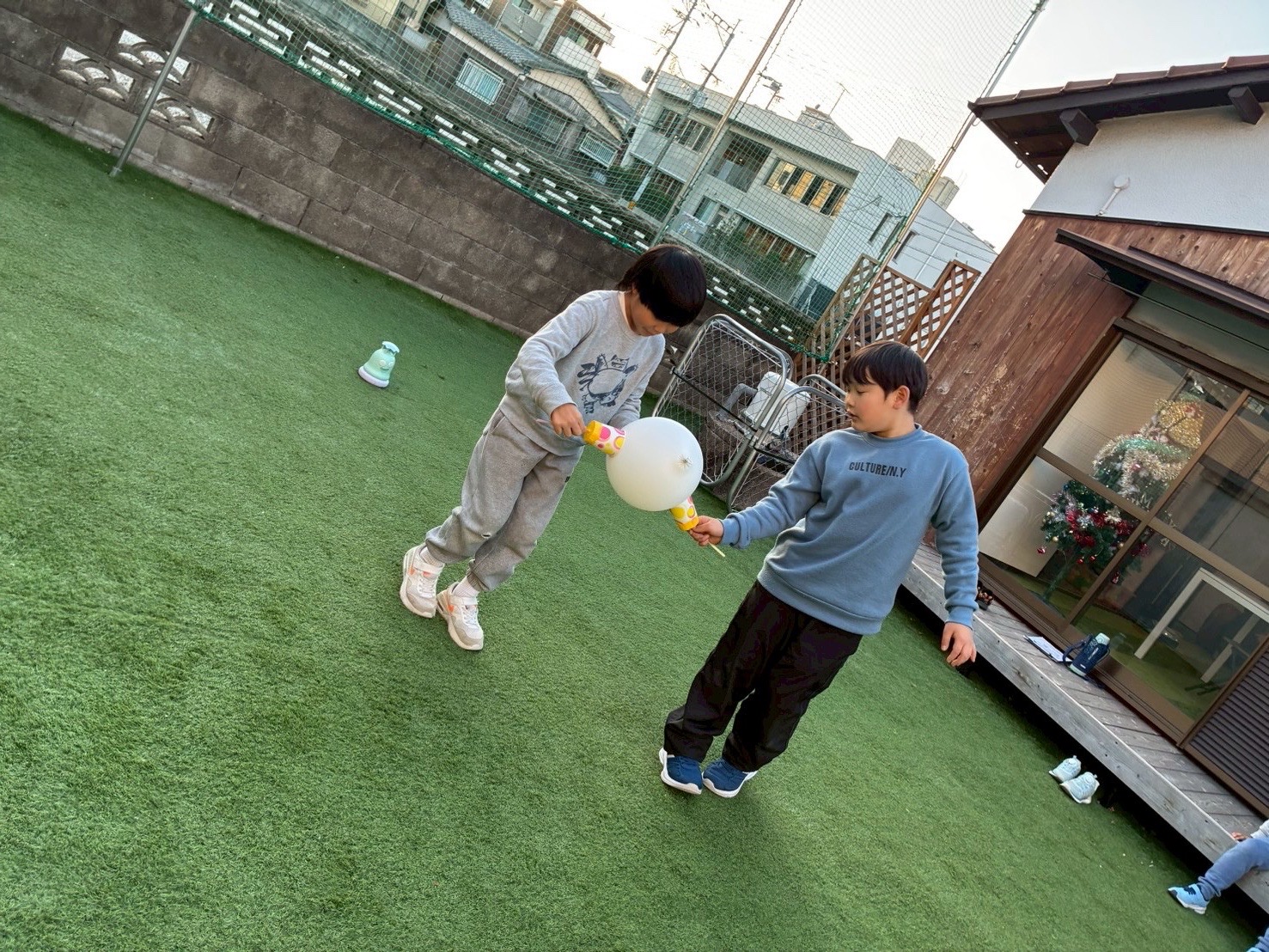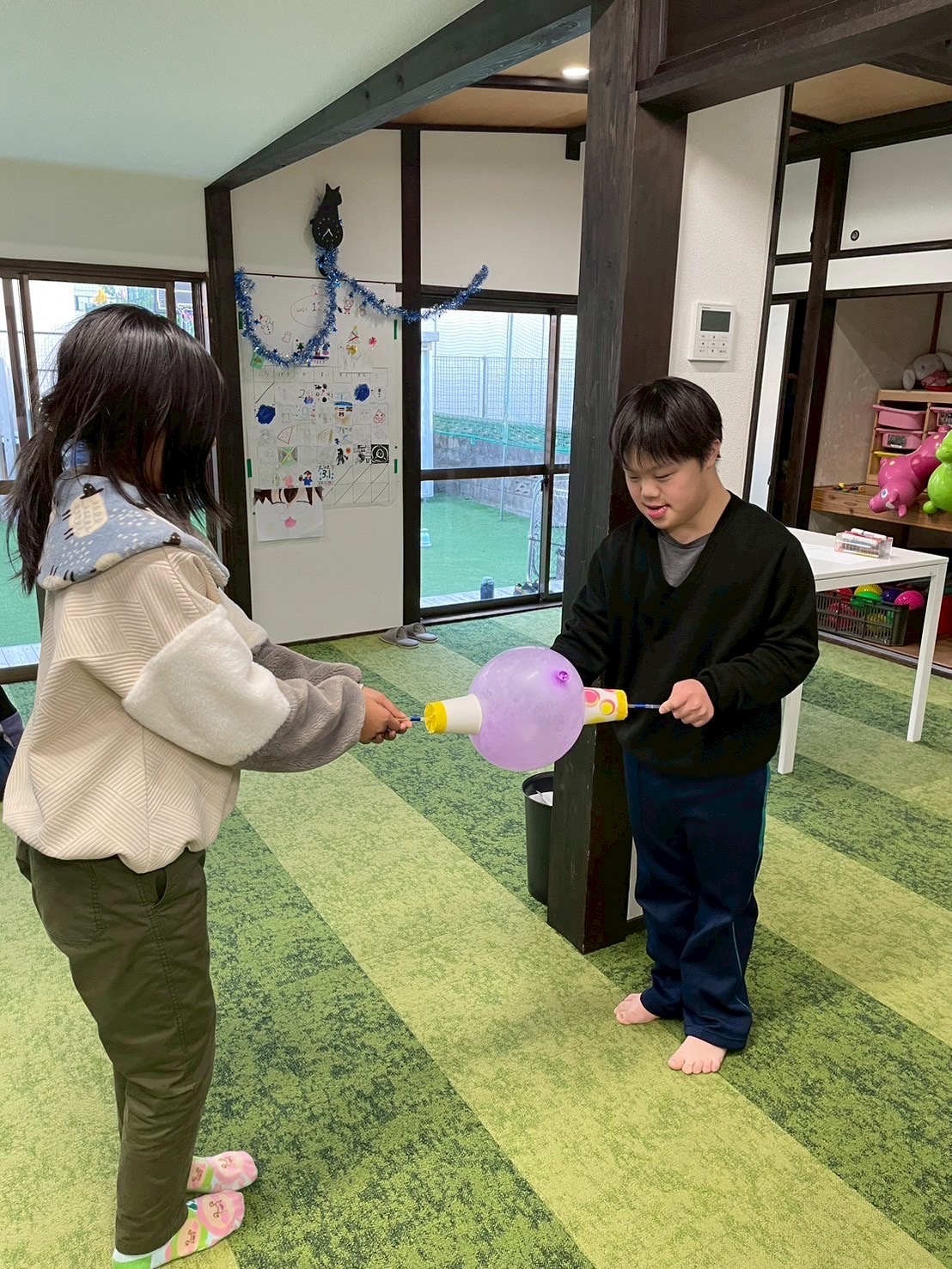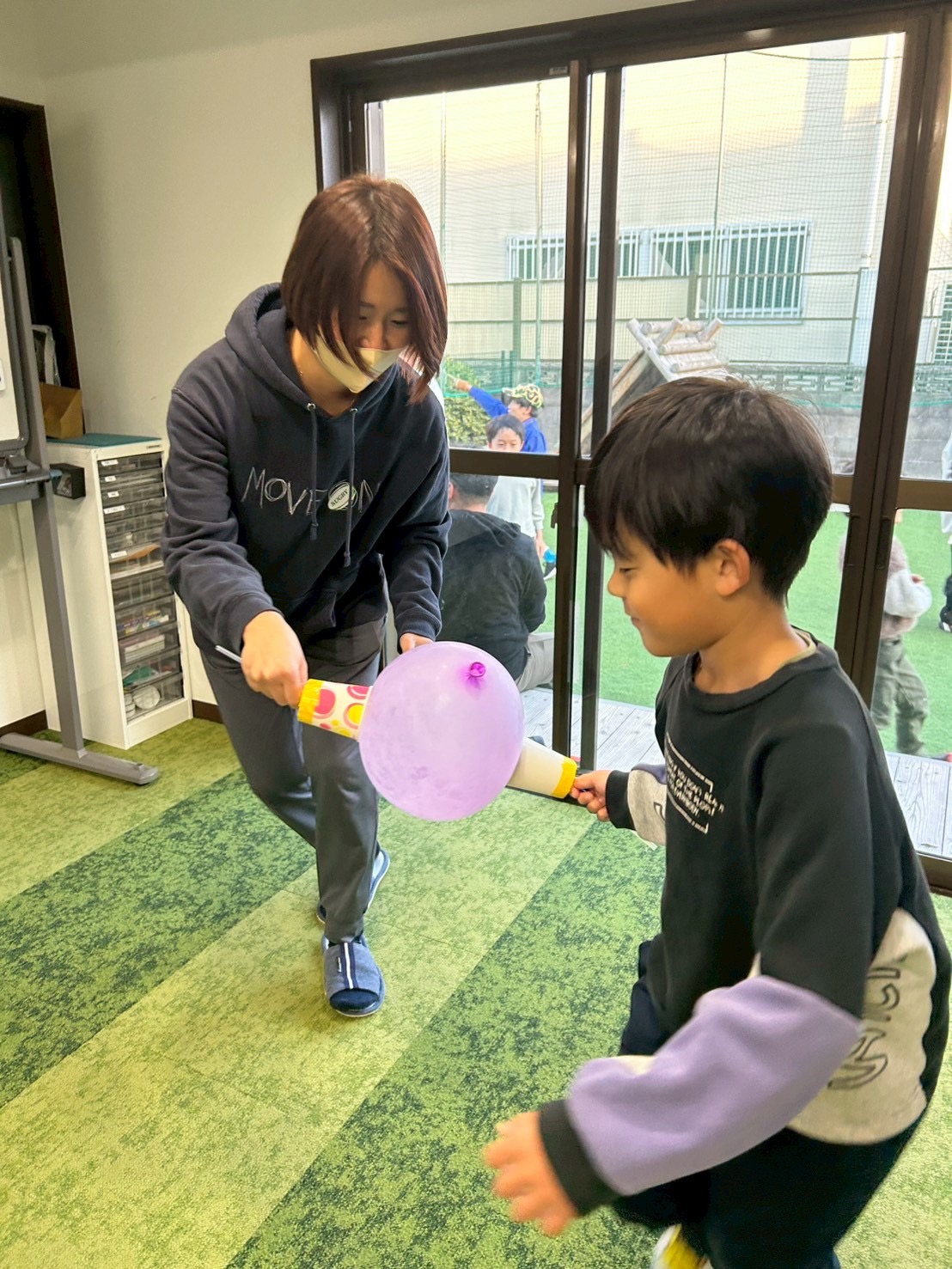 『もっと力緩めて!』『この辺を風船に当てたらいいんやない?』『こっちに動いて!』等々、コミュニケーションを取りながら、協力しなければ出来ない状況にしました!