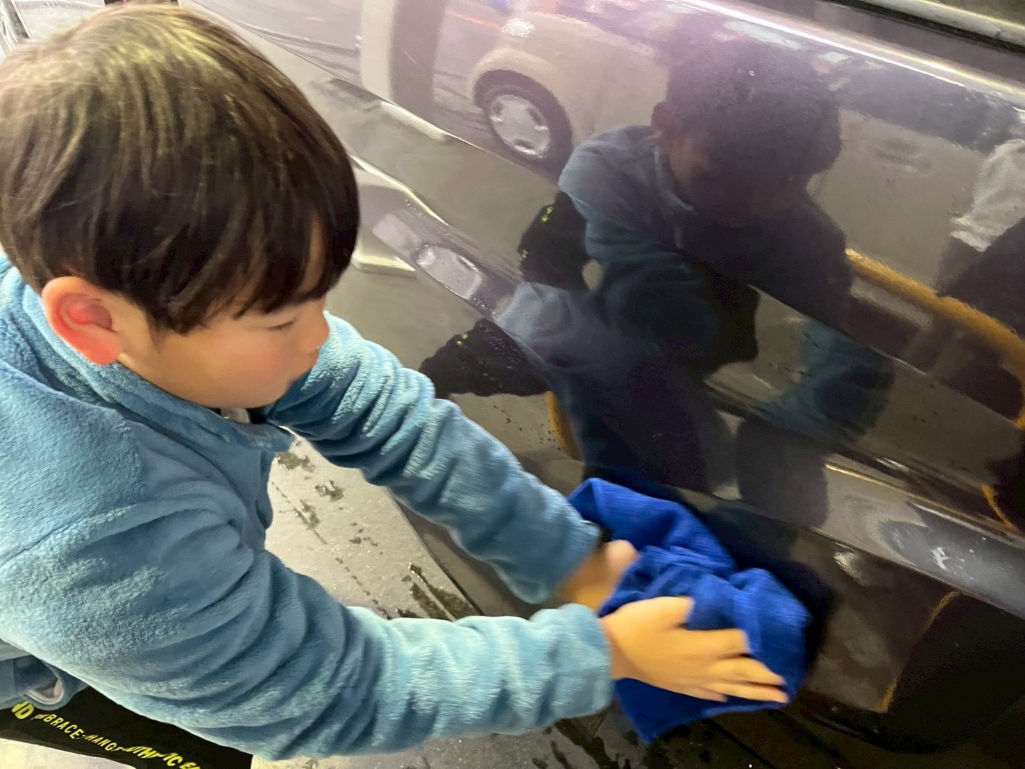 洗車機で洗われた車達を丁寧に拭き上げていきます😊