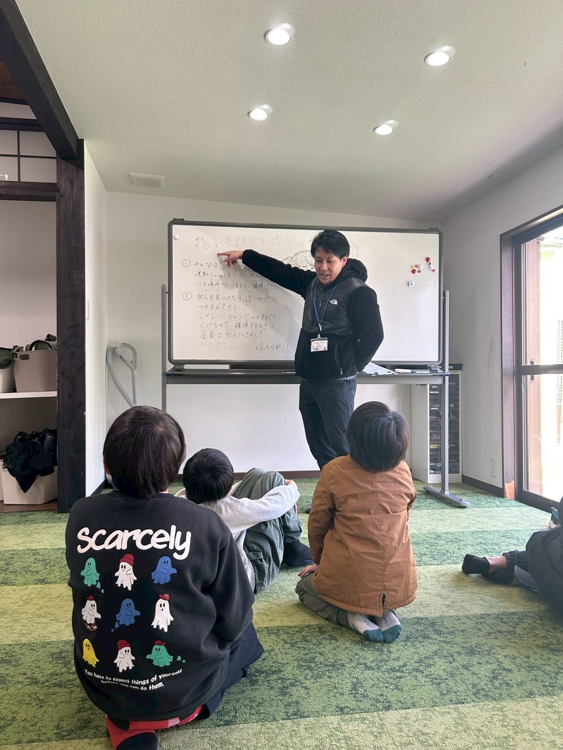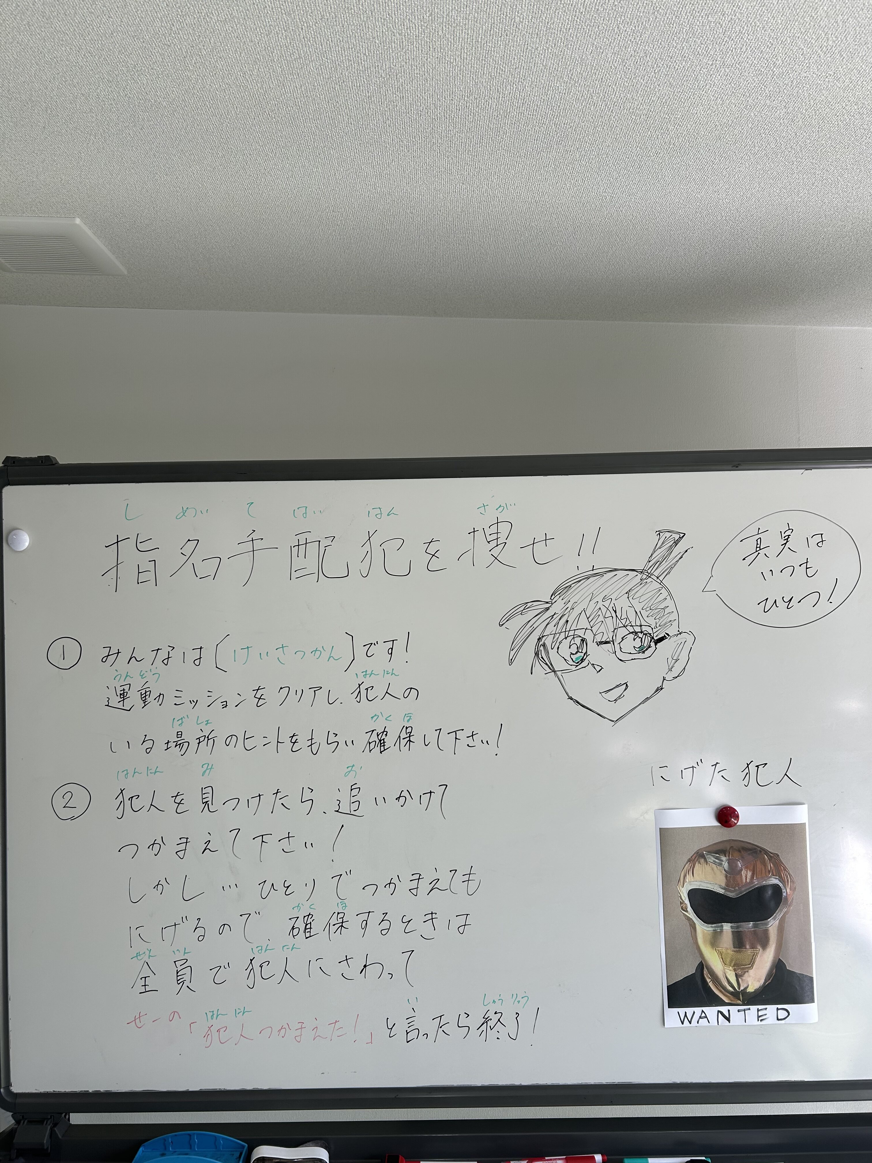 今日は子供達に警察官になってもらい、逃走した重大事件の指名手配犯を確保してもらうことにしました!👮♂️