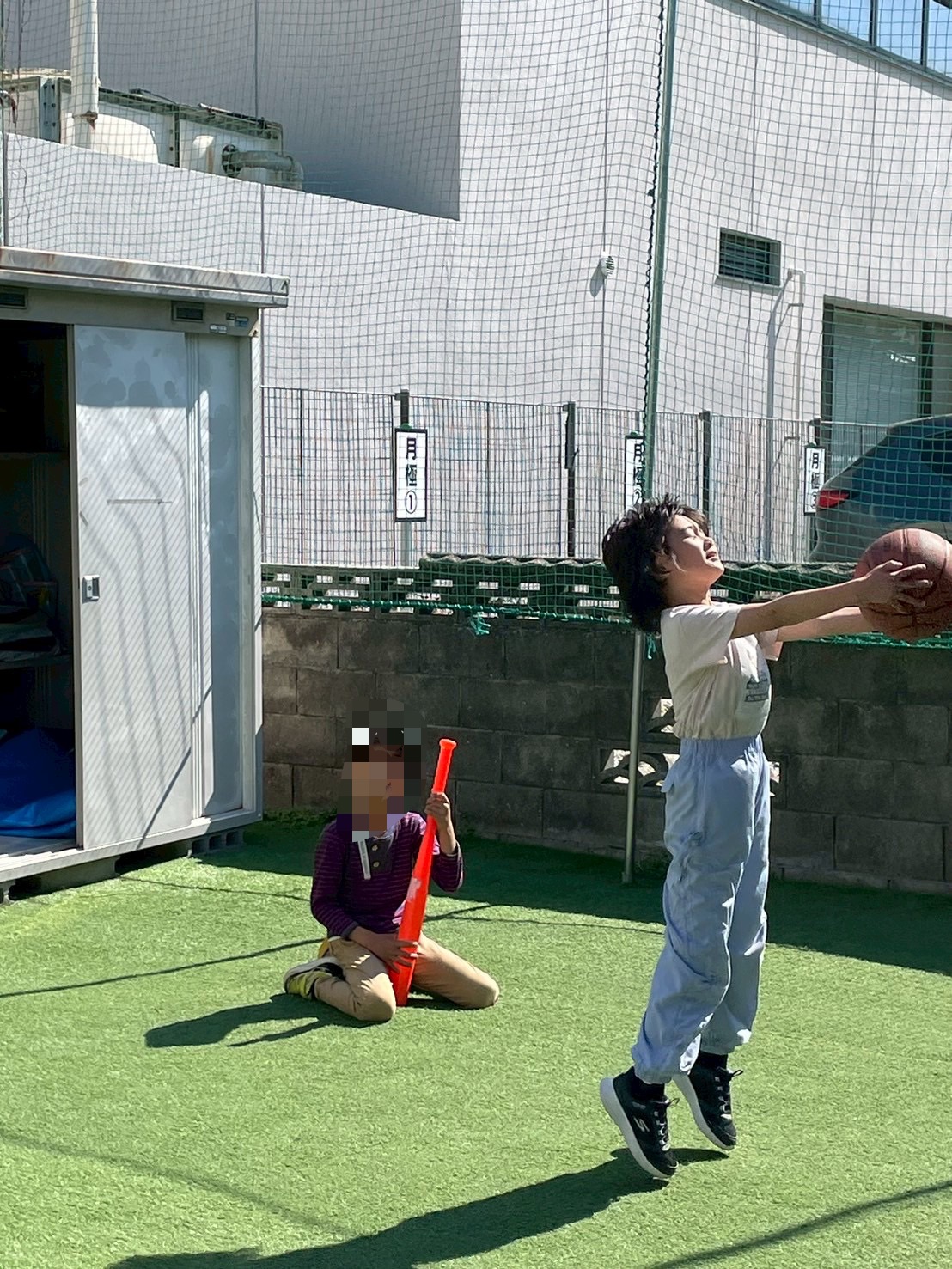 活動前からお庭で自主練を行う子どもたち🐋