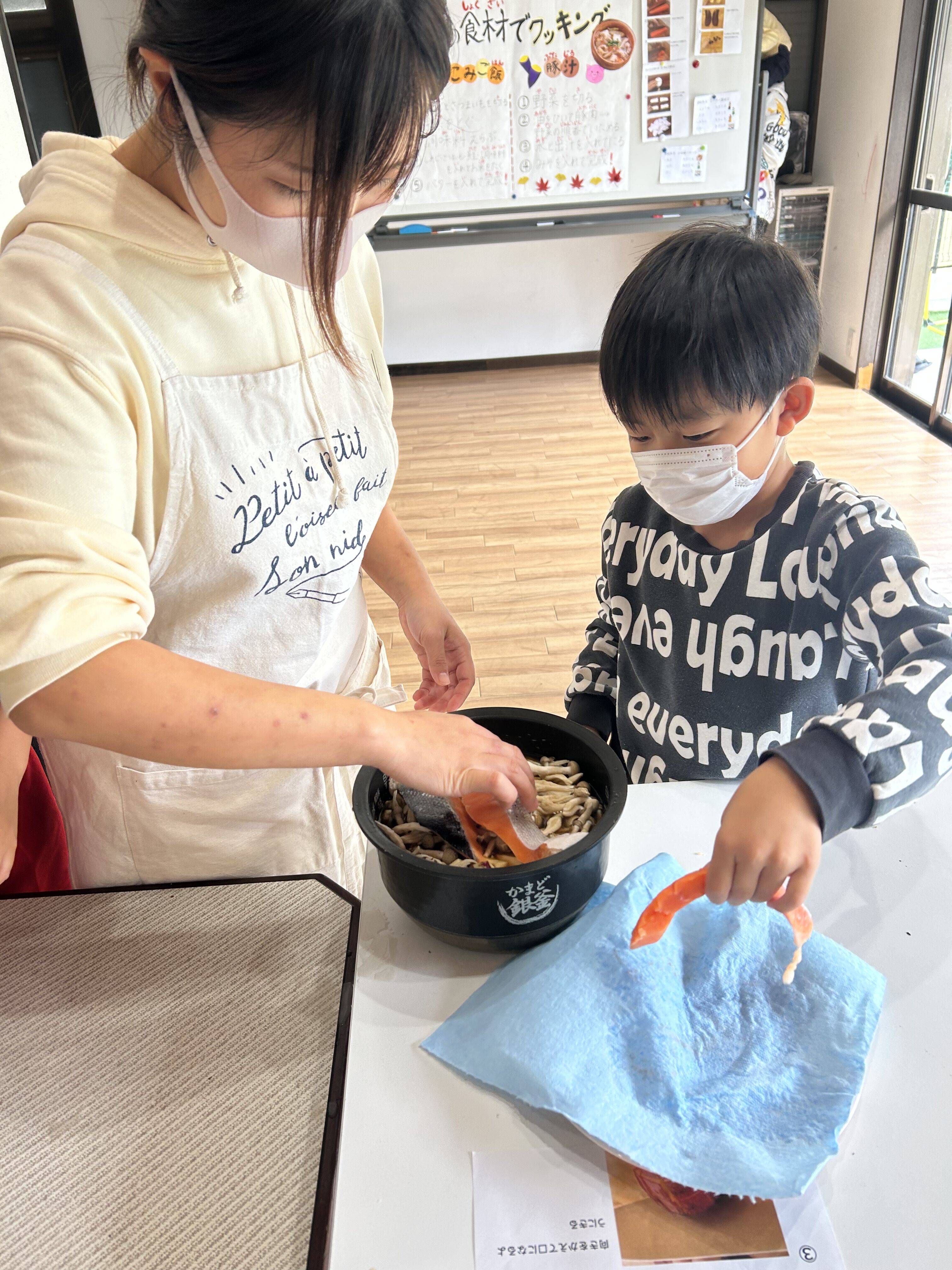 「炊き込みご飯初めて!」と挑戦する児童さんもいましたが、「美味しい〜🤤」と沢山おかわりしていました!!