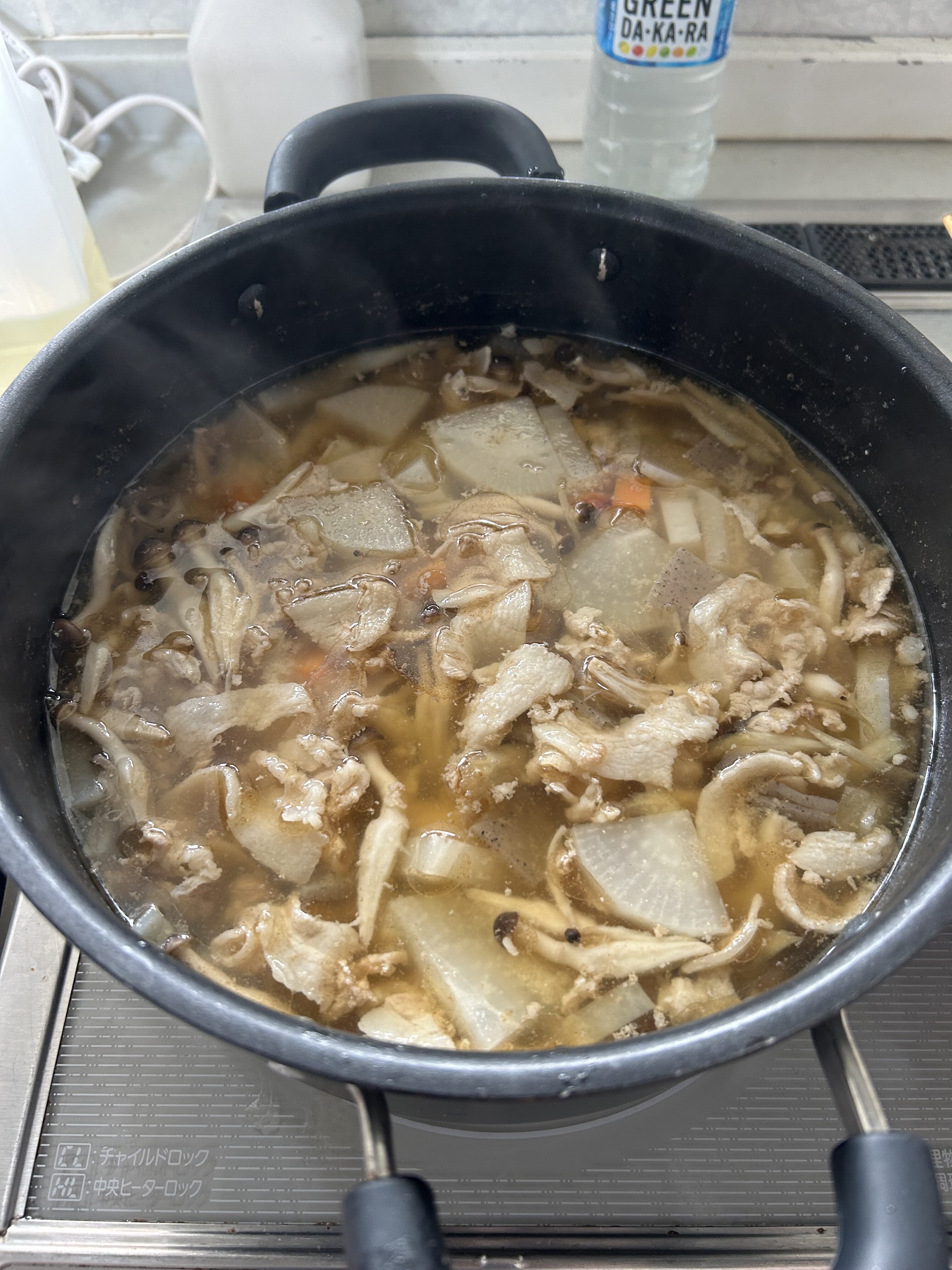 食材を炒めて、お水や調味量を入れて、ぐつぐつ煮込んだら🍲