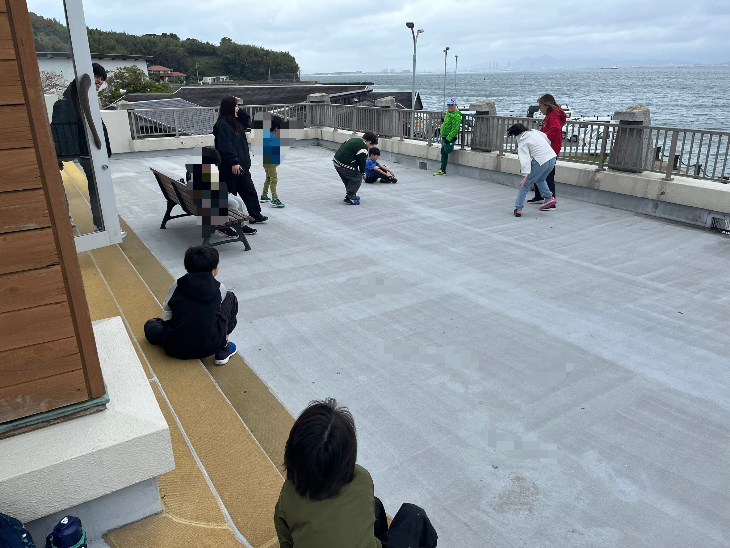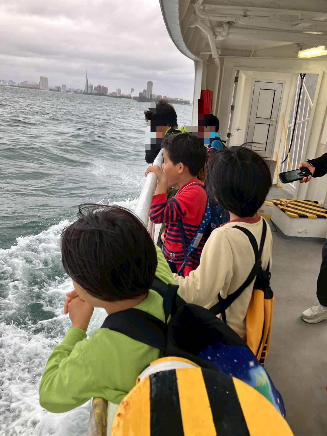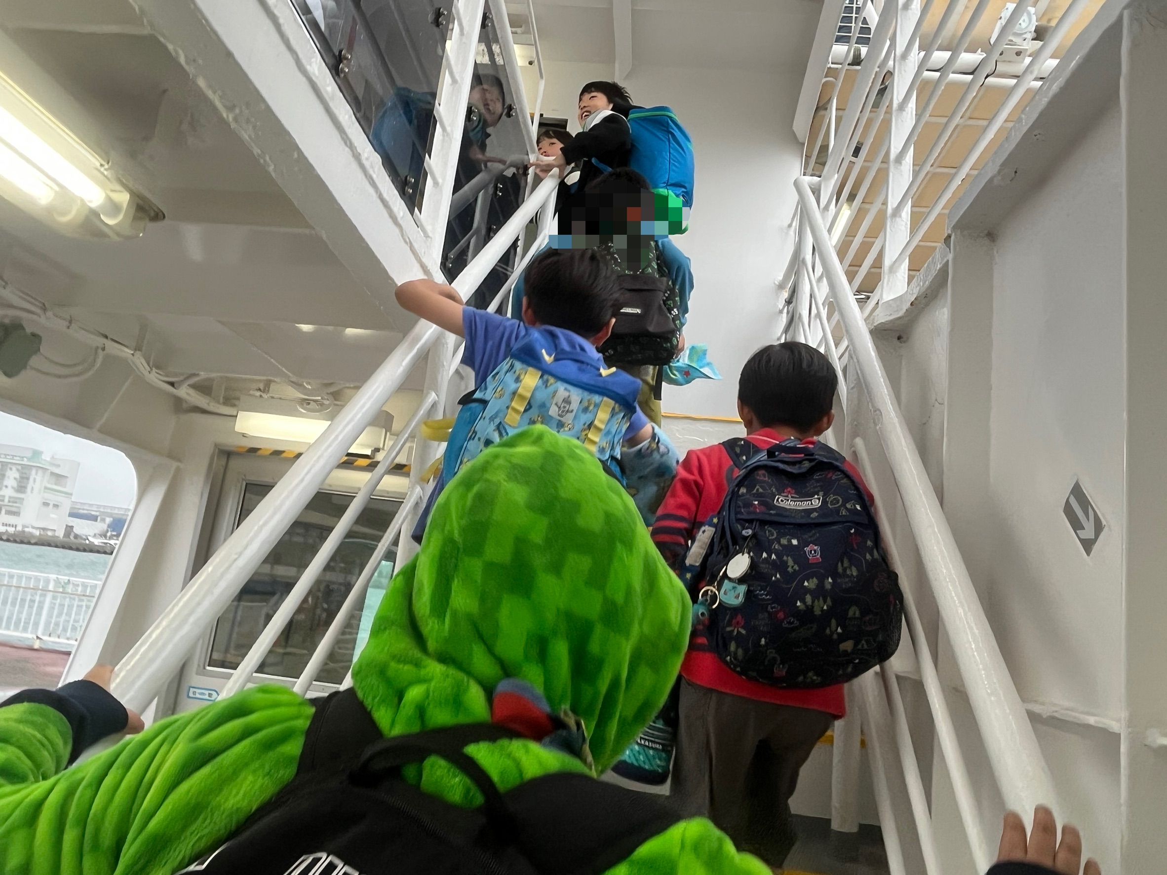 室内の椅子に座るつもりで早めに並んだのですが、子どもたちみんな外を見たいとの事で、海の上でのビューやお魚探しを楽しんでおりました🐟🪼