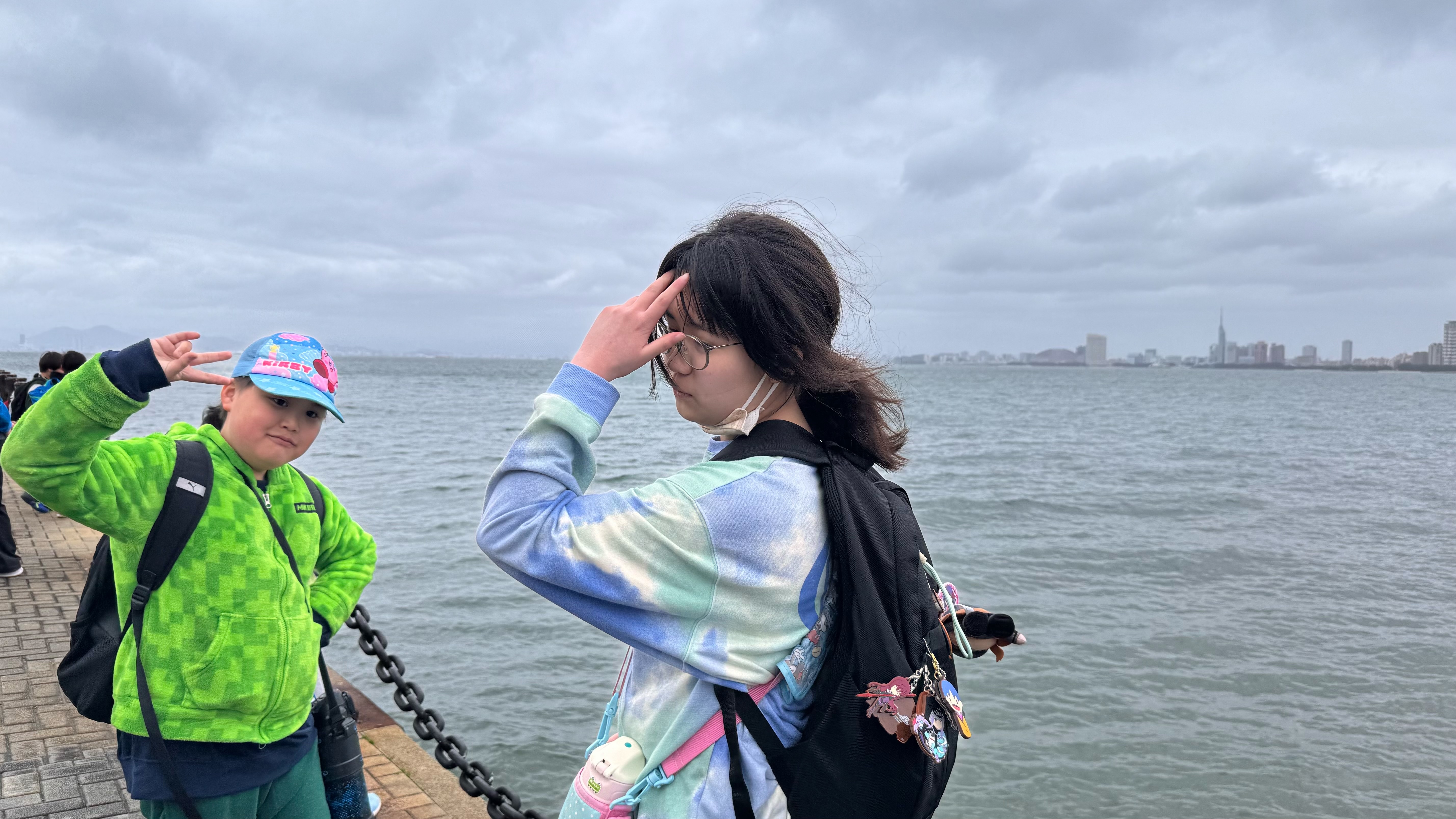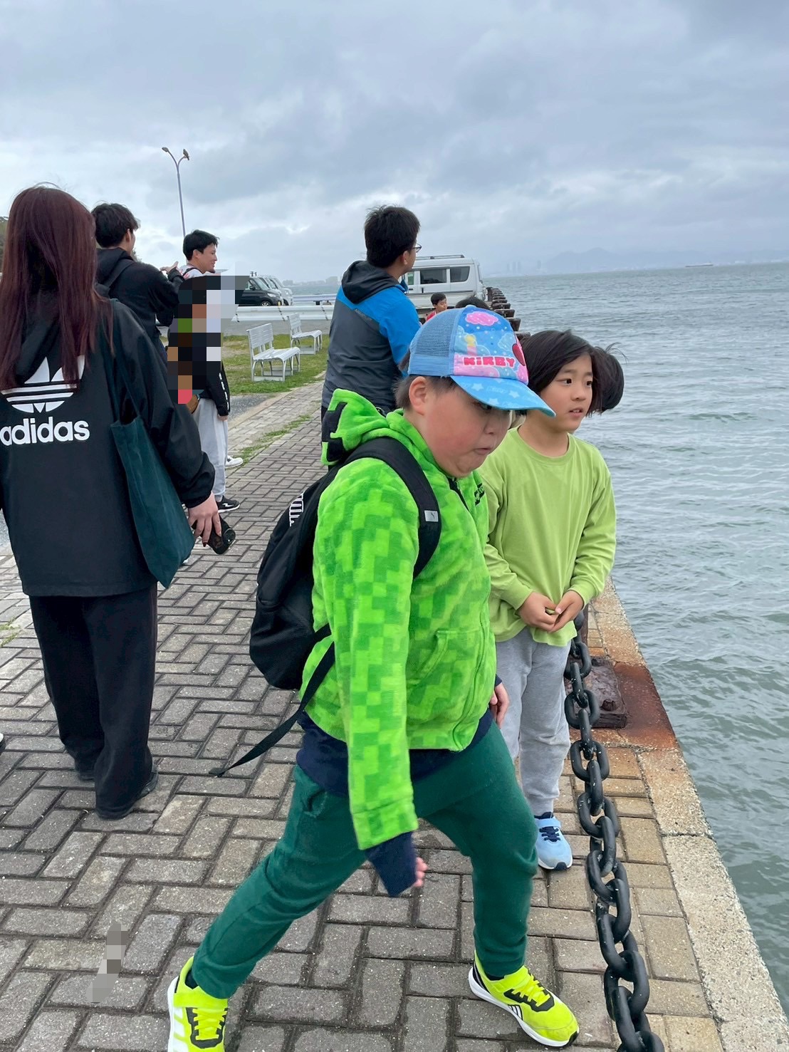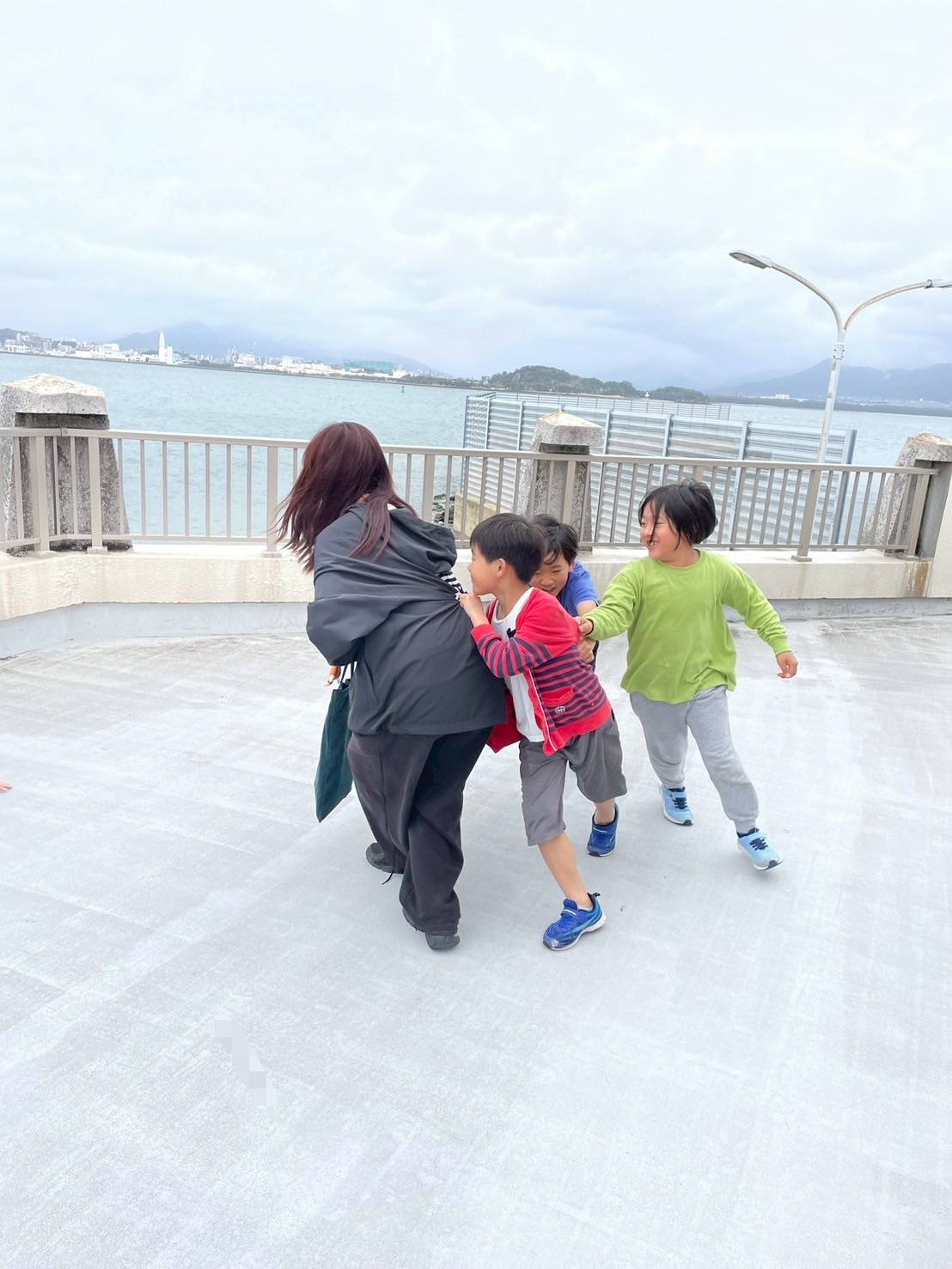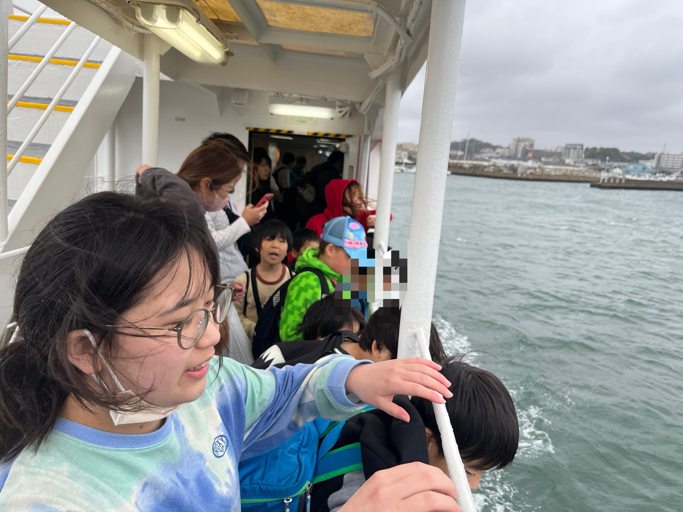 室内の椅子に座るつもりで早めに並んだのですが、子どもたちみんな外を見たいとの事で、海の上でのビューやお魚探しを楽しんでおりました🐟🪼