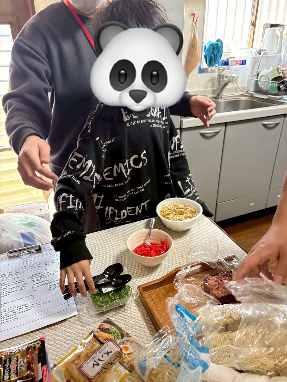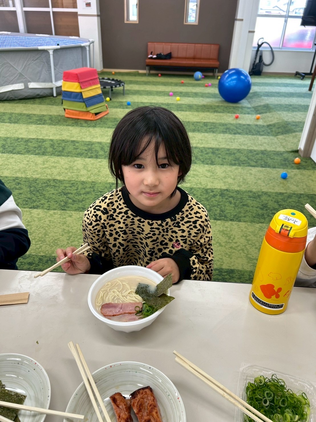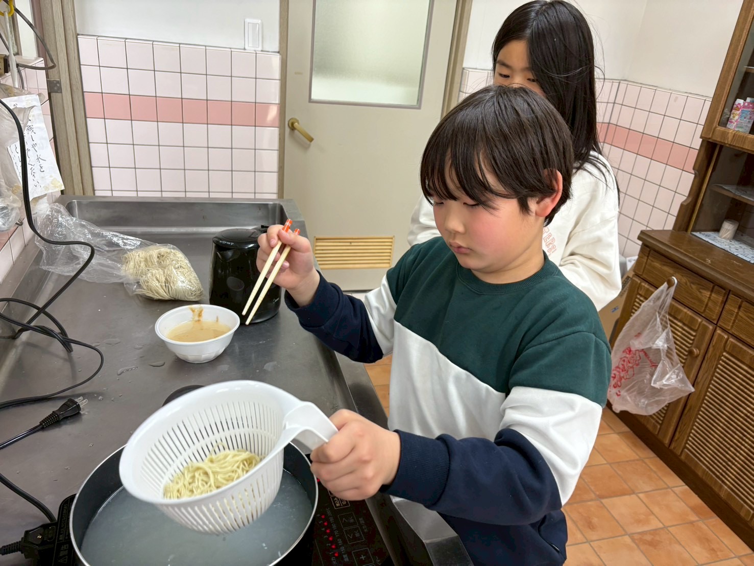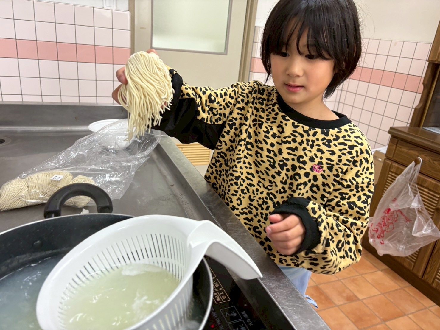 子どもたちもお湯切りやトッピングして楽しんでおります☺️