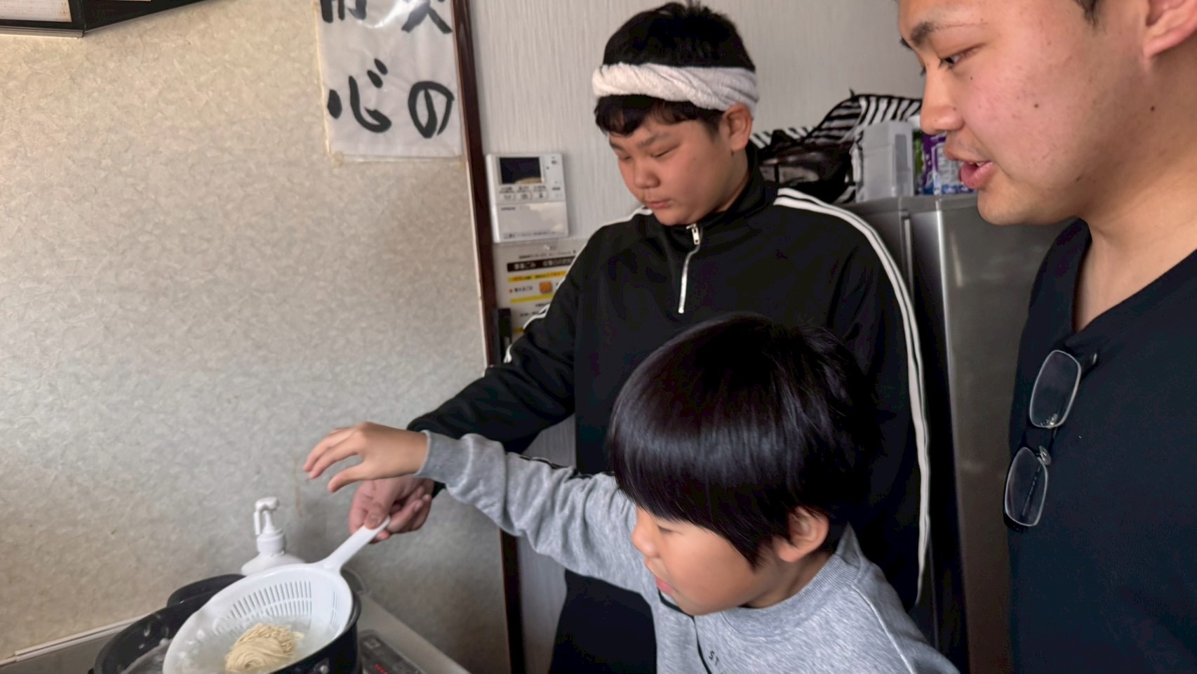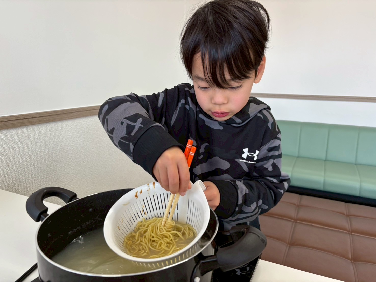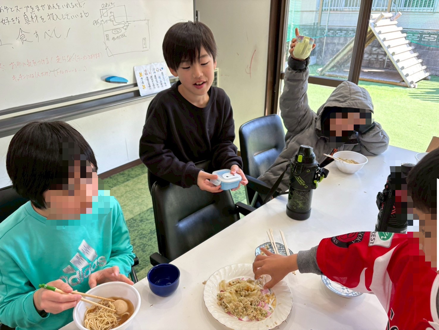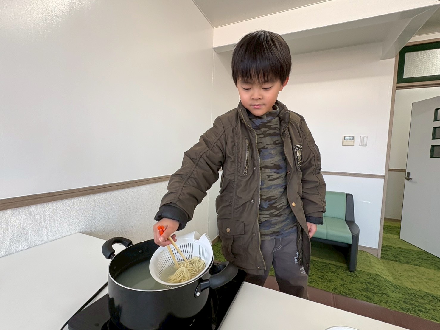 子どもたちもお湯切りやトッピングして楽しんでおります☺️