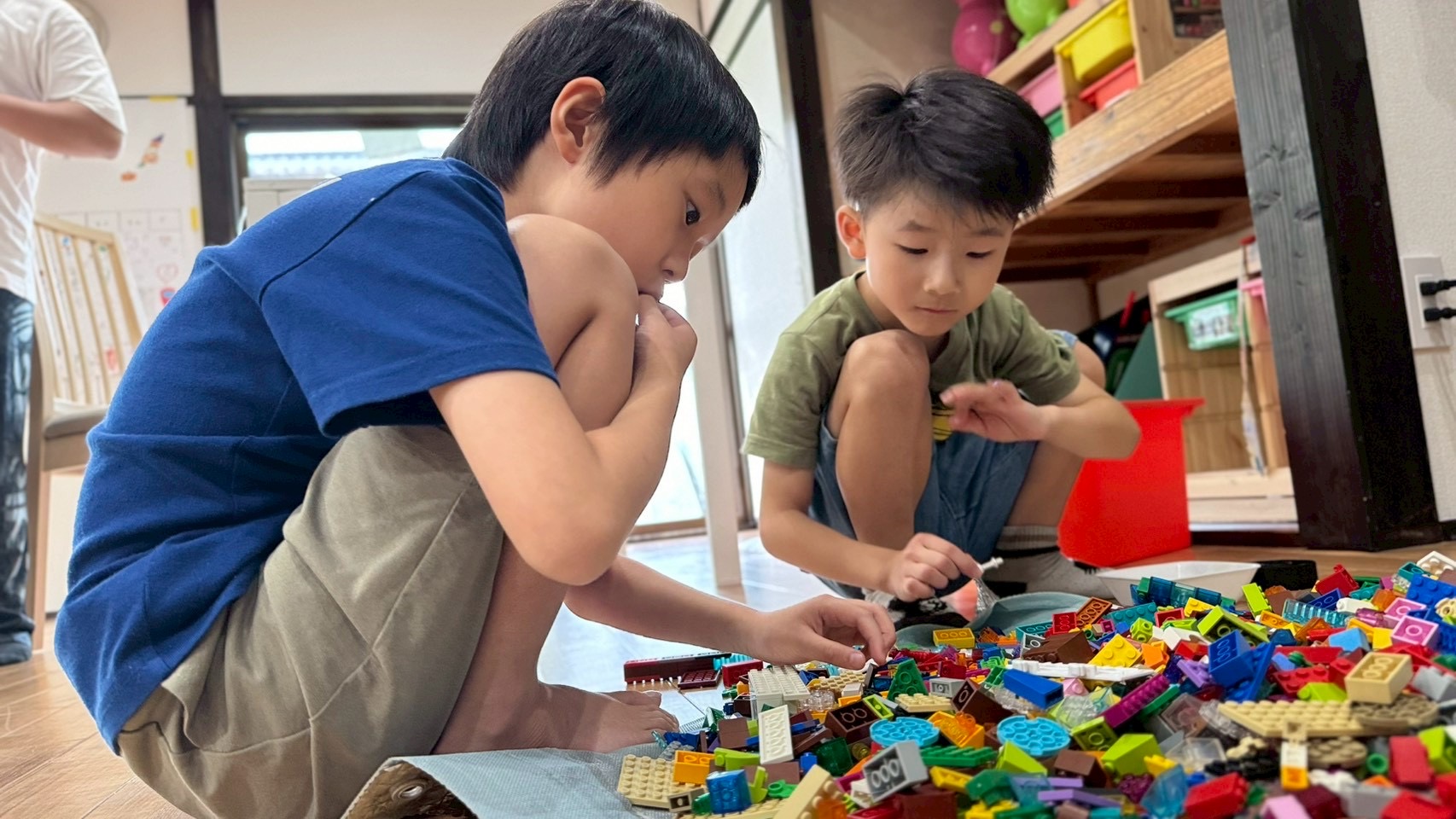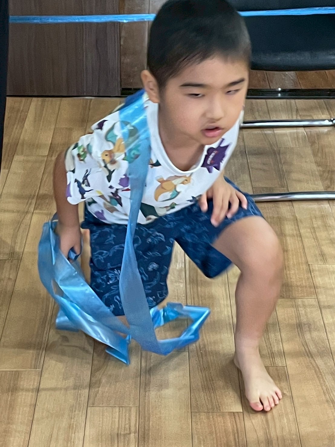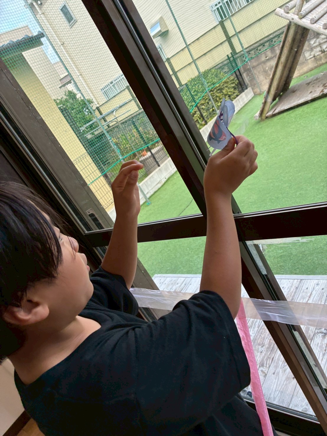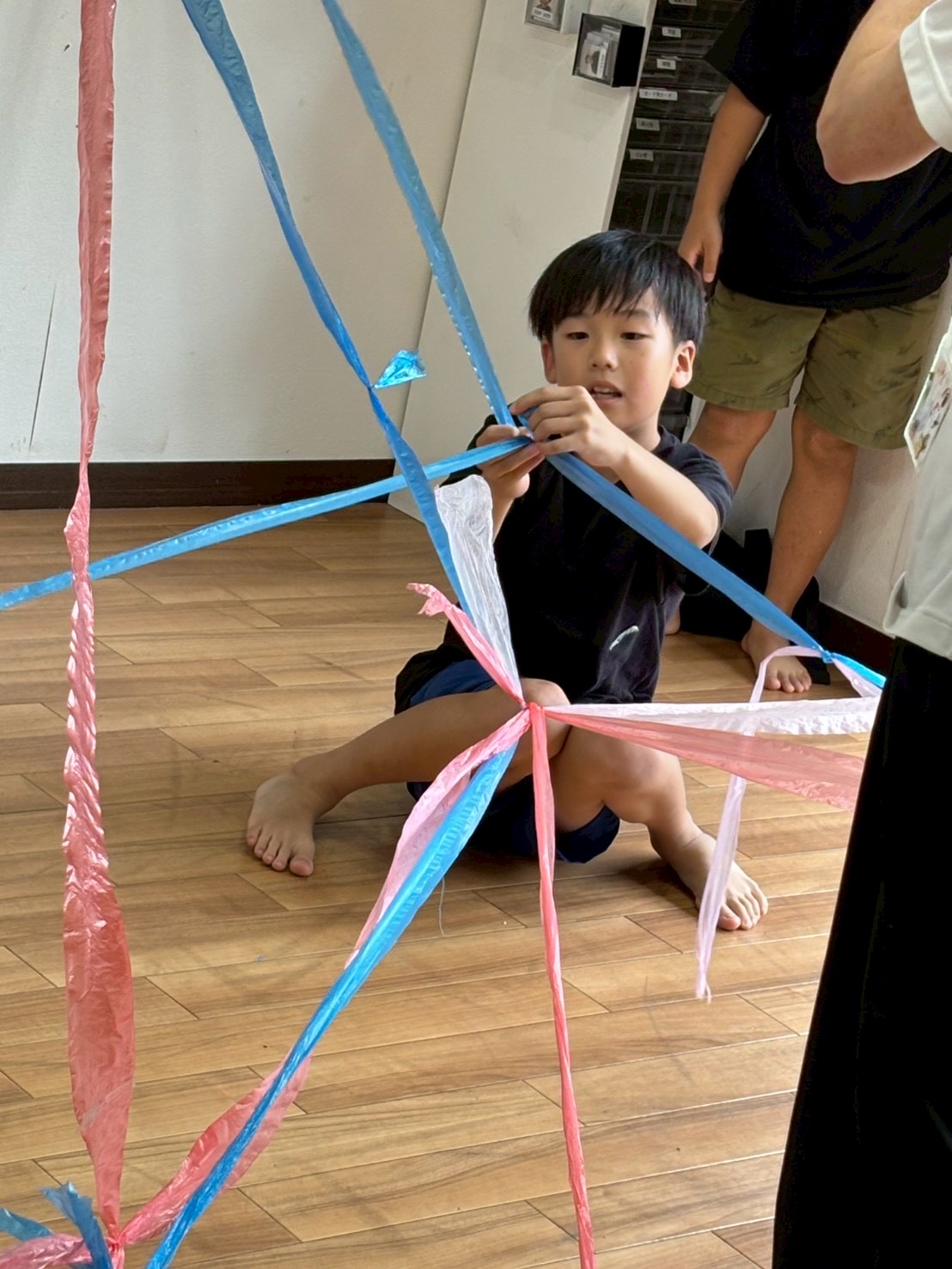 好きな色のテープを子どもたちに渡して部屋中を飾りつけて貰いました❤️🤍🩵
