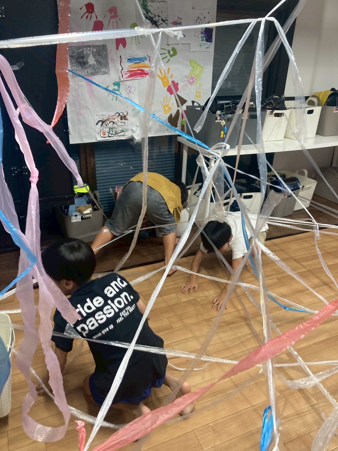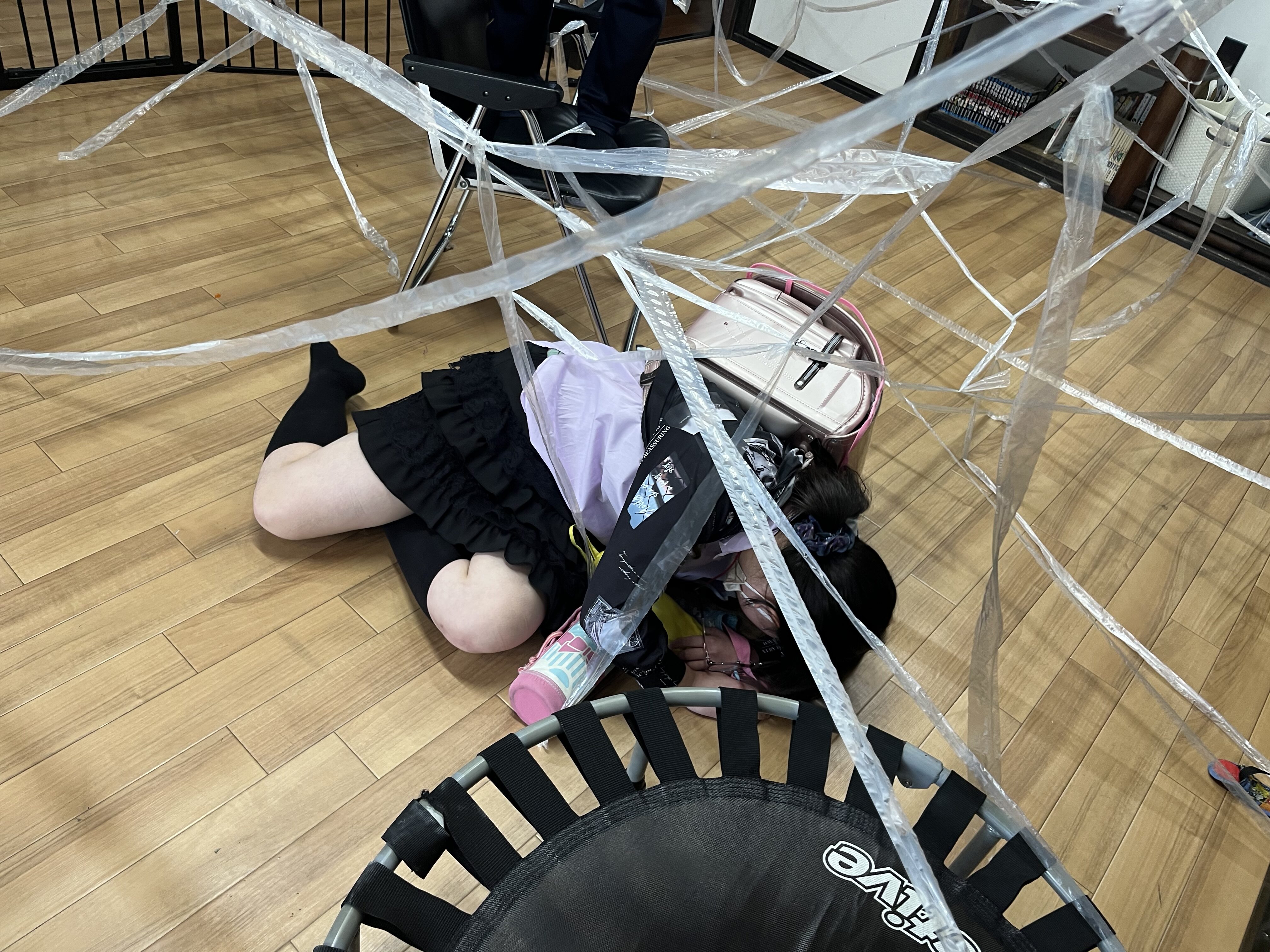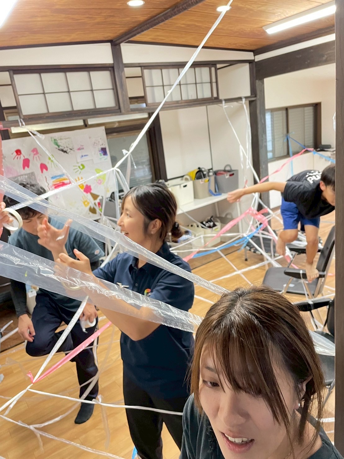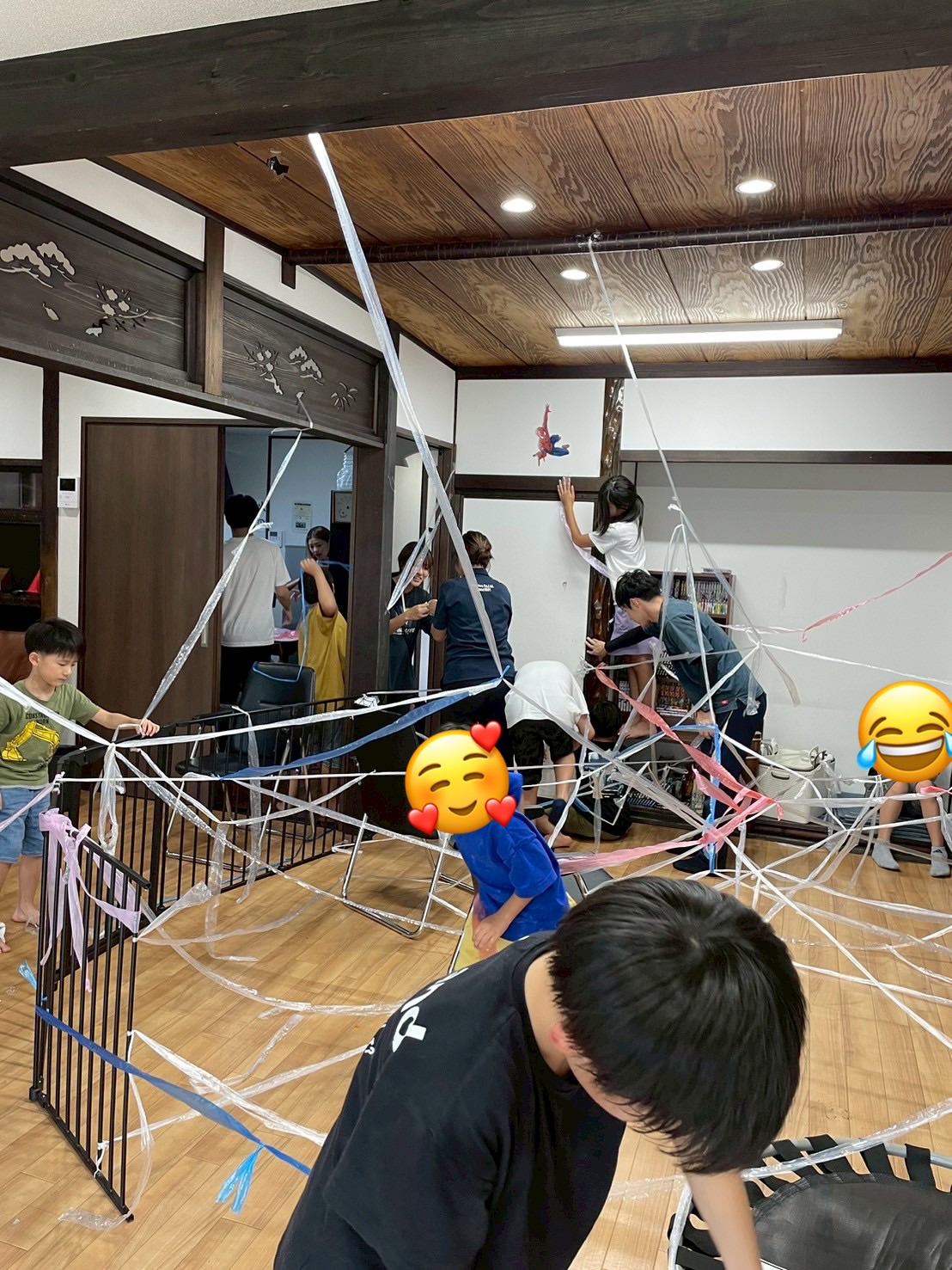 片付け大変そうな蜘蛛の巣がみんなの手で作り上げられました!!!