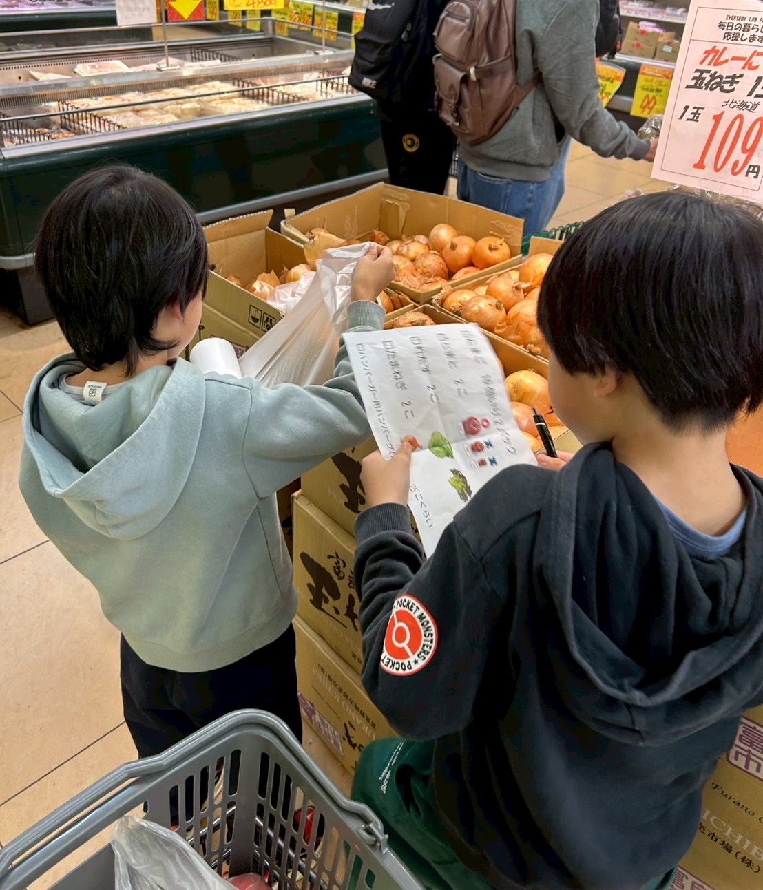 「どこのスーパーが安いかな?」「必要な材料は何だろう?」と意見を出し合い、値段や内容を比べながら計画を立てていました。