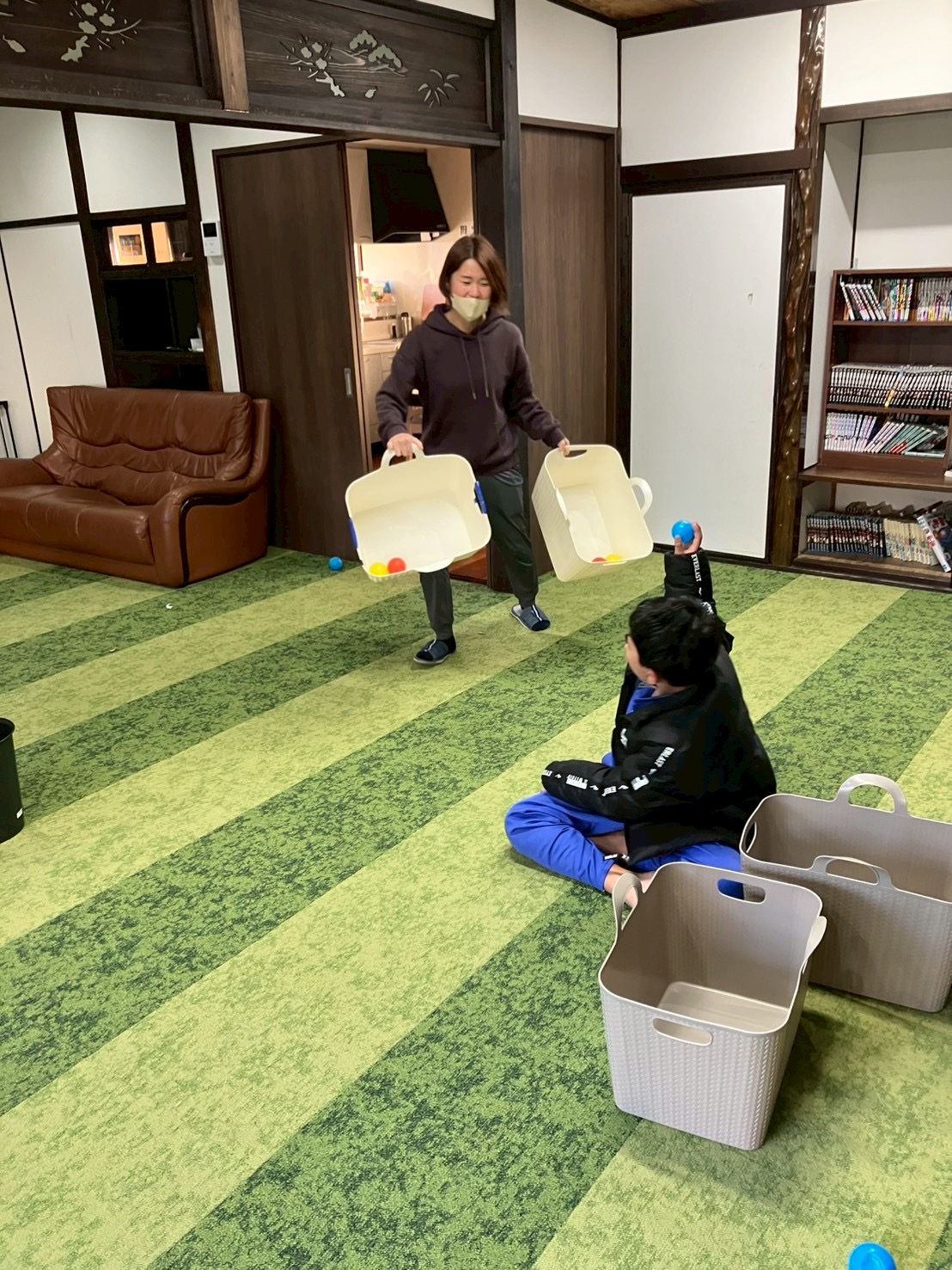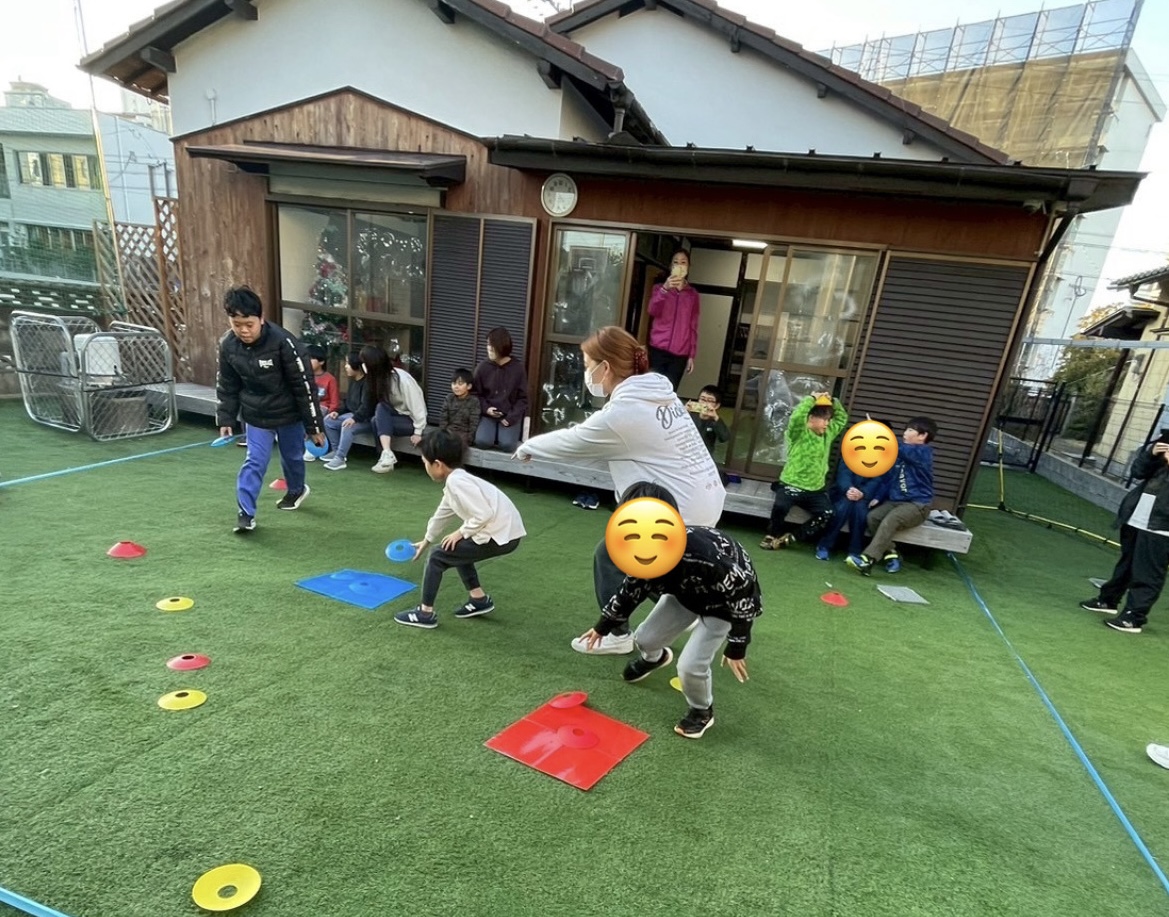 今回の運動では「見る・拾う・避ける・運ぶ」を同時に行う事で、集中力・判断力・全身の協調性を養う事ができます!また、色の仕分けも取り入れる事で、視覚認知や色の理解にも繋がります!