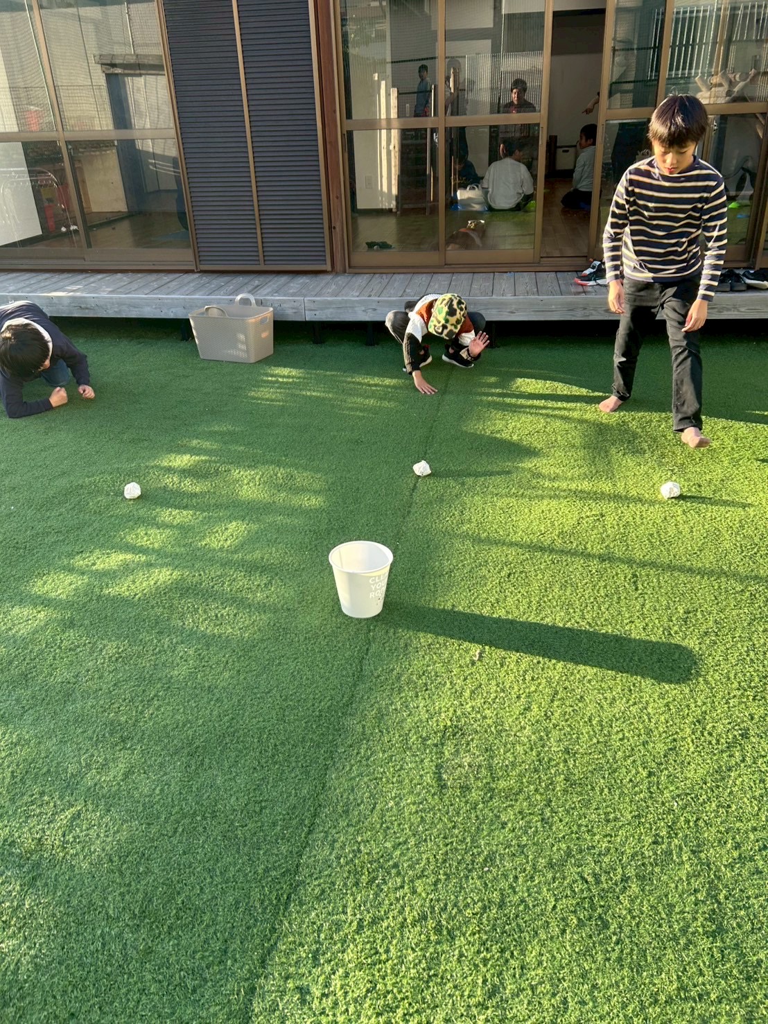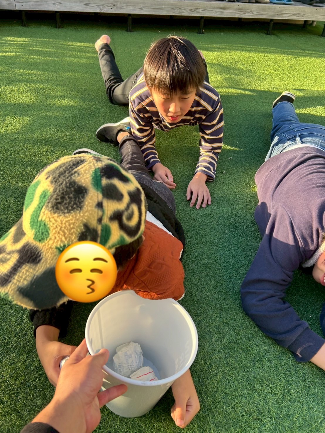 忍者のように❓匍匐前進でゴミをゴミ箱に入れている児童もいました‼️