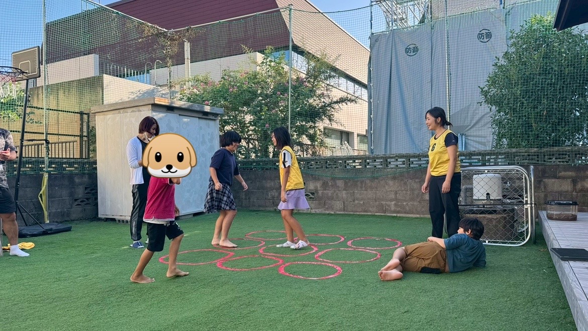 💡鬼と同じ輪っかに入ったらアウト!制限時間1分の間に逃げる役全員を鬼が捕まえるか、逃げる役が逃げ切るか