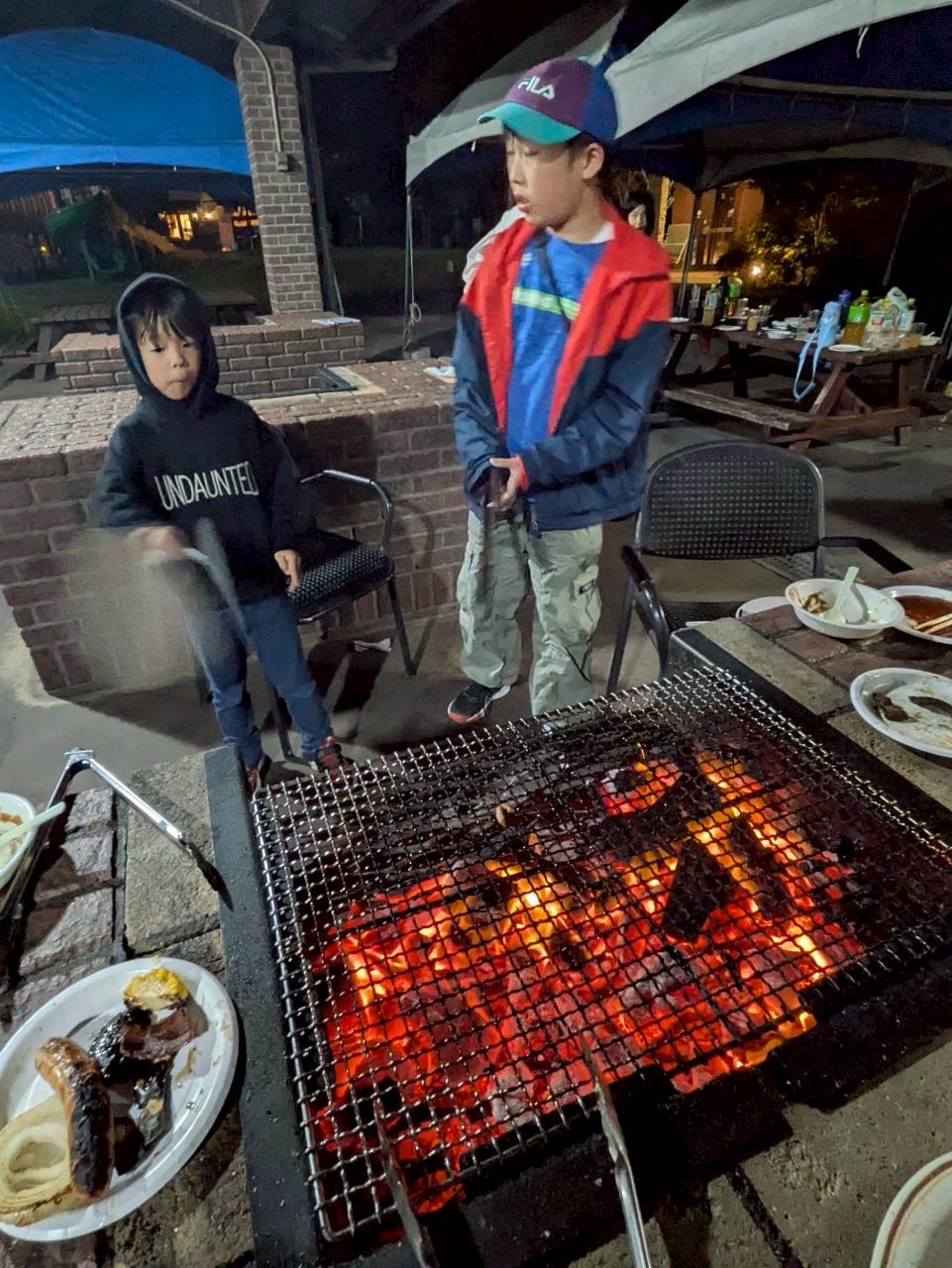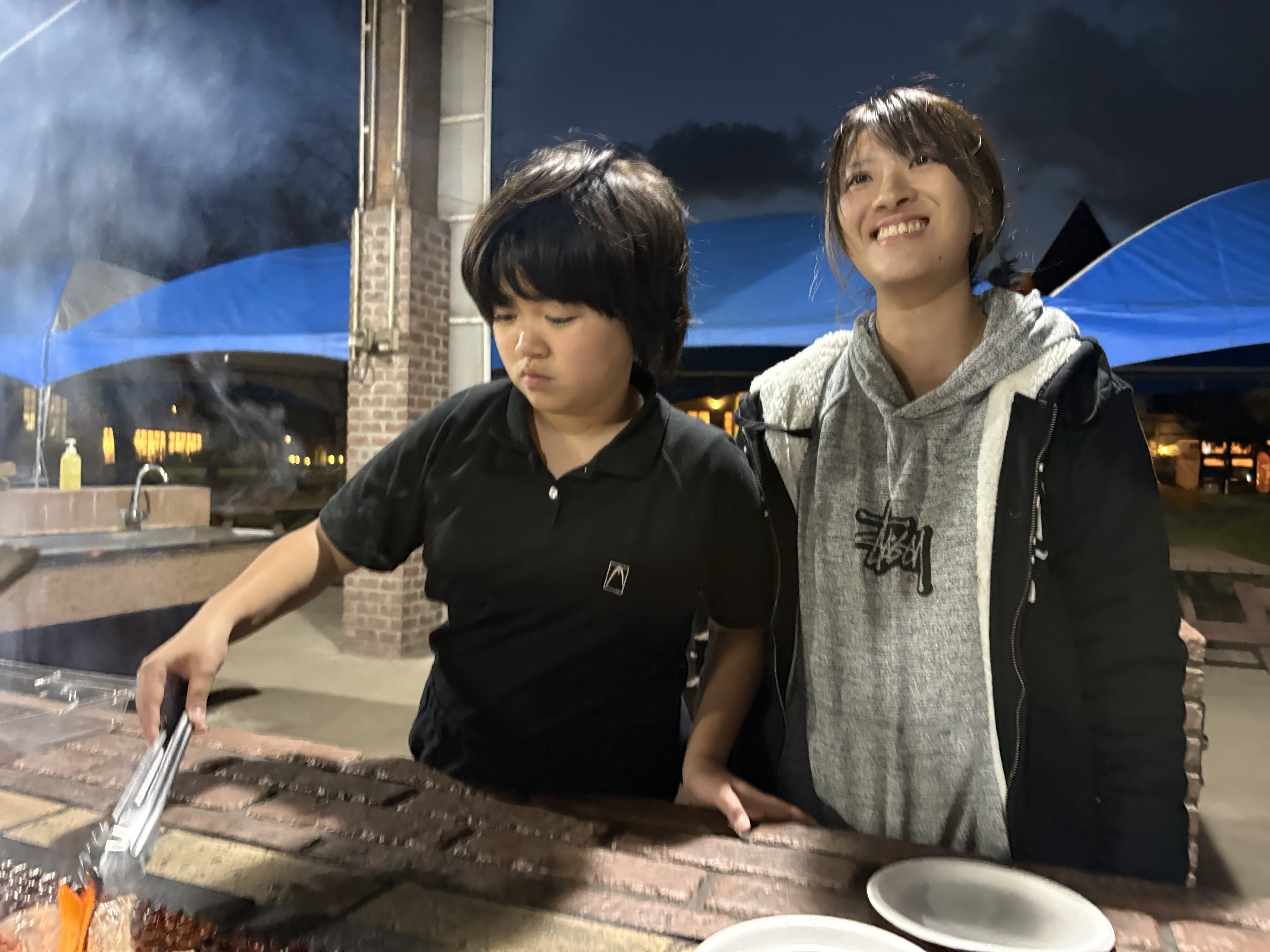 お肉焼くの手伝ってくれてありがとう😋🍖