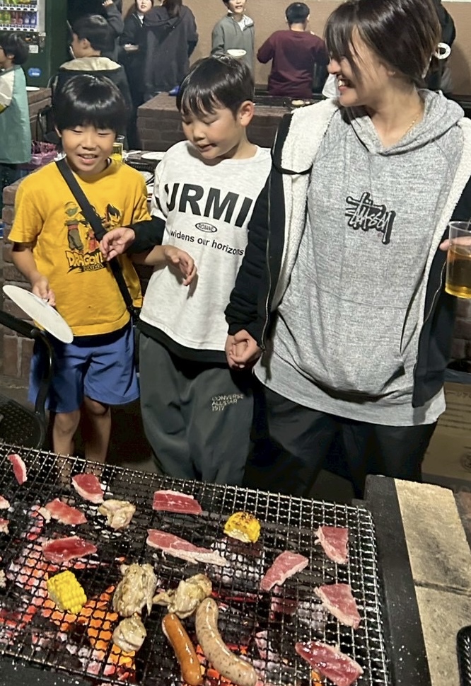 「お肉焼けたよー!みんなに持ってってね☺️」