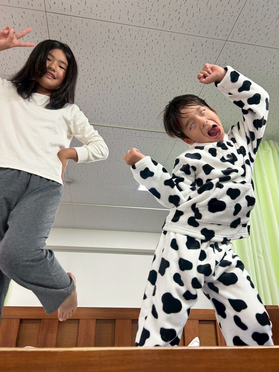 みんなで手を繋いだままフラフープくぐりに挑戦🤗💮