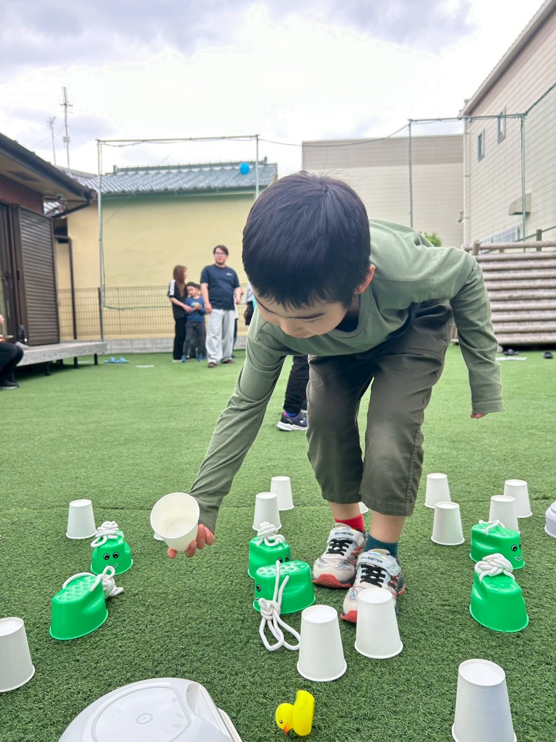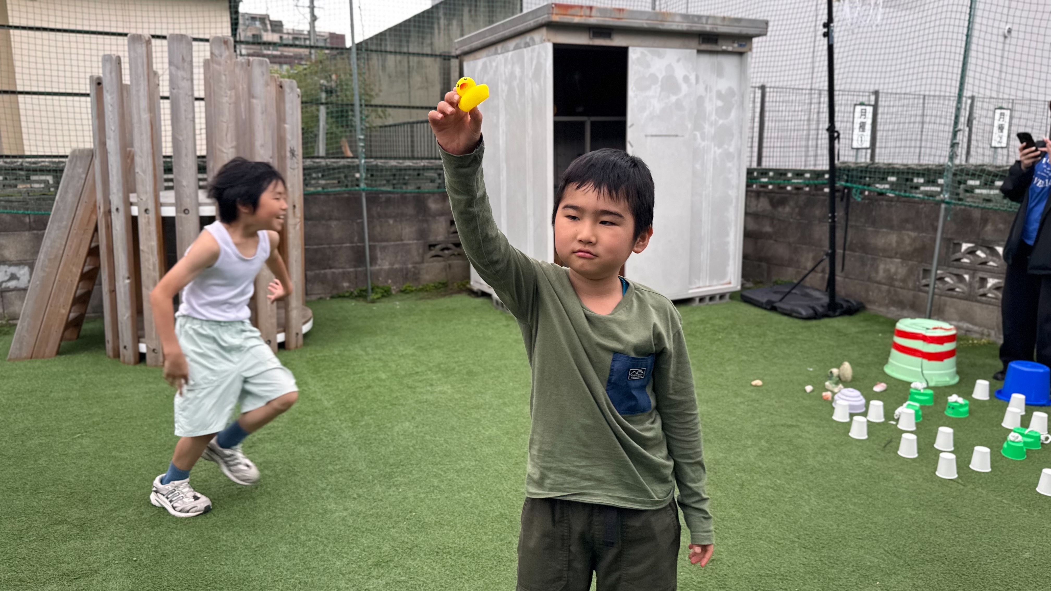 まずはアヒルちゃんをみんなに見えないように隠します👍お手伝いありがとう!😊