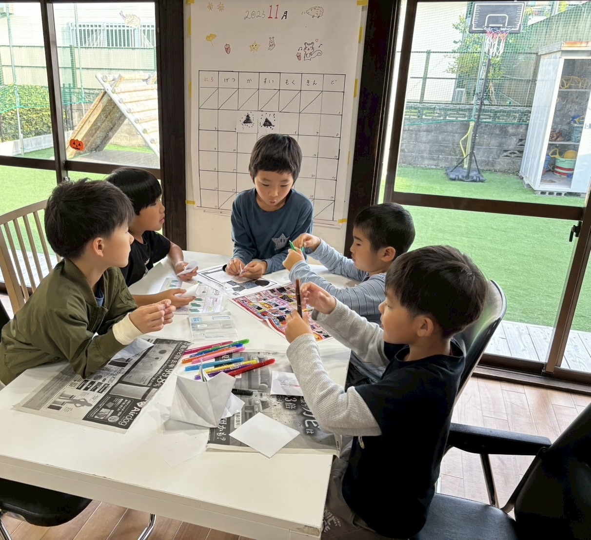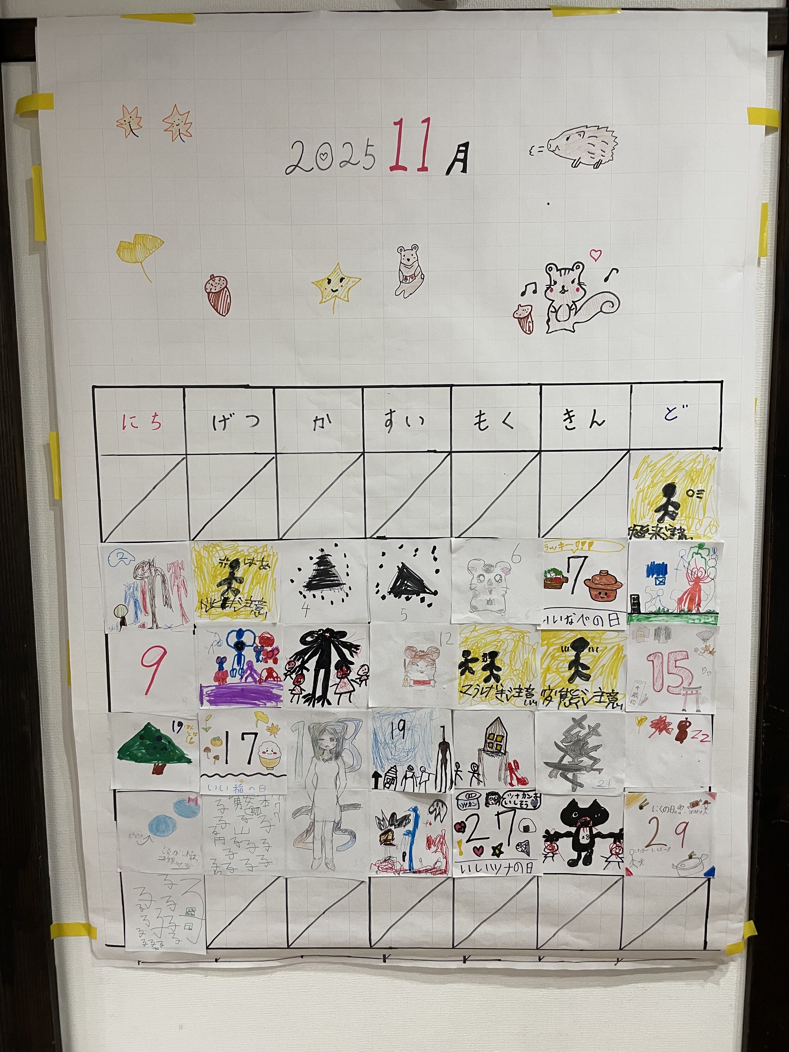 カレンダーを繋げたり工夫しながら作成してくれたお友達や、活動が終わってからも集中してデザインを考えてくれるお友達みんなのおかげでカラフルなカレンダーになりました😍✨