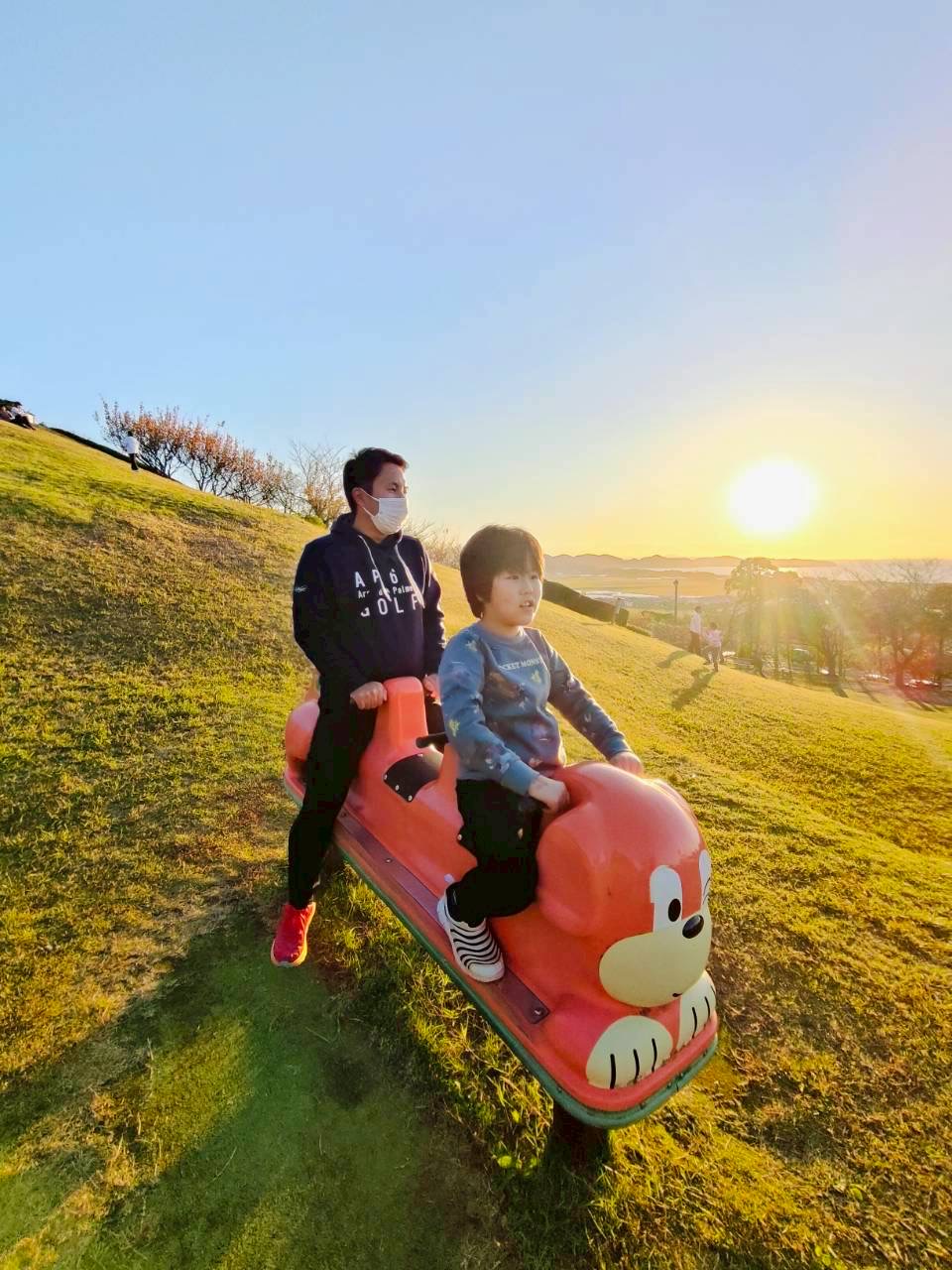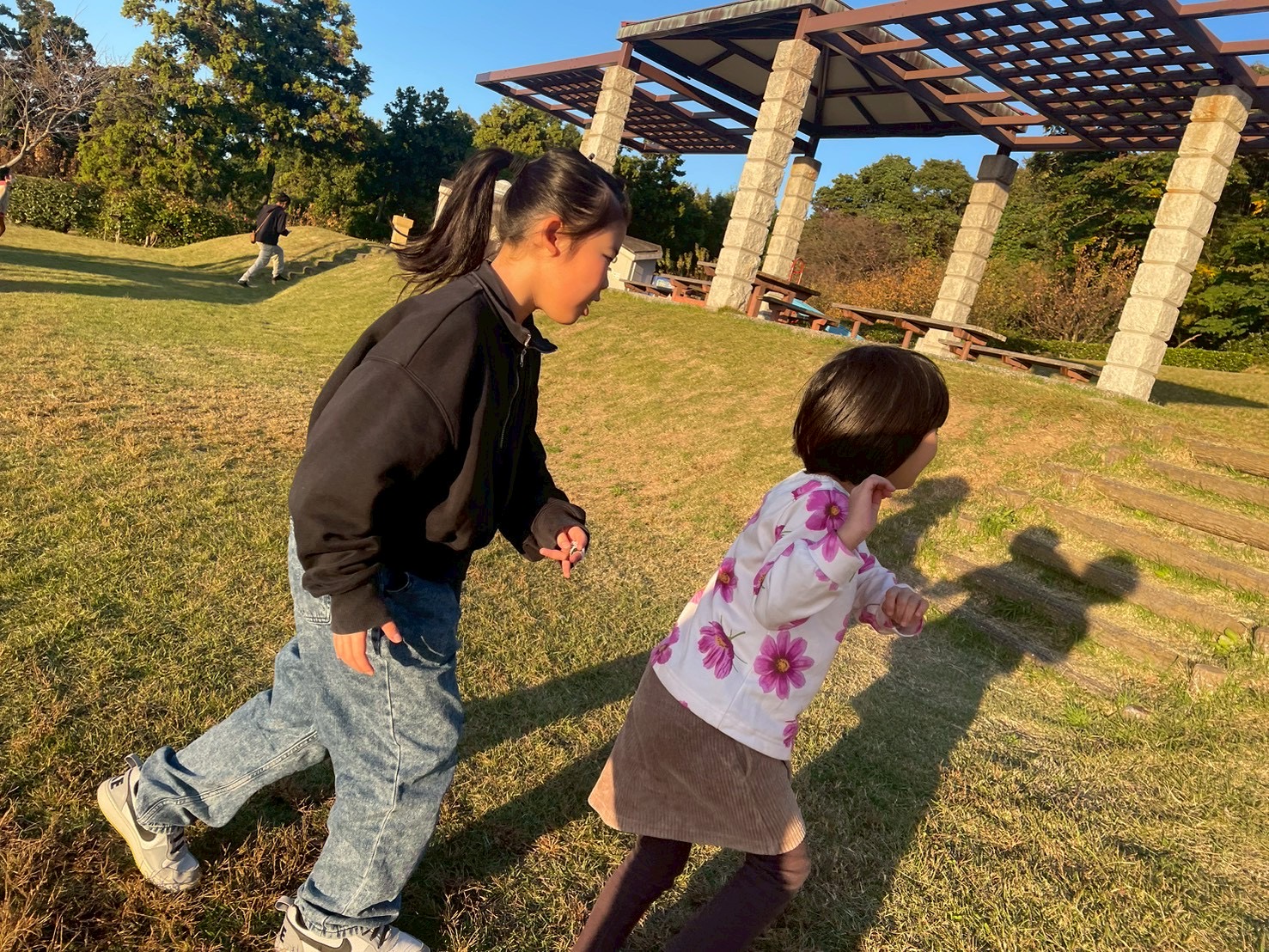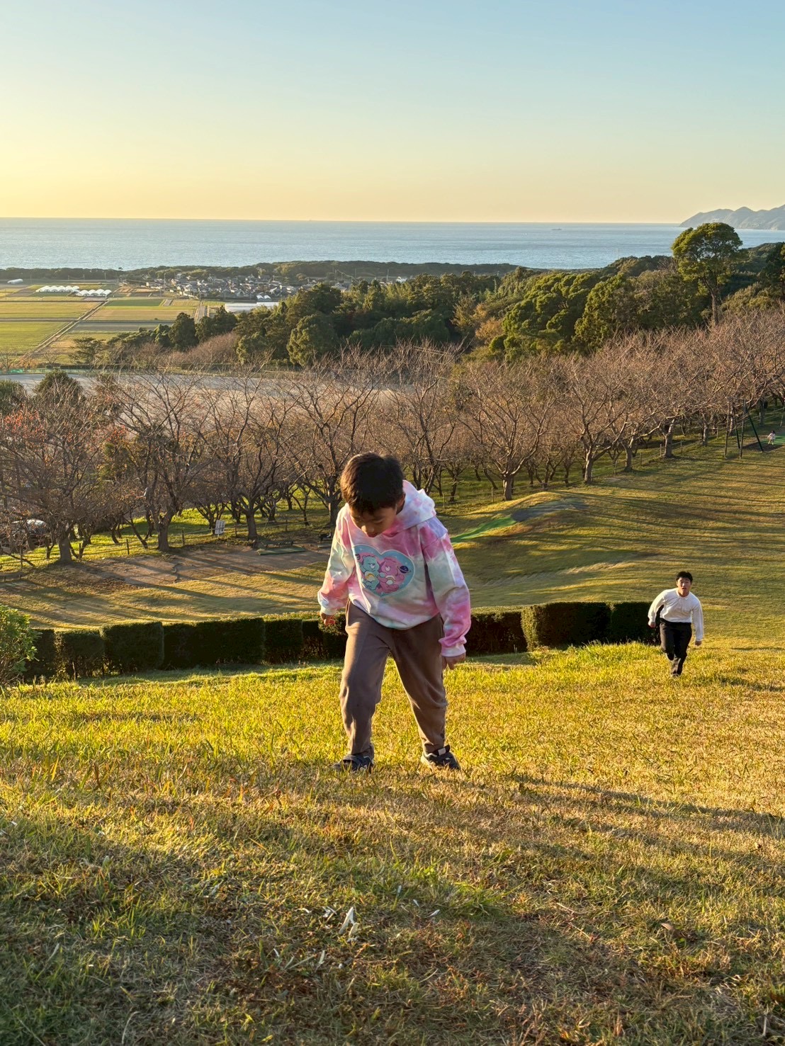 海が見えるとても綺麗な公園で元気に遊びました🌇