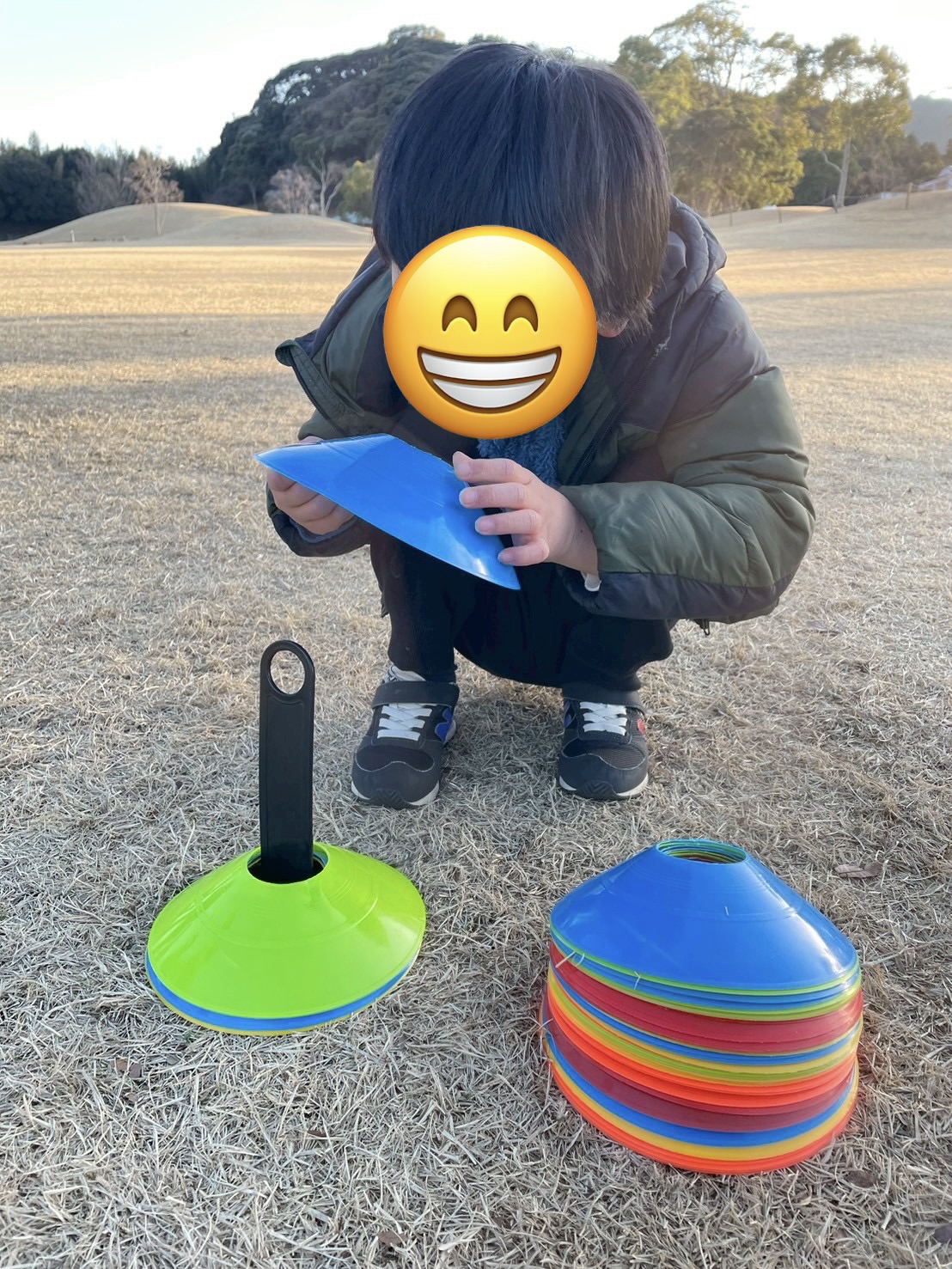 コーンをジグザグに置いてジグザグに走ることもやってみました😁😁