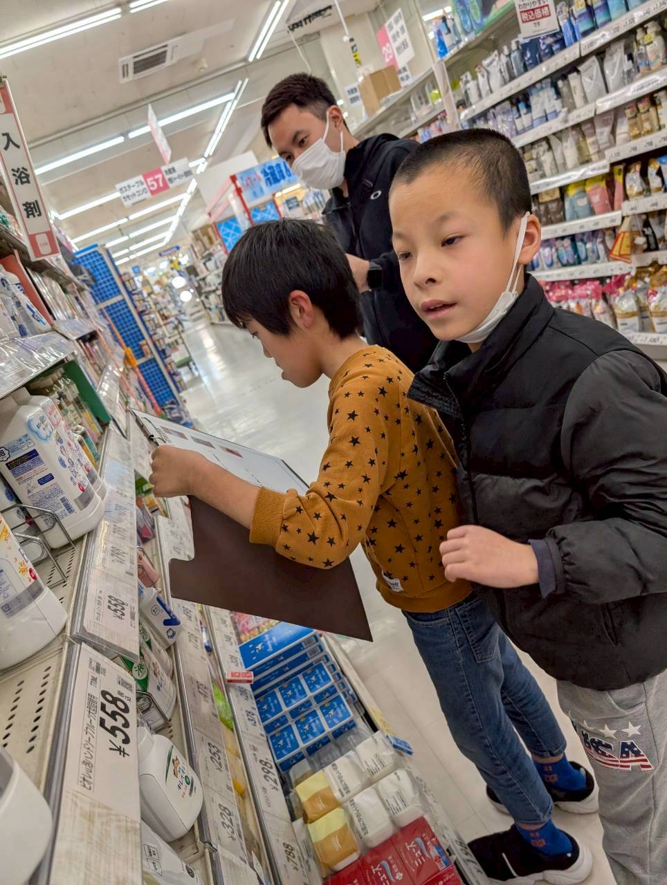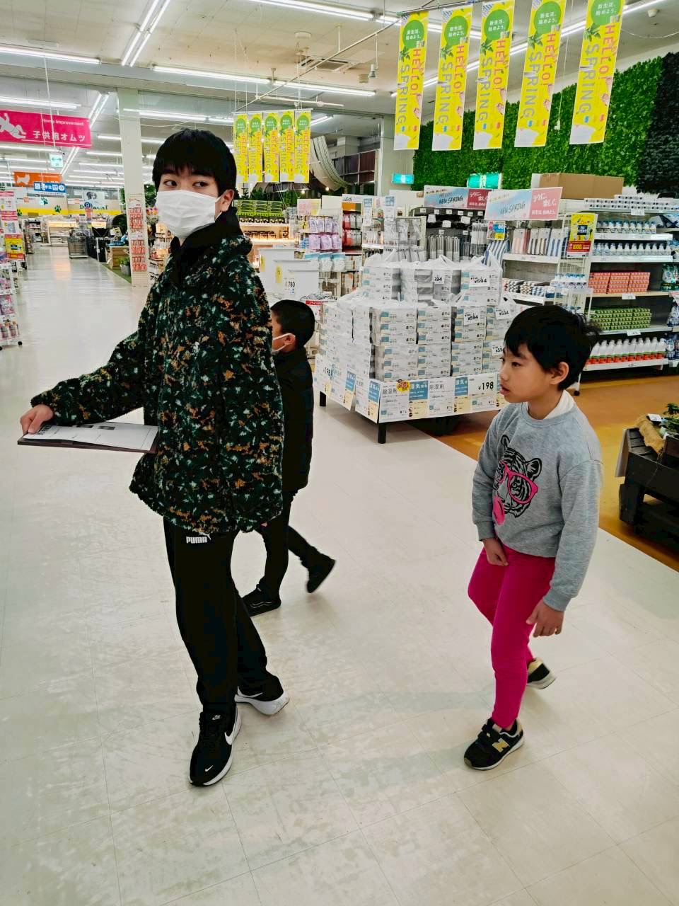 事前に決められた商品をもとに、子供達は3つのグループに分かれて店内を探しました👀