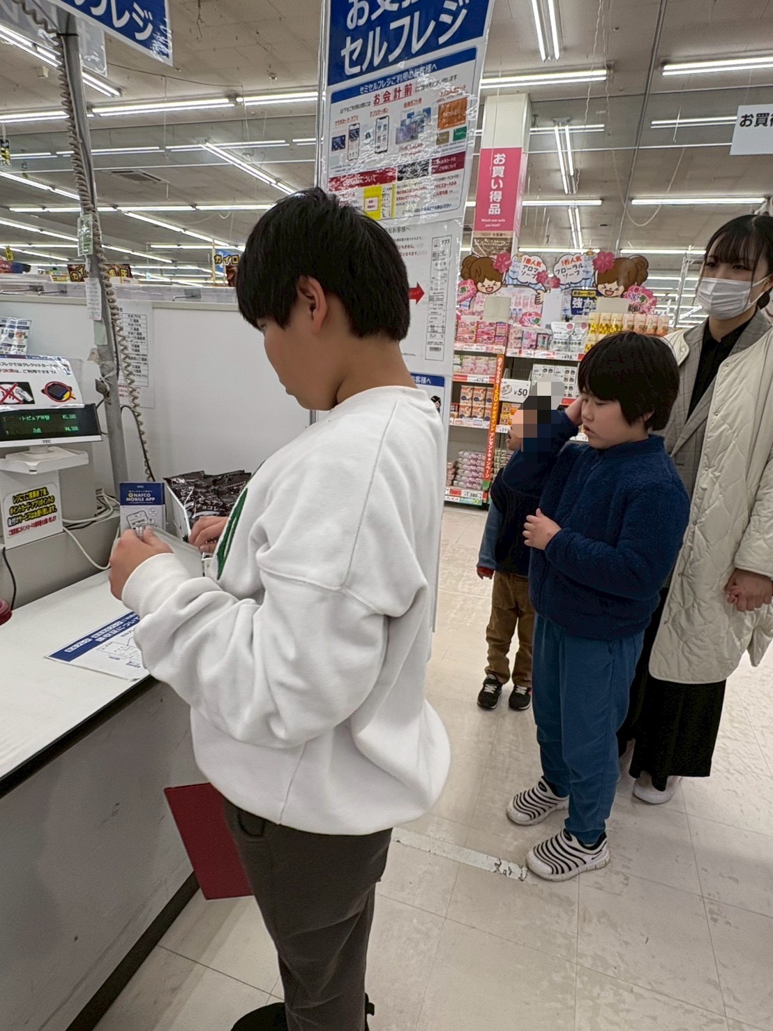 見つけた商品は自分たちでレジまで持って行き、スタッフに見守られながらお会計にも挑戦しました😊