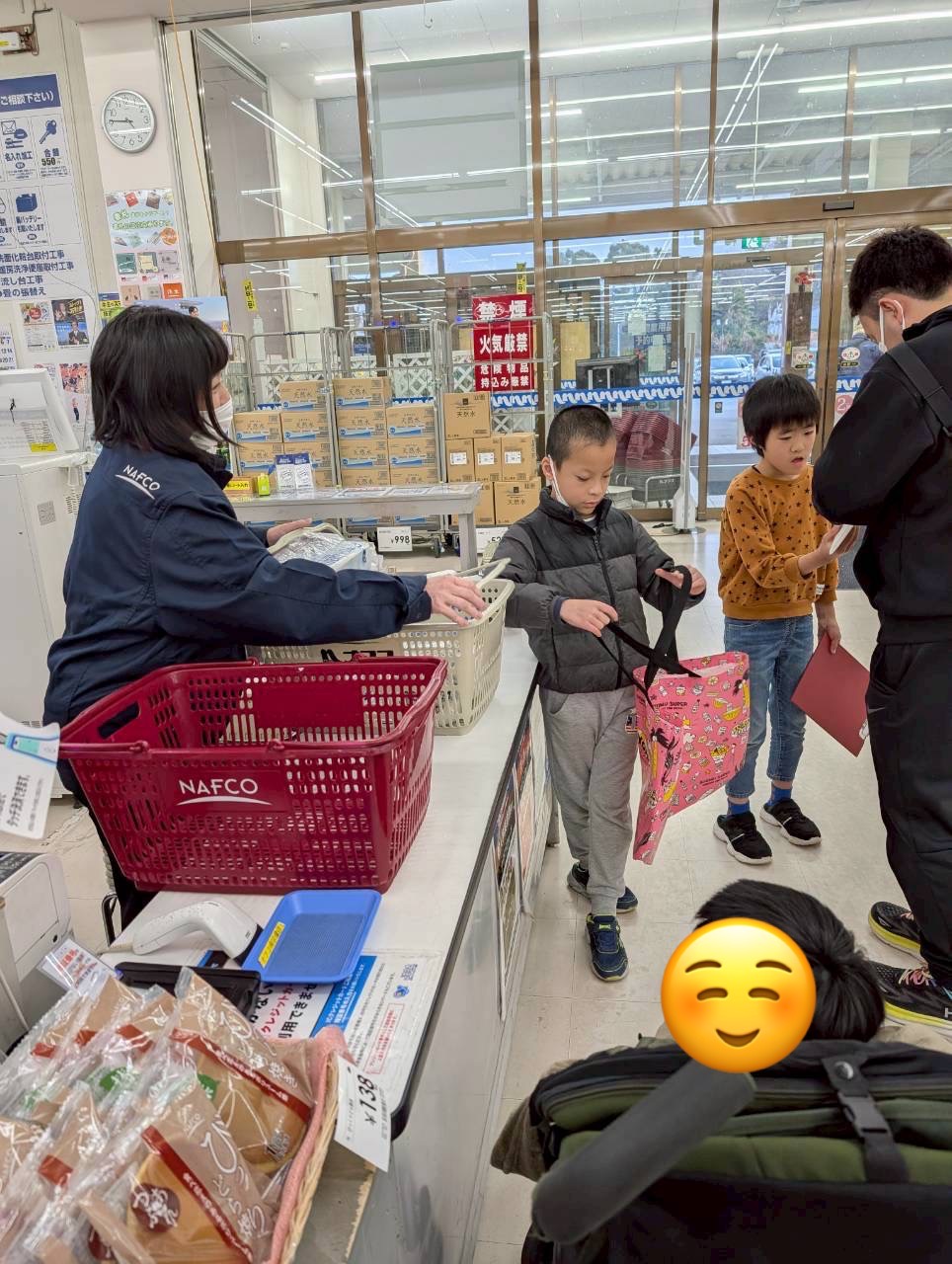 少し緊張した表情を見せながらも、金額を確認し、お金を渡して無事に購入することができました👏✨