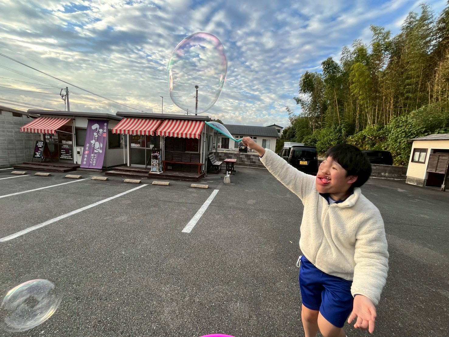 シャボン玉を必死に追いかけて汗をびっしょりかいていました😹
